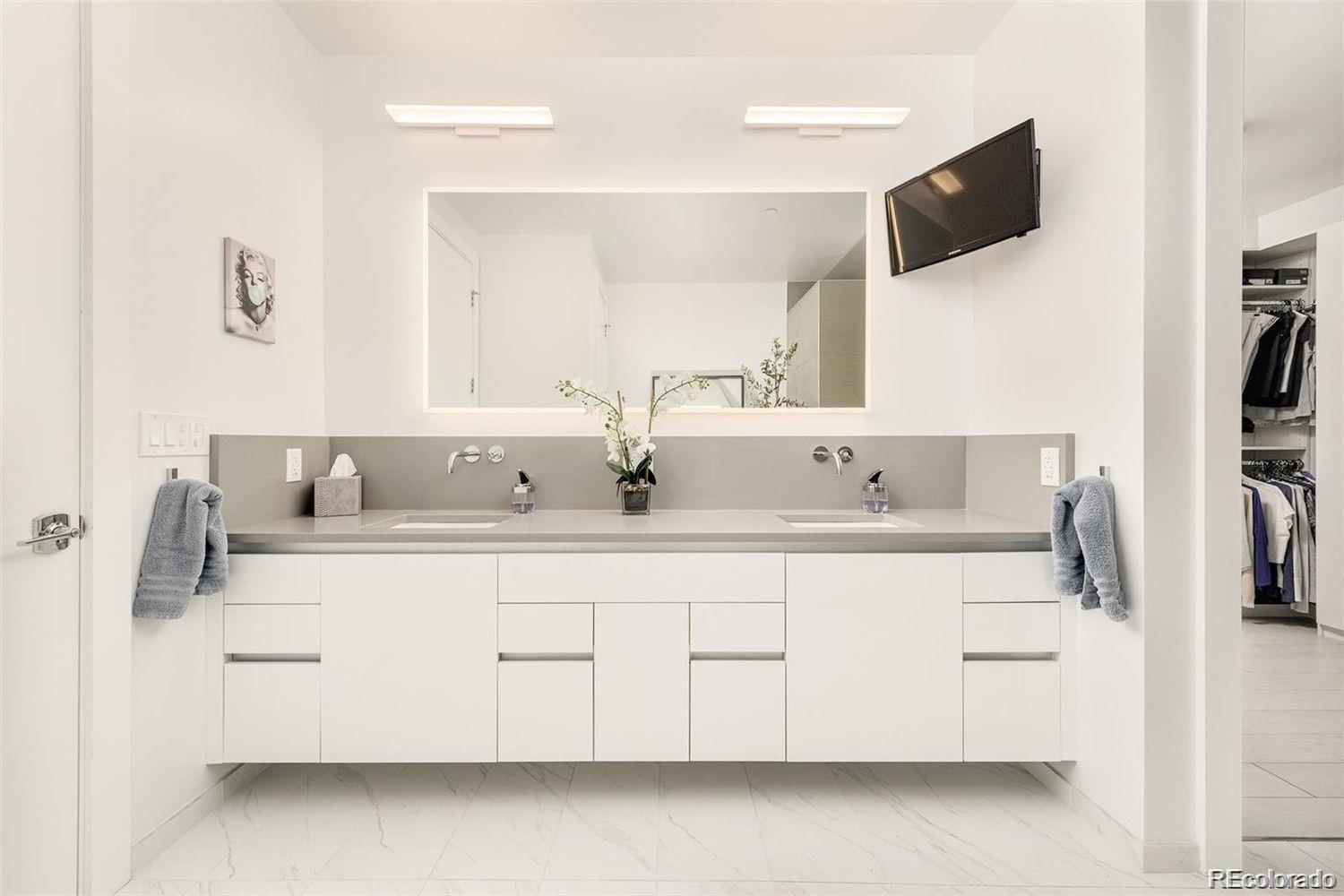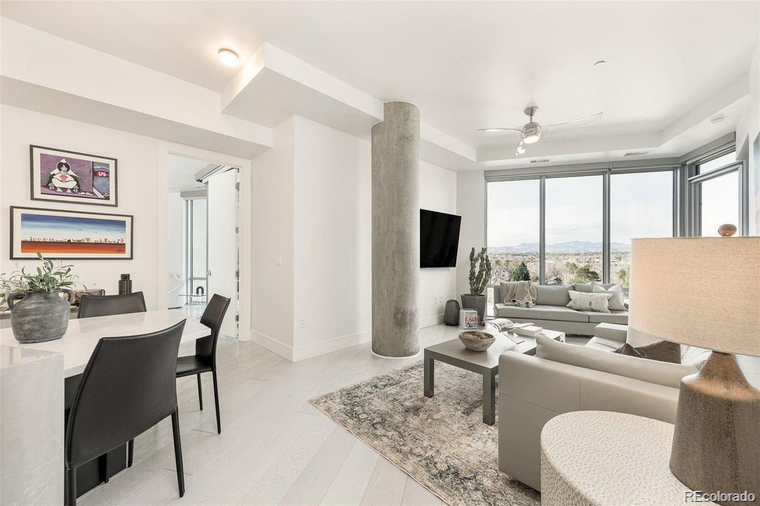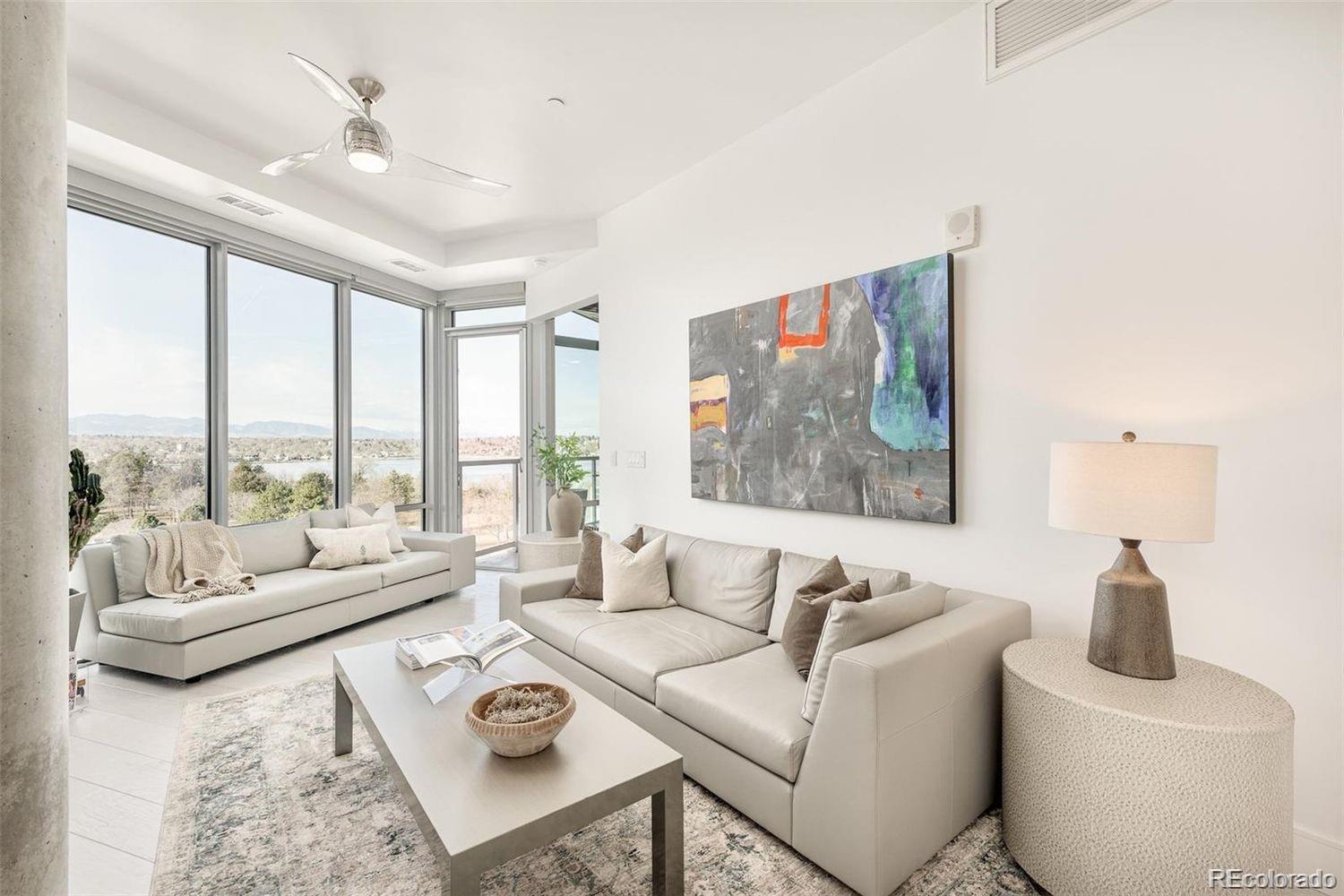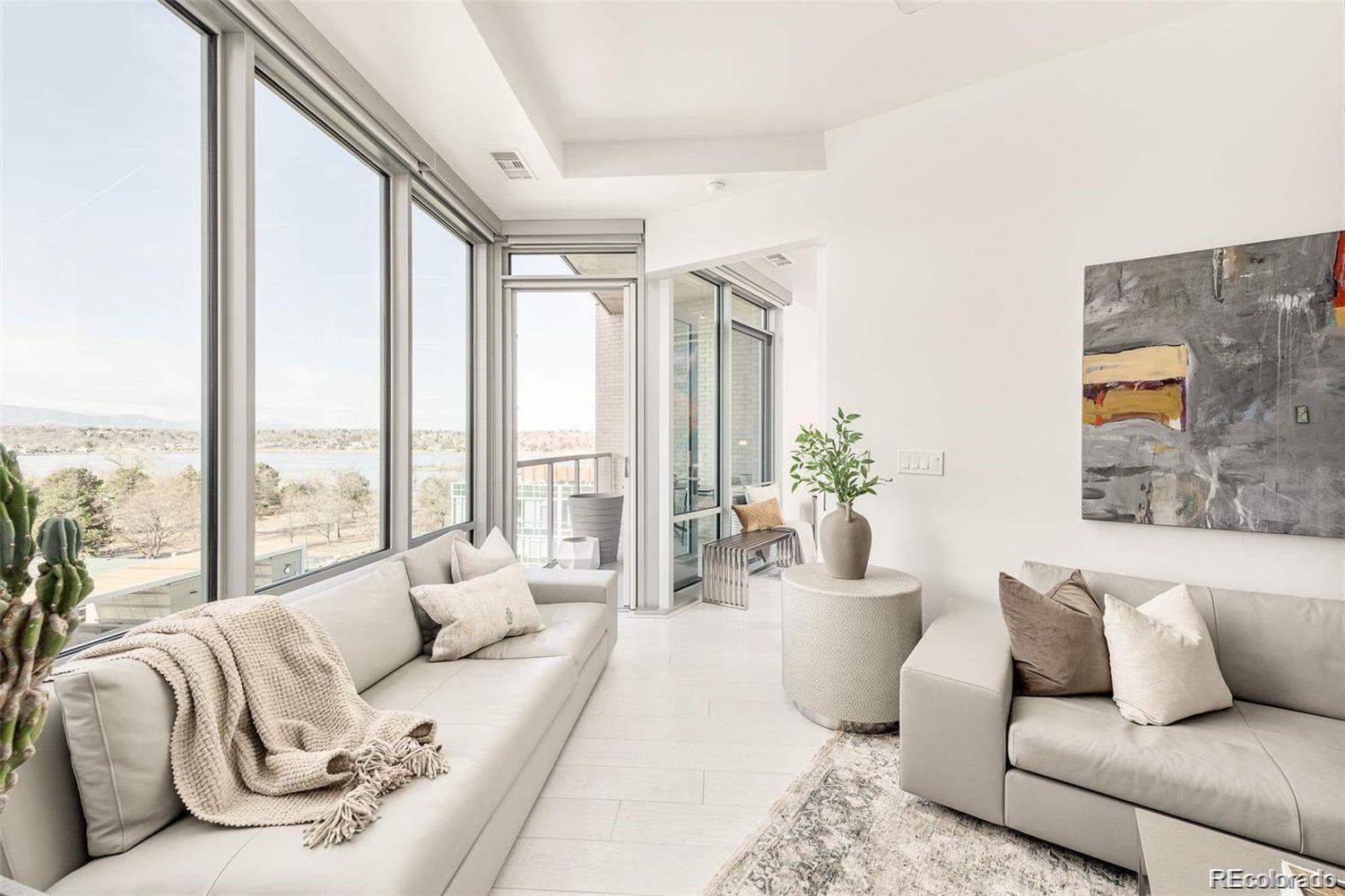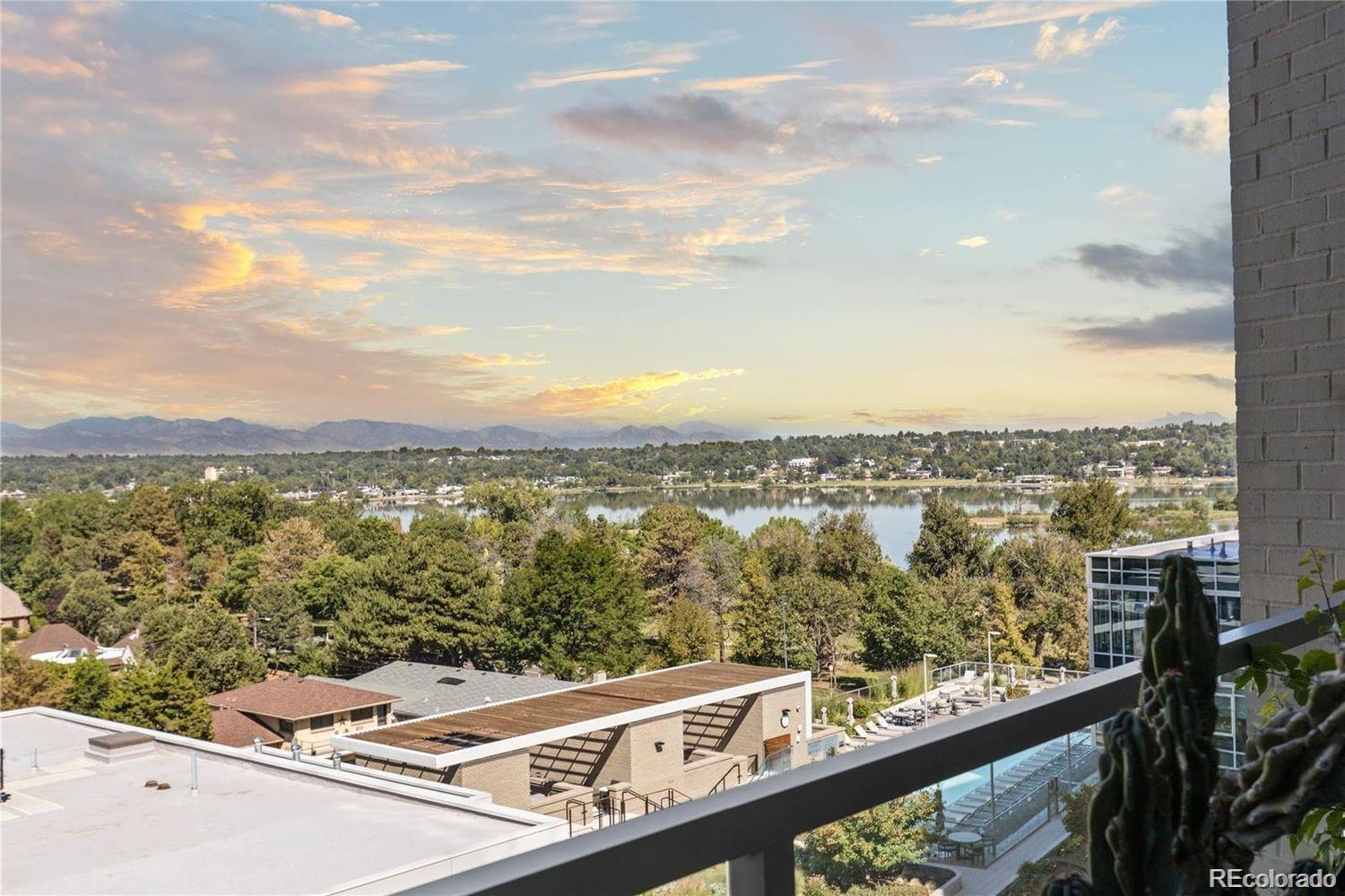 Welcome home to the epitome of luxury living in Sloan's Lake with an ideal waterfront location. This gorgeous 2 bedroom + den, 3 bathroom Lakehouse condo features floor to ceiling windows and incredible, unobstructed mountain and lake views. Uniquely designed by Munoz architects with angles that provide a full view of the awe-inspiring lake and mountain peaks. Modern top of the line finishes include Thermador appliances, Porcelanosa tile, ItalKraft cabinets with pull out shelves, Cambria quartz countertops, custom lighting, California closets and upgraded electric roller shades with room darkening shades in the bedrooms. A custom built-in dining table with Corian tabletop elevates the space. Wake up to serene mountain and lake views from the primary bedroom, and enjoy coffee on one of your 2 balconies. Entertain guests in your stunning kitchen and living room, while you continue to delight in views of Colorado sunsets over the Rockies, and Sloan's Lake. The den features plenty of built-in storage and makes for a great office. This is a premier unit boasting an upgraded appliance package and automated blinds in addition to enhancements like custom flooring, Hansgrohe plumbing fixtures, laundry closet w/ sink, and custom bathroom vanities. Head downstairs to enjoy dinner at Cholon or Gusto - right in the building. Lakehouse is the only building in Colorado to be WELL Certified Gold promoting a well-rounded health & wellness journey. Outstanding amenities include 24 Hr Front Desk Attendant, Year Round, heated 70-ft Lap Pool, Hot Tub with Expansive Outdoor Seating, Resident's Lounge with an Indoor/Outdoor Kitchen, Pizza Ovens, Grills, Urban Farm, Fitness Center w/ modern equipment, Yoga Studio, Craft Room, Meditation Gardens, Indoor/Outdoor Fire pits, Secured Garage/Storage, Sports/Bike Workshop, Pet Spa, Rentals (kayaks, paddle boards), Bike Storage, Wellness Concierge, Guest Suite, and calendar of wellness classes and events.