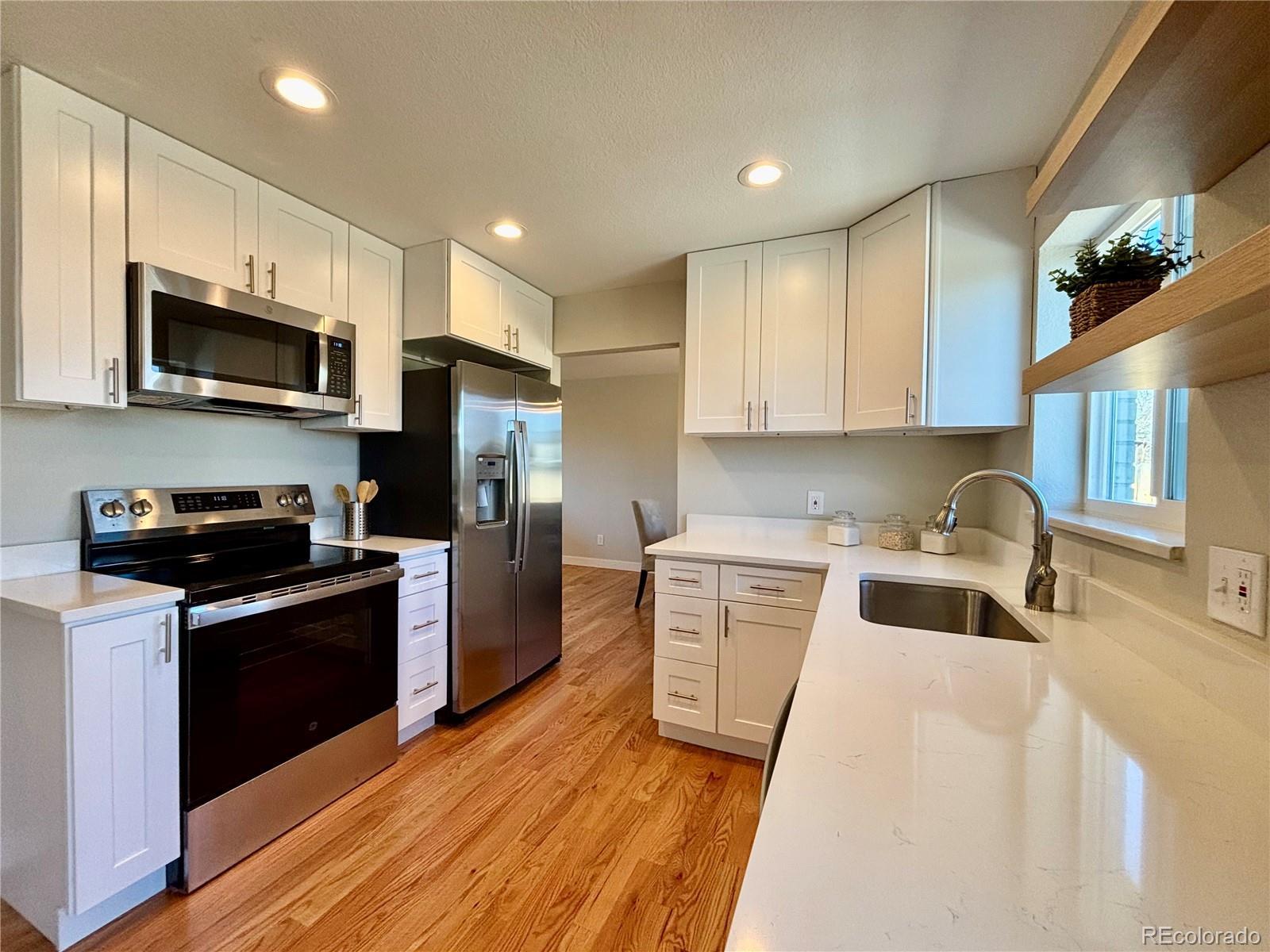 Welcome to this charming single-family home in Littleton. This updated 3-bedroom, 2.5-bathroom home offers the perfect blend of modern elegance and comfort. Featuring fresh, vibrant paint and upgraded lighting throughout, this home creates a welcoming atmosphere from the moment you step inside. The gorgeous hardwood flooring flows seamlessly through the main level, while brand-new carpet adds a cozy touch to the lower level. The kitchen is a true highlight with beautiful wood cabinetry, luxurious quartz countertops, and stainless-steel appliances. – perfect for cooking and entertaining. The bathroom has been meticulously updated with stylish designer tile. All new landscaping and paver patio! Located in a fantastic neighborhood. This home is ready for you to move in and start making memories. Don’t miss your chance to see this amazing home – it’s waiting for you!