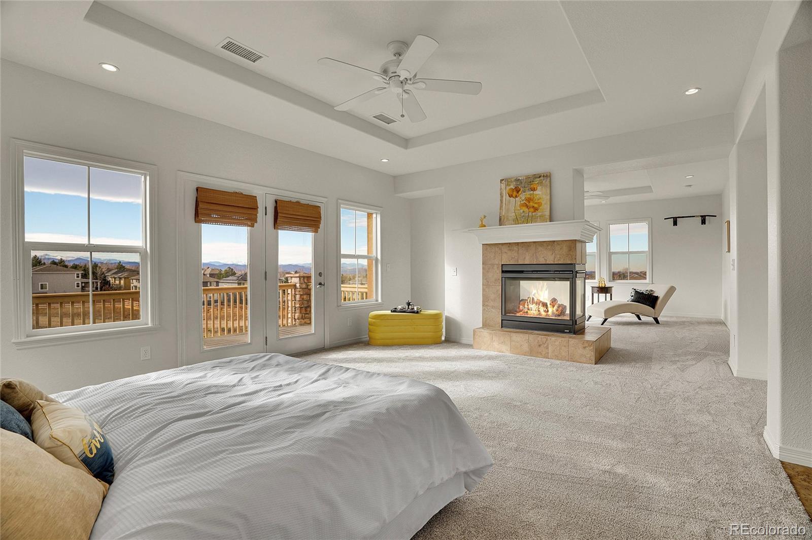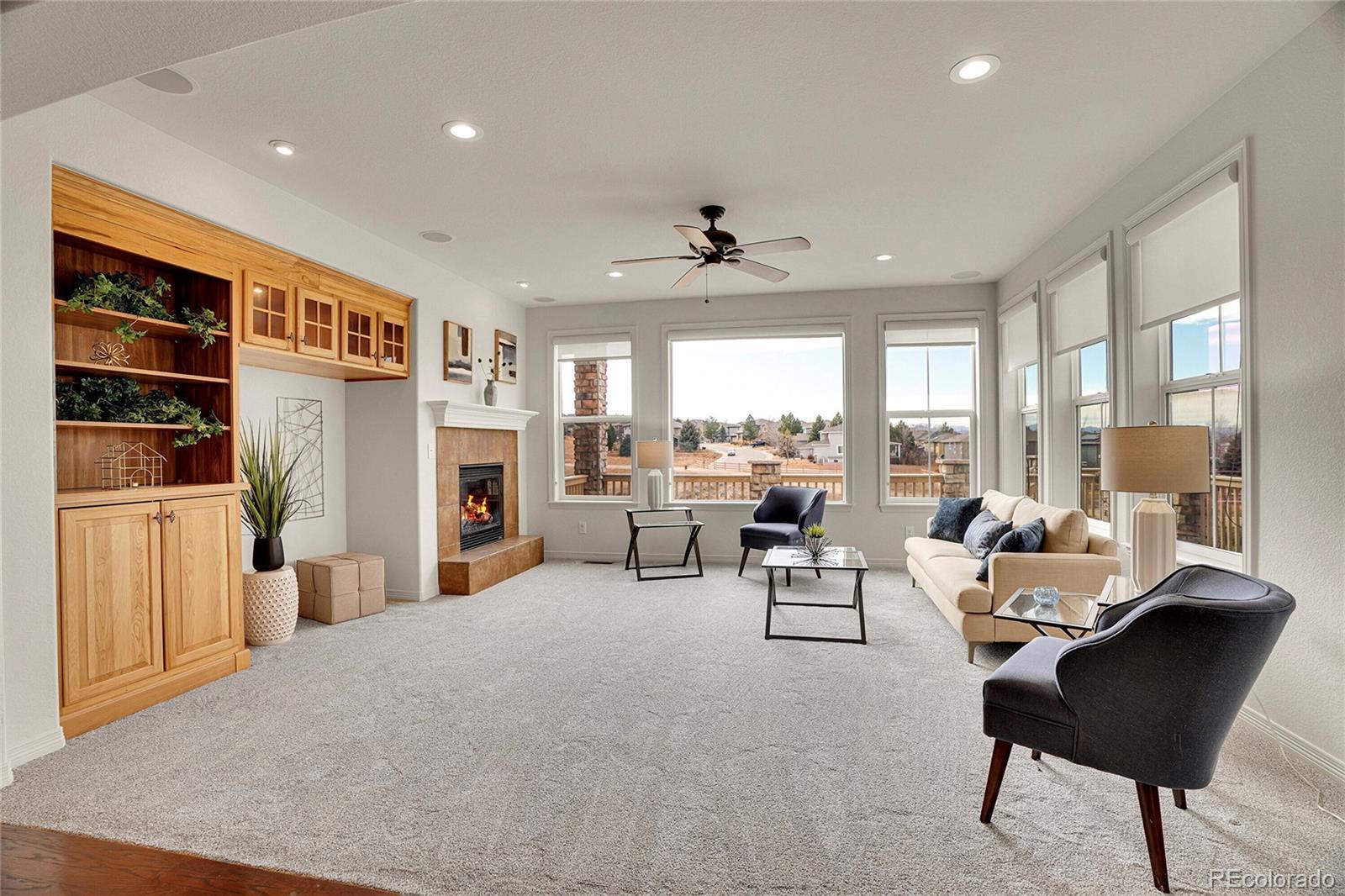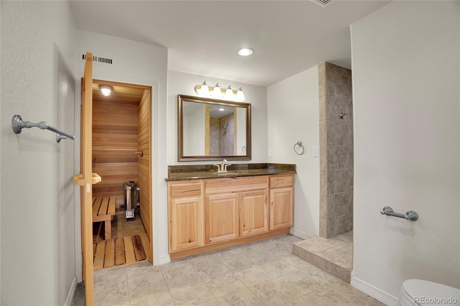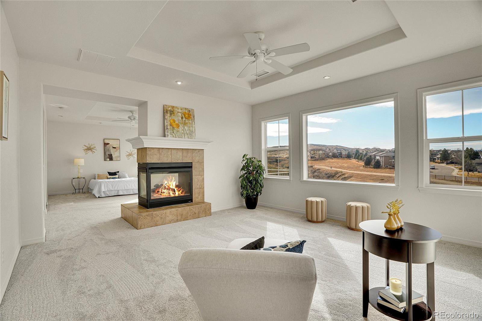 Experience elevated Colorado living in this beautifully appointed 5-bedroom, 5-bath mountain-view retreat, where privacy, warmth, and unforgettable scenery come together. Perfectly positioned to capture sweeping panoramic views, the expansive deck becomes an extension of the home — ideal for sunset evenings, morning coffee, and unforgettable 4th of July fireworks lighting up the horizon. The home is both refined and inviting, with generous living spaces anchored by multiple fireplaces that create a sense of comfort and timeless elegance. New Carpet and Paint throughout! The upper level offers 4 bedrooms, including a luxurious primary suite, a private deck with unobstructed mountain views, complete with a stunning two-sided fireplace. The 2nd bedroom includes a private 3/4 bathroom. The 3rd and 4th bedrooms share a full bathroom and the 3rd bedroom also has mountain views. On the main level, a dedicated office offers a quiet place to work or create, while large windows in the living spaces frame breathtaking mountain views and fill the home with natural light. The walk-out lower level is designed for both relaxation and entertaining, featuring a stylish wet bar, an additional bedroom and bath, and a private sauna — creating a true at-home escape. Outside, the backyard feels like a hidden oasis, with mature fruit trees (Cherry, Peach, Pear, Apple, Nectarine, and Apple). Exceptional privacy and serene views of open space that enhance the sense of tranquility. This is more than a home — it’s a lifestyle defined by views, privacy, and the kind of everyday luxury that makes Colorado living truly exceptional.
