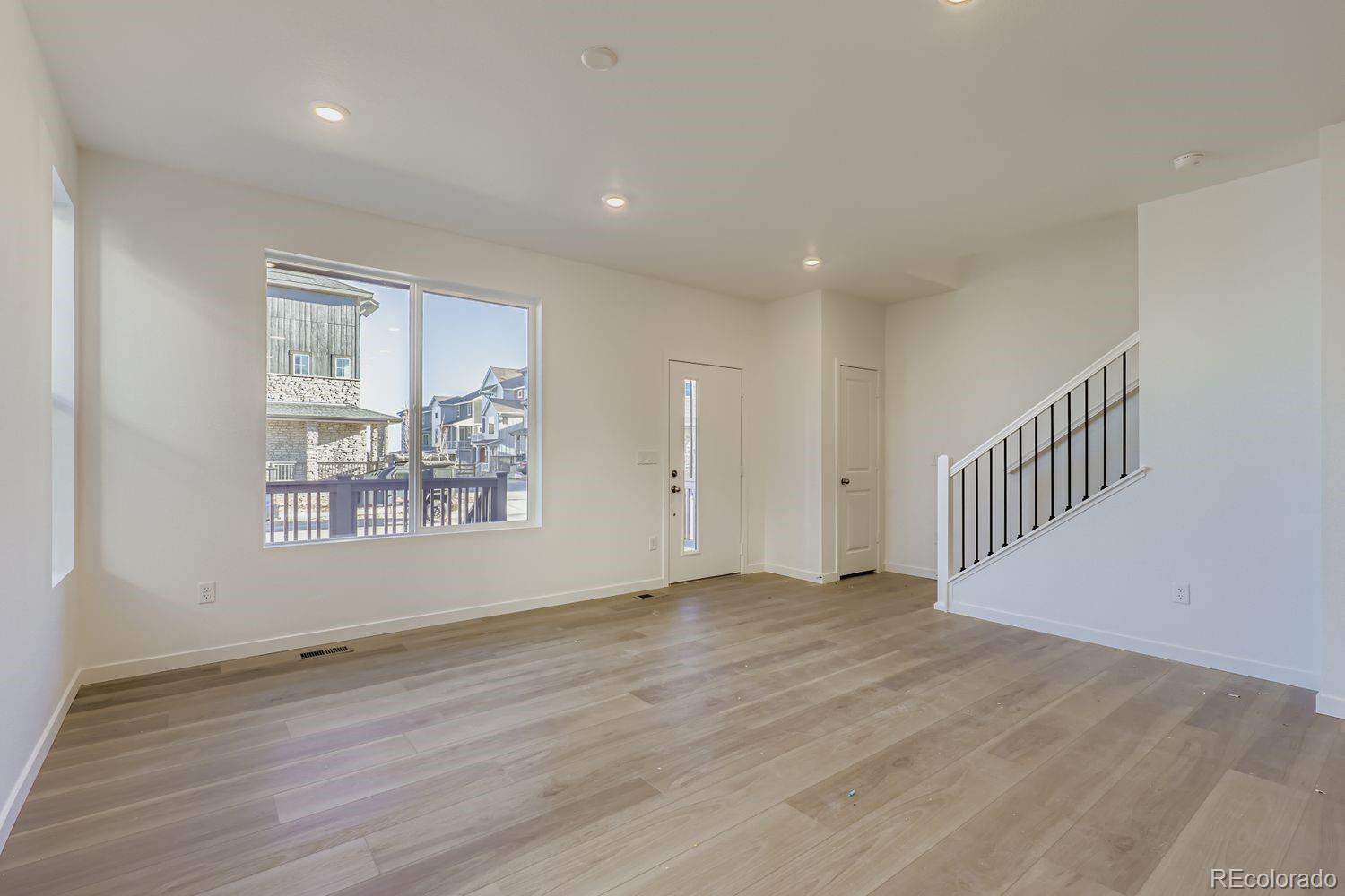 **Available with rates as low as 3.75 % when using builder’s preferred lender – terms and conditions apply – ask for details****Contact builder today about Special Financing for this home - terms and conditions apply** This thoughtfully designed two-story townhome blends modern style with low-maintenance ease. The open-concept main level features a spacious great room and a beautifully appointed kitchen, anchored by a large island that doubles as the perfect gathering spot for dining or entertaining. Upstairs, a versatile loft adds extra living space and leads to three comfortable bedrooms, including a serene owner’s suite with its own private bath. The third bedroom sits conveniently near the guest bathroom, and the upstairs laundry room makes everyday life effortless. A rear-facing two-car garage adds storage and enhances curb appeal, completing this smart and stylish home. Set within a vibrant community, residents enjoy proximity to Denver Premium Outlets for upscale shopping and dining, as well as endless recreation and fitness options at Trail Winds Recreation Center. Smart design, effortless style, and everyday comfort—all in one perfect home. Ready Now!