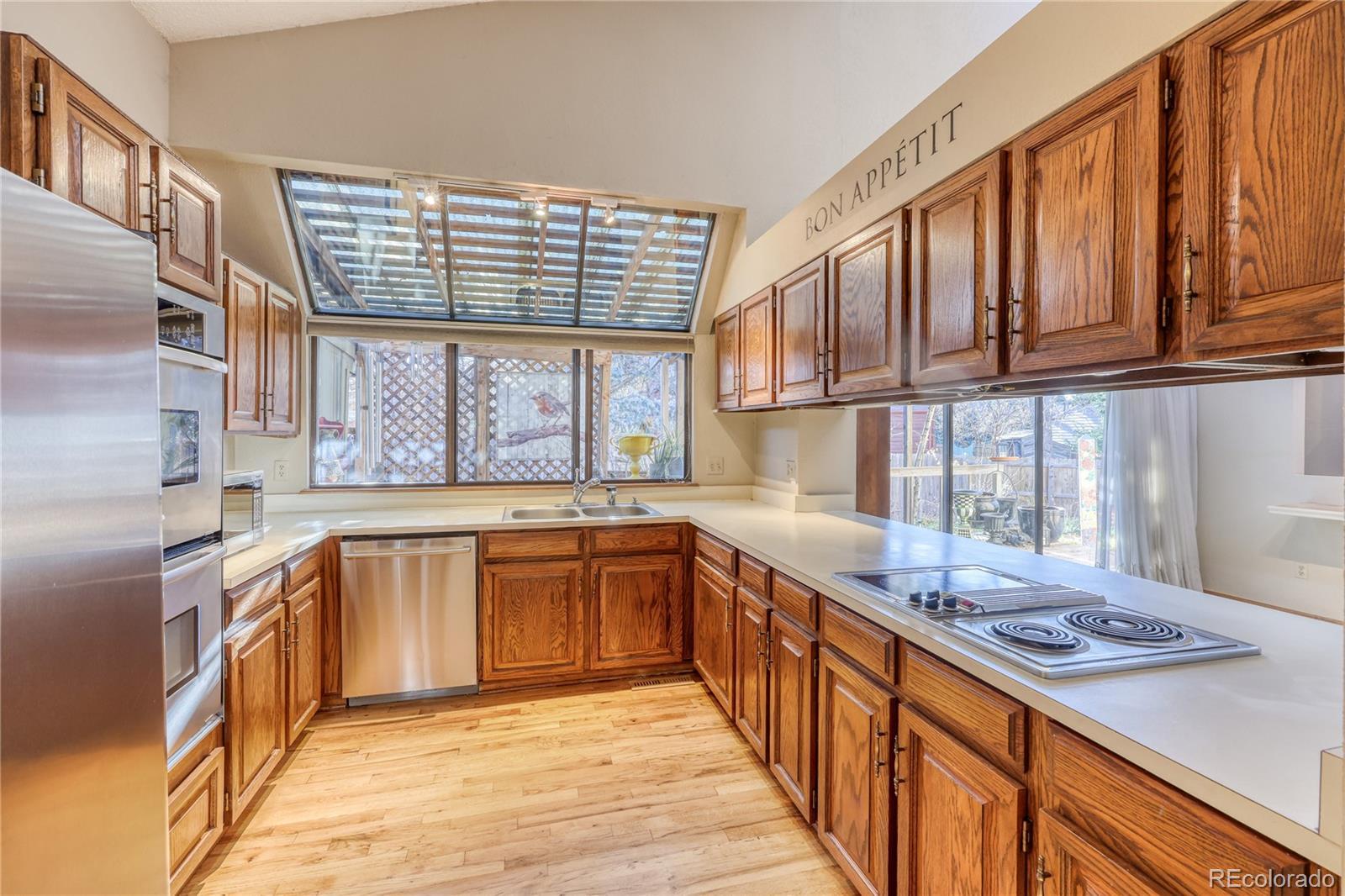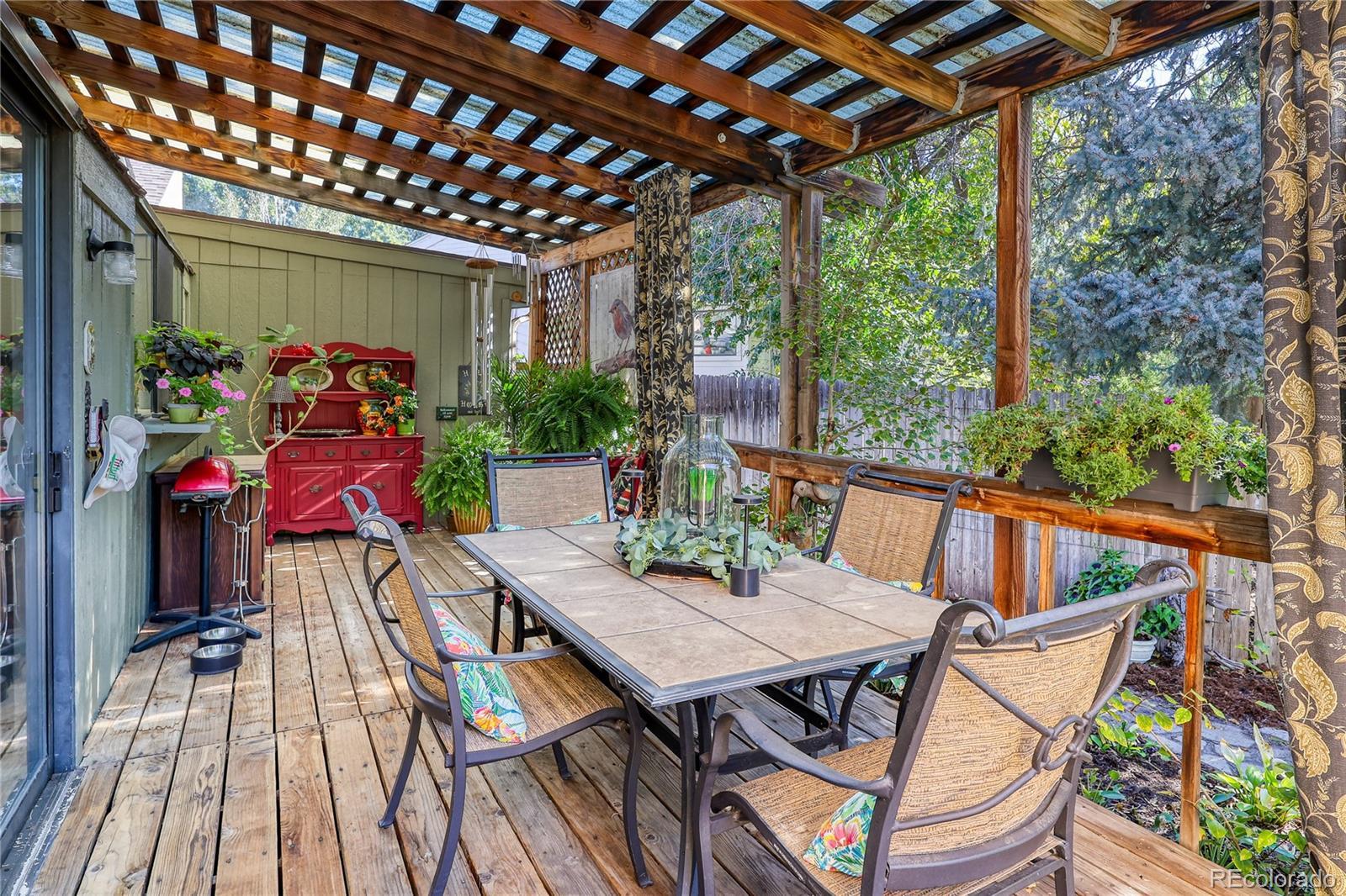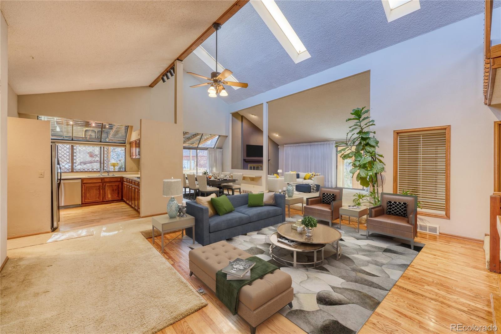 The original owners have lovingly cared for this home for 45 years, and it shows in the warmth and comfort felt throughout. Tucked at the back of a quiet cul-de-sac, this inviting home is ready for its next chapter, offering an abundance of space, character, and opportunity for the next owners to make it their own. Upon entry, you’re welcomed by vaulted ceilings, an open floor plan, and a variety of unique spaces to relax, entertain, work and enjoy daily life. With over 4,300 square feet featuring a loft, sunroom, front and back patios, a main-level primary suite, a greenhouse, multiple functional storage spaces and almost 2,000 finished square feet in the basement, this home offers ample space for every idea and every season of life. Set on one of the largest lots in the community (a quarter acre), the landscaping is truly a work of art. Mature trees, perennials, and radiant ground cover come back lush and vibrant each spring, creating an outdoor setting designed for tranquility and enjoyment. The one-of-a-kind greenhouse is fully equipped with electricity, water, heating, cooling, and a thermostatic fan. Theres also a custom concrete potting table just outside. A large portion of the front yard was refreshed this year, and all irrigation systems are in perfect working order, making it easy to maintain the outdoor oasis that took a lifetime to create. Recent updates include a remodeled secondary bathroom, new French doors off of the front bedroom, a new sewer line to the city tap ($26K), newer furnace and AC, fresh exterior paint, a new garage door opener, and a new double oven. You'll love this prime location just steps from Cherry Creek State Park with easy access to I-225 and DIA, plus zoning for the highly regarded Cherry Creek 5 School District. Whether you envision multigenerational living, creative studio space, expanded entertaining areas, or simply room to grow, this home provides the footprint to make it all possible.