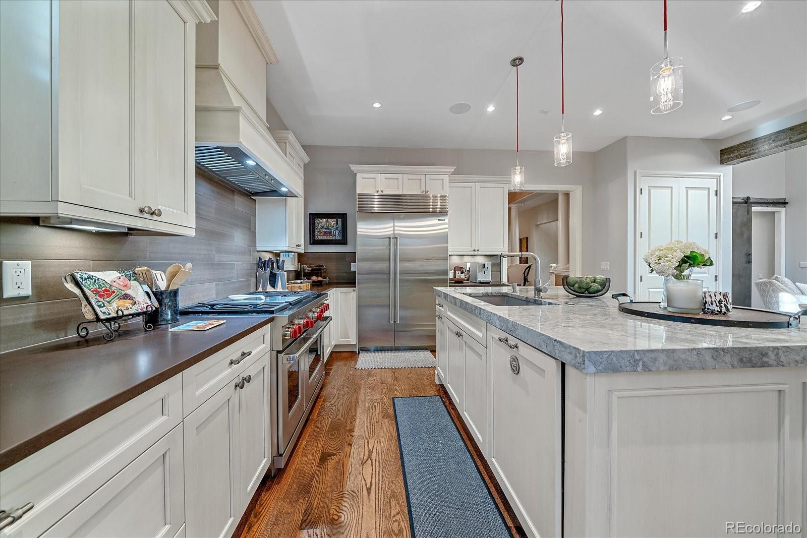 Nestled behind the gates of Cherry Creek Country Club, this Tudor-style residence blends refined craftsmanship with modern comfort in one of Denver’s premier golf course communities. Wide-plank hardwoods, quartzite surfaces, curated hardware, custom lighting and layered textures create an elevated aesthetic throughout. The open great room makes an immediate impression with a reclaimed wood tongue-and-groove vaulted ceiling, exposed beams, an industrial barn door accent and a dramatic floor-to-ceiling stone fireplace, seamlessly extending to a heated, pergola-covered patio wrapped in lush landscaping for added privacy. At the heart of the home, the gourmet kitchen showcases Wolf and Sub-Zero appliances, a 6-burner range, a large quartzite island with seating, built-in wine fridge, buffet, walk-in pantry, custom tile backsplash and a breakfast nook with built-in bench. The main-level primary suite has vaulted ceilings, a 5-piece bath with jetted tub and a walk-in closet complete with Bosch washer and dryer. French doors lead to a private study with custom wood built-ins and plantation shutters. Designed for entertaining, the lower level stands out as one of the finest basements in the community. A custom wet bar includes a kegerator and two 250-bottle EuroCave wine fridges, anchored by multiple seating areas framed with stone accent walls and a large fireplace. An adjacent open theater space—complete with integrated sound and lighting—sets the stage for game days and movie nights, while an additional private suite offers comfortable guest accommodations. Living in this gated, resort-style enclave includes access to private Jack Nicklaus Signature golf course, clubhouse dining, fitness and spa facilities, tennis courts and a 24-hour guarded entrance—just minutes from DTC, Cherry Creek schools and shopping, and the High Line Canal and Cherry Creek Trails. Visit YourDenverHm.com.