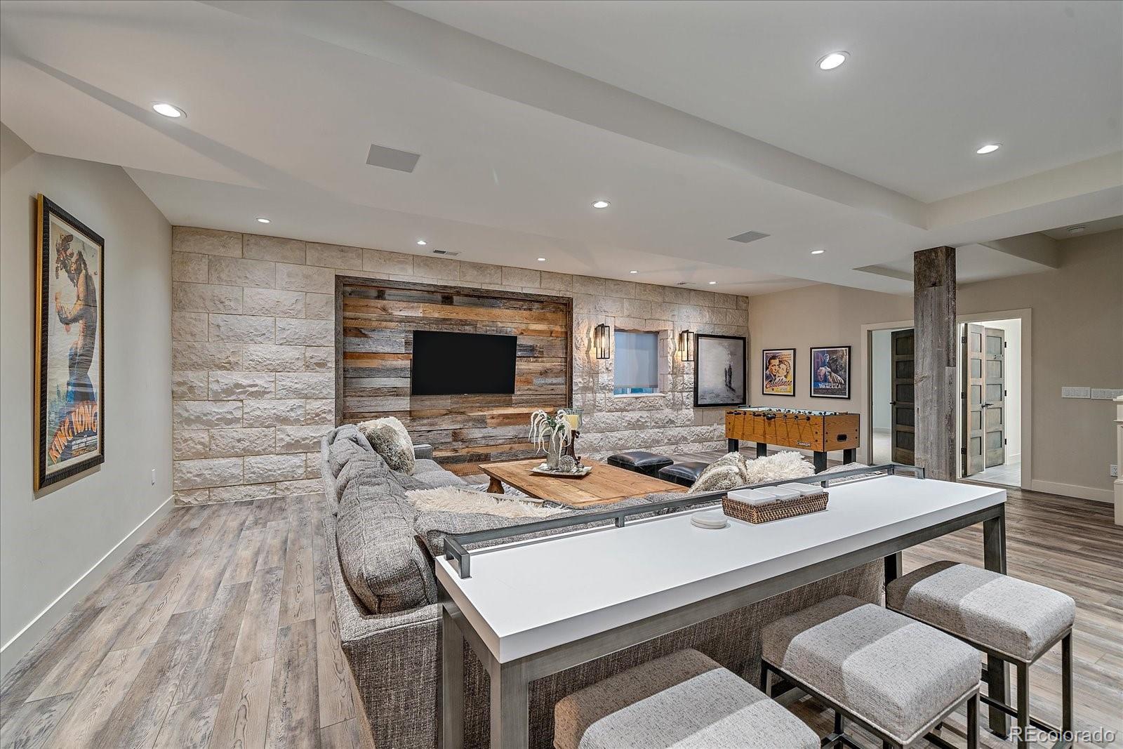 Nestled inside the gates of Cherry Creek Country Club, this Tudor-style home delivers refined craftsmanship and modern comfort in one of Denver’s premier golf course communities. Wide-plank hardwoods, quartzite surfaces, custom lighting, curated hardware and layered textures set an elevated tone throughout. The open great room features a reclaimed wood tongue-and-groove vaulted ceiling, exposed beams, an industrial barn door accent and a dramatic floor-to-ceiling stone fireplace, all connecting to a heated, pergola-covered patio surrounded by lush landscaping for privacy. The gourmet kitchen is a true focal point with Wolf and Sub-Zero appliances, a 6-burner range, large quartzite island with seating, built-in wine fridge, buffet, walk-in pantry, custom tile backsplash and breakfast nook with built-in bench. The main-level primary suite offers vaulted ceilings, a 5-piece bath with jetted tub and a walk-in closet with Bosch washer and dryer. French doors open to a private study with custom wood built-ins and plantation shutters. The lower level is designed for entertaining, showcasing one of the finest basements in the community. A custom wet bar includes a kegerator, two 250-bottle EuroCave wine fridges and multiple seating areas framed by stone accent walls and a large fireplace. The adjacent open theater space is ideal for game day or movie nights with integrated sound and lighting, plus an additional private suite for guests. Living in this gated, resort-style community means access to a private Jack Nicklaus Signature golf course, clubhouse dining, fitness and spa facilities, tennis courts and a 24-hour guarded entrance, all minutes from the Denver Tech Center, Cherry Creek schools and shopping, and the High Line Canal and Cherry Creek Trails. Gated Community. * OPEN HOUSE CANCELED DUE TO BRONCOS GAME * Contact listing agent to schedule private showing * Visit YourDenverHm.com to learn more about this home.