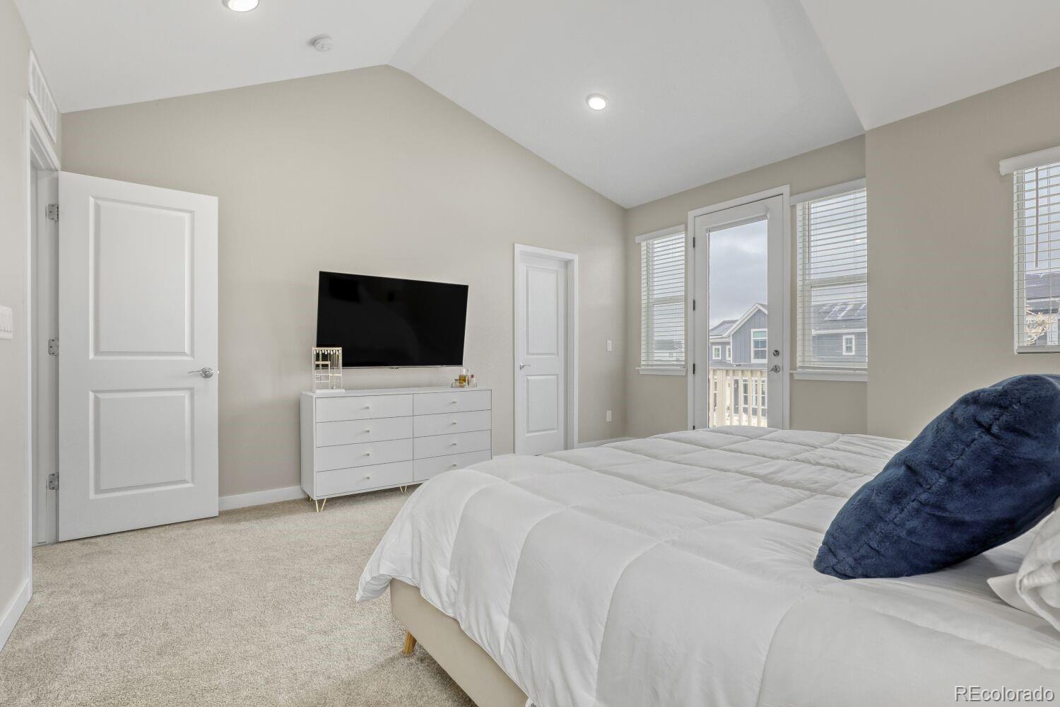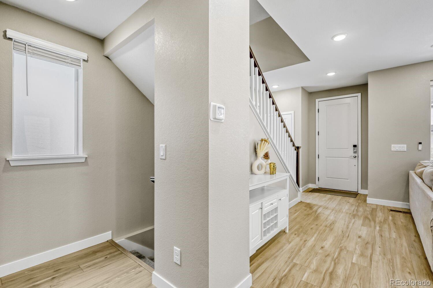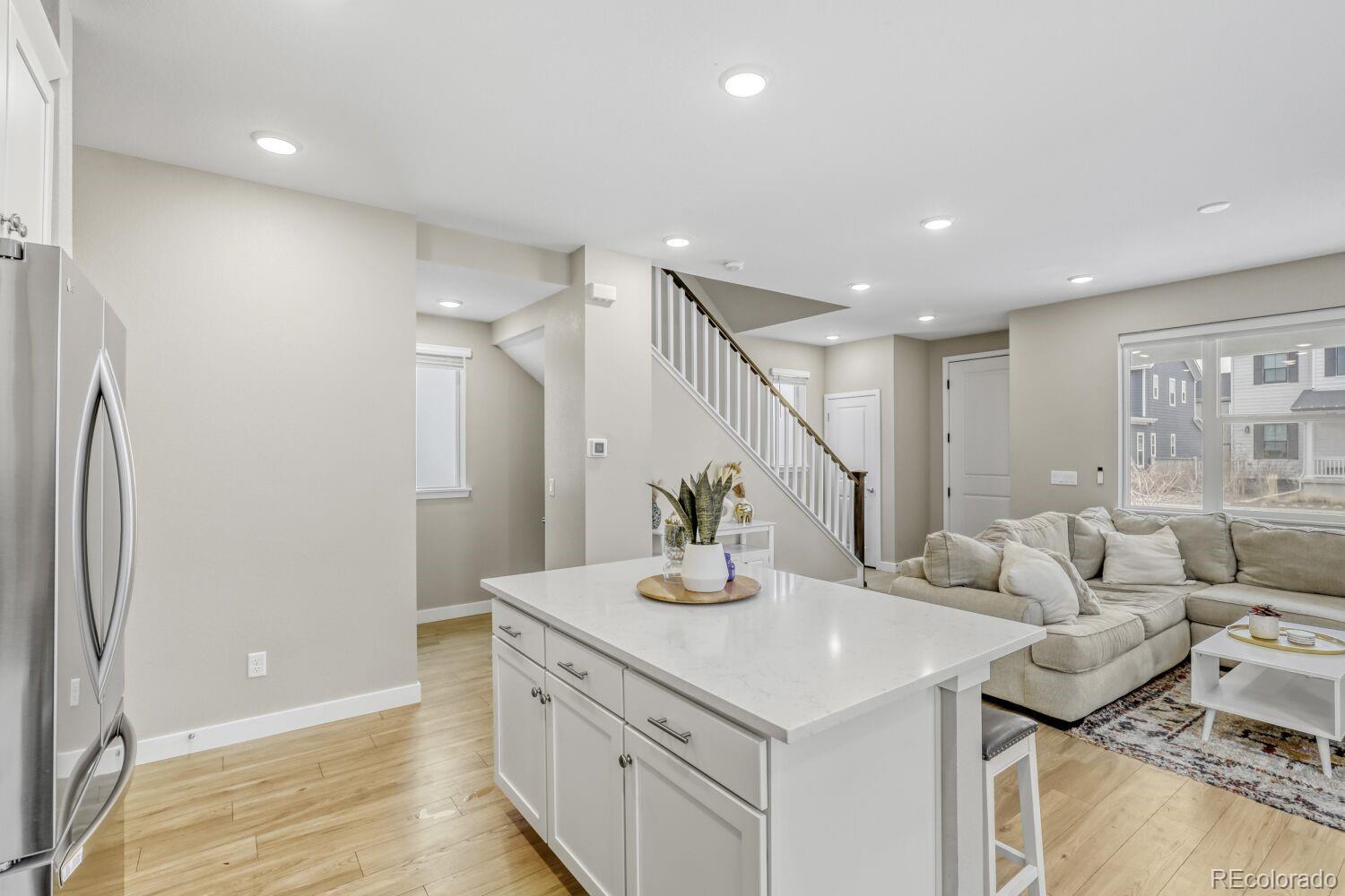 This exceptional 3-bedroom, 4-bath home combines modern design, top-tier finishes, and low-maintenance outdoor living in one of Denver’s most sought-after neighborhoods - Central Park. With an inviting open floor plan and a park-front location, this nearly new home offers the perfect blend of style, space, and convenience. The bright and open main floor features spacious living and dining areas centered around a sleek chef’s kitchen with a large island and quartz countertops, induction range, stainless steel appliances, soft-close drawers, decorative tile backsplash, pantry, and plentiful cabinetry - ideal for cooking, entertaining, and everyday living. Just off the dining area, a sliding glass door opens to the backyard, making indoor-outdoor hosting effortless. Upstairs, the expansive primary suite is a private retreat with vaulted ceilings, a large walk-in closet, and a spa-like en-suite bath featuring dual sinks and a glass-enclosed shower. An additional bedroom, full bath, and convenient laundry room complete the upper level. The finished basement adds even more flexibility with a guest bedroom, bonus flex space, and full bath - perfect for a media room, home gym, play area, or additional living space. A radon mitigation system provides extra peace of mind. Outside, enjoy a fully fenced, low-maintenance turf yard with a concrete patio and side patio, designed for easy outdoor living. The attached two-car garage offers excellent storage. Ideally located just steps from scenic trails, parks, playgrounds, community pools, pickleball courts, top-rated schools, and Central Park’s shopping and dining, this home truly delivers the best of Denver living.
