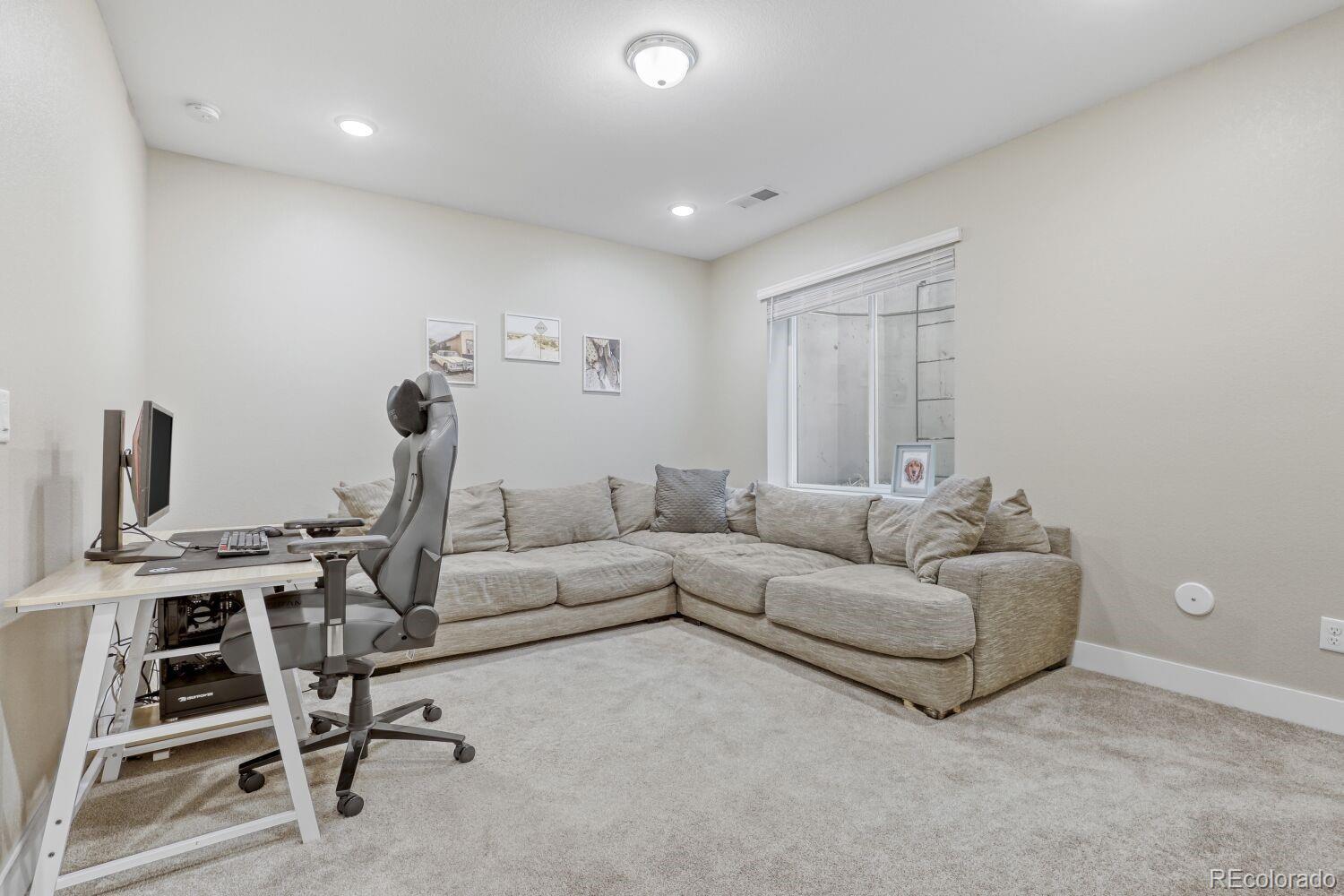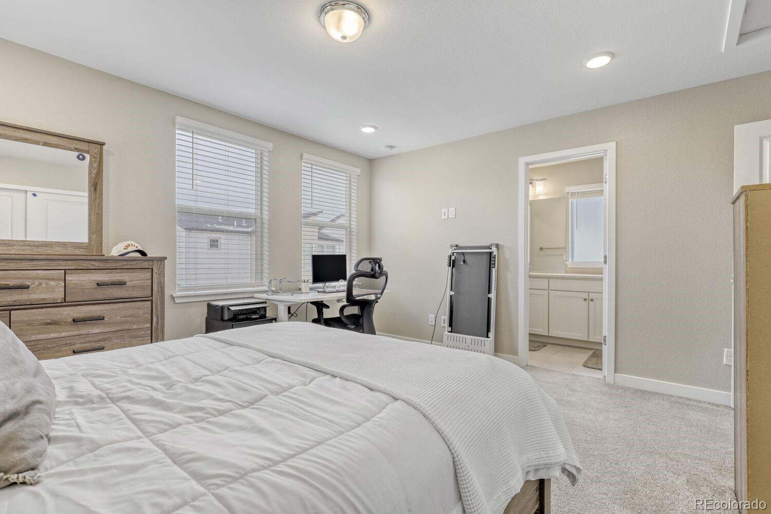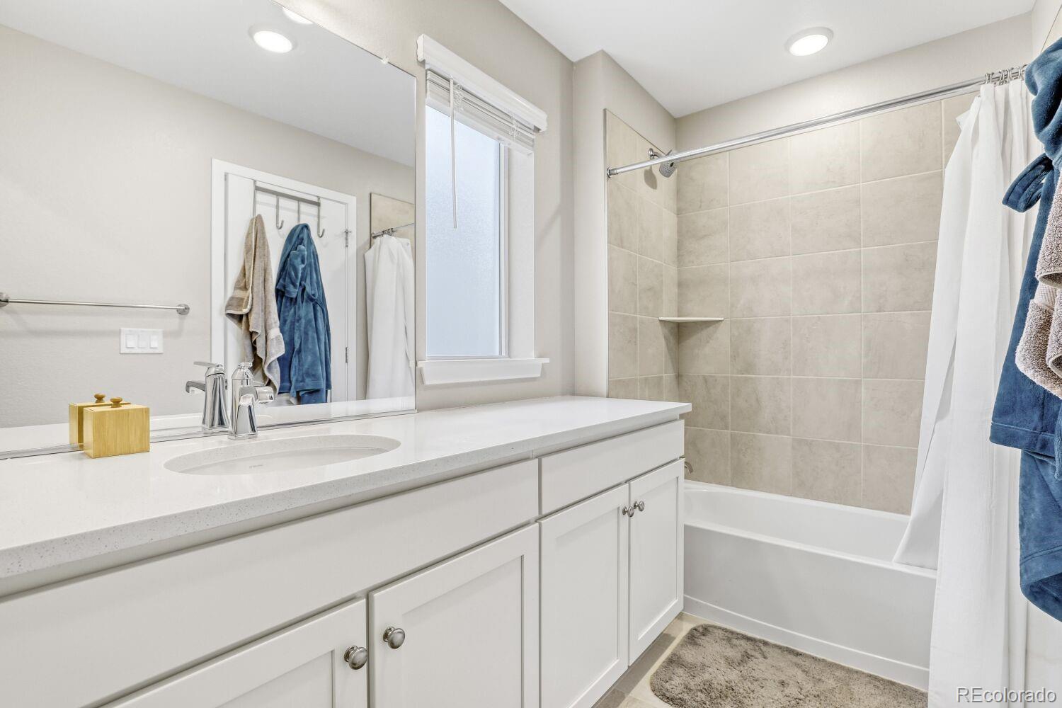 This exceptional 3-bedroom, 4-bath home combines modern design, top-tier finishes, and low-maintenance outdoor living in one of Denver’s most sought-after neighborhoods - Central Park. With an inviting open floor plan and a park-front location, this nearly new home offers the perfect blend of style, space, and convenience. The bright and open main floor features spacious living and dining areas centered around a sleek chef’s kitchen with a large island and quartz countertops, induction range, stainless steel appliances, soft-close drawers, decorative tile backsplash, pantry, and plentiful cabinetry - ideal for cooking, entertaining, and everyday living. Just off the dining area, a sliding glass door opens to the backyard, making indoor-outdoor hosting effortless. Upstairs, the expansive primary suite is a private retreat with vaulted ceilings, a large walk-in closet, and a spa-like en-suite bath featuring dual sinks and a glass-enclosed shower. An additional bedroom, full bath, and convenient laundry room complete the upper level. The finished basement adds even more flexibility with a guest bedroom, bonus flex space, and full bath - perfect for a media room, home gym, play area, or additional living space. A radon mitigation system provides extra peace of mind. Outside, enjoy a fully fenced, low-maintenance turf yard with a concrete patio and side patio, designed for easy outdoor living. The attached two-car garage offers excellent storage. Ideally located just steps from scenic trails, parks, playgrounds, community pools, pickleball courts, top-rated schools, and Central Park’s shopping and dining, this home truly delivers the best of Denver living.