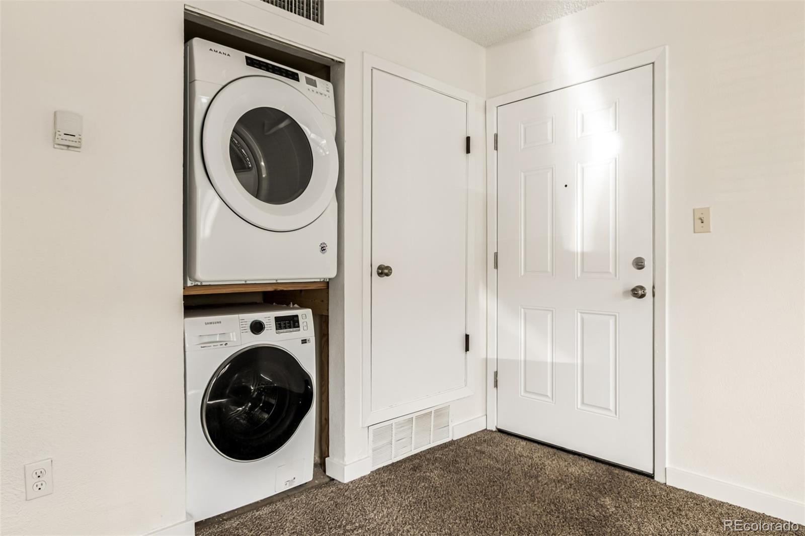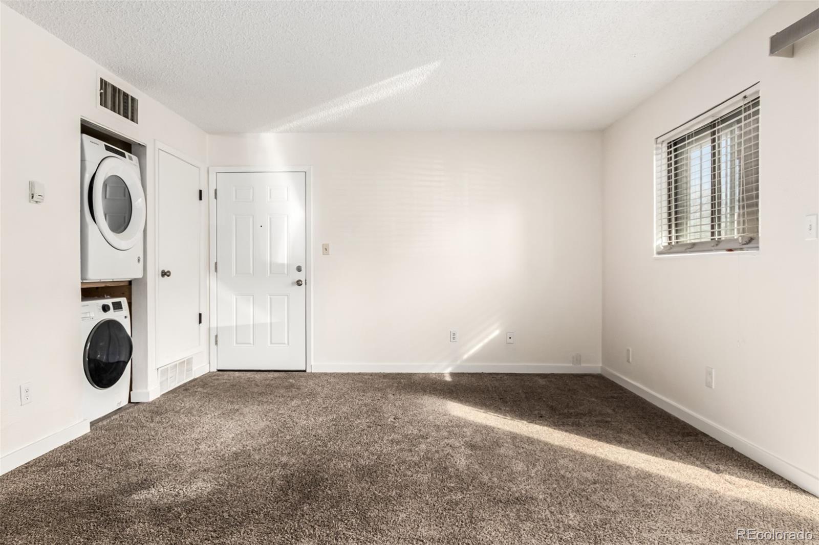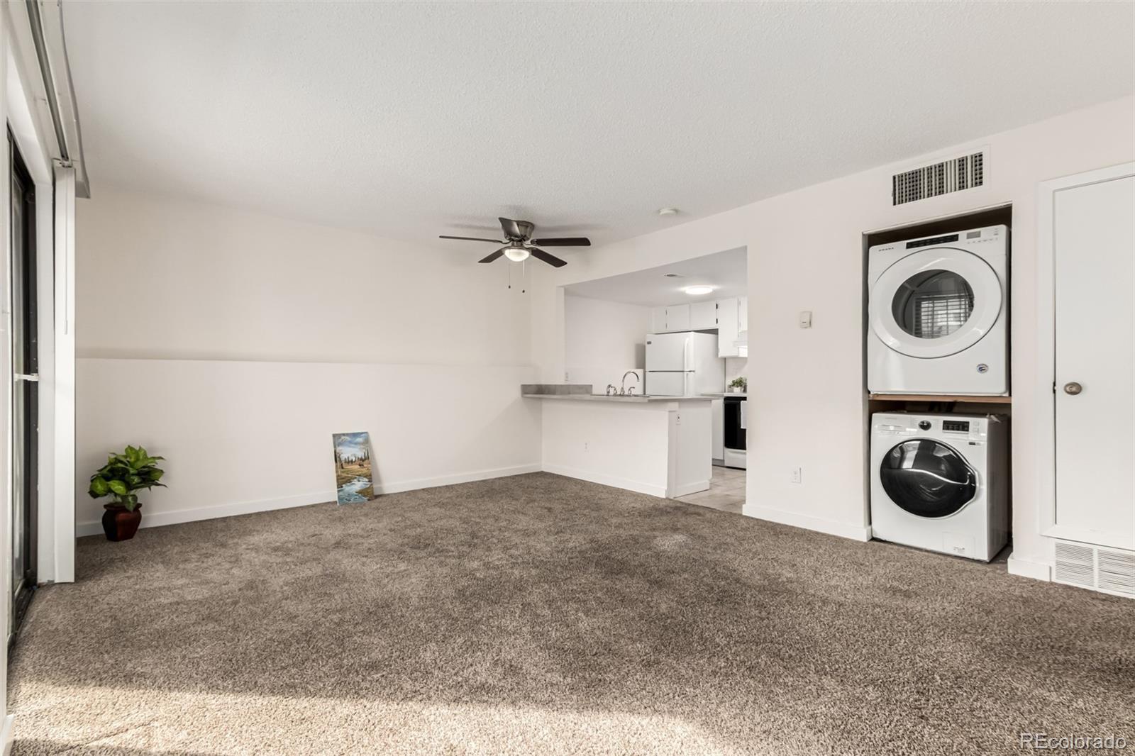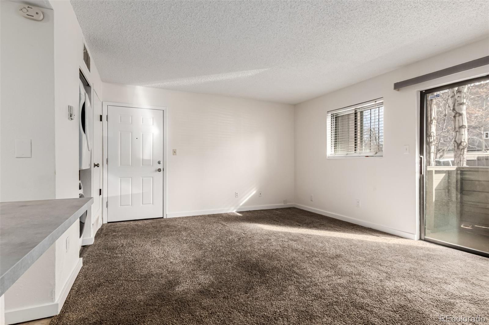 Welcome to 3100 S Federal Boulevard #115—an inviting and move-in ready residence offering comfort, functionality, and low-maintenance living in a convenient Denver location. Step inside to a bright, open-concept living space designed for both relaxation and everyday ease. The spacious living room is filled with natural light and features plush carpeting and a neutral color palette, creating a warm and welcoming atmosphere. Sliding glass doors lead to your private patio, offering the perfect spot to enjoy morning coffee, unwind in the evening, or add a touch of greenery to your space. The kitchen is thoughtfully laid out with ample cabinetry, generous counter space, and a butcher block kitchen island that seamlessly connects to the main living area. Whether you’re preparing weeknight meals or hosting friends, this functional layout makes cooking and entertaining effortless. The bedroom provides a comfortable retreat with plenty of space for a full bedroom set and additional furnishings. Large windows bring in soft natural light, while the nearby full bathroom is clean, bright, and easily accessible for both residents and guests. One of the standout features of this home is the in-unit washer and dryer—adding everyday convenience and eliminating the need for shared laundry facilities. Dedicated storage and smart use of space throughout the unit make organization simple and efficient. An added convenience is the dedicated parking space located directly outside the unit, labeled #115, providing easy access and everyday practicality. Enjoy low-maintenance living in a well-established community with easy access to shopping, dining, parks, and major commuter routes. Whether you’re a first-time buyer, investor, or looking to simplify your lifestyle, this home offers comfort, practicality, and value in one complete package. Discover the ease of condo living at 3100 S Federal Boulevard #115—schedule your showing today.