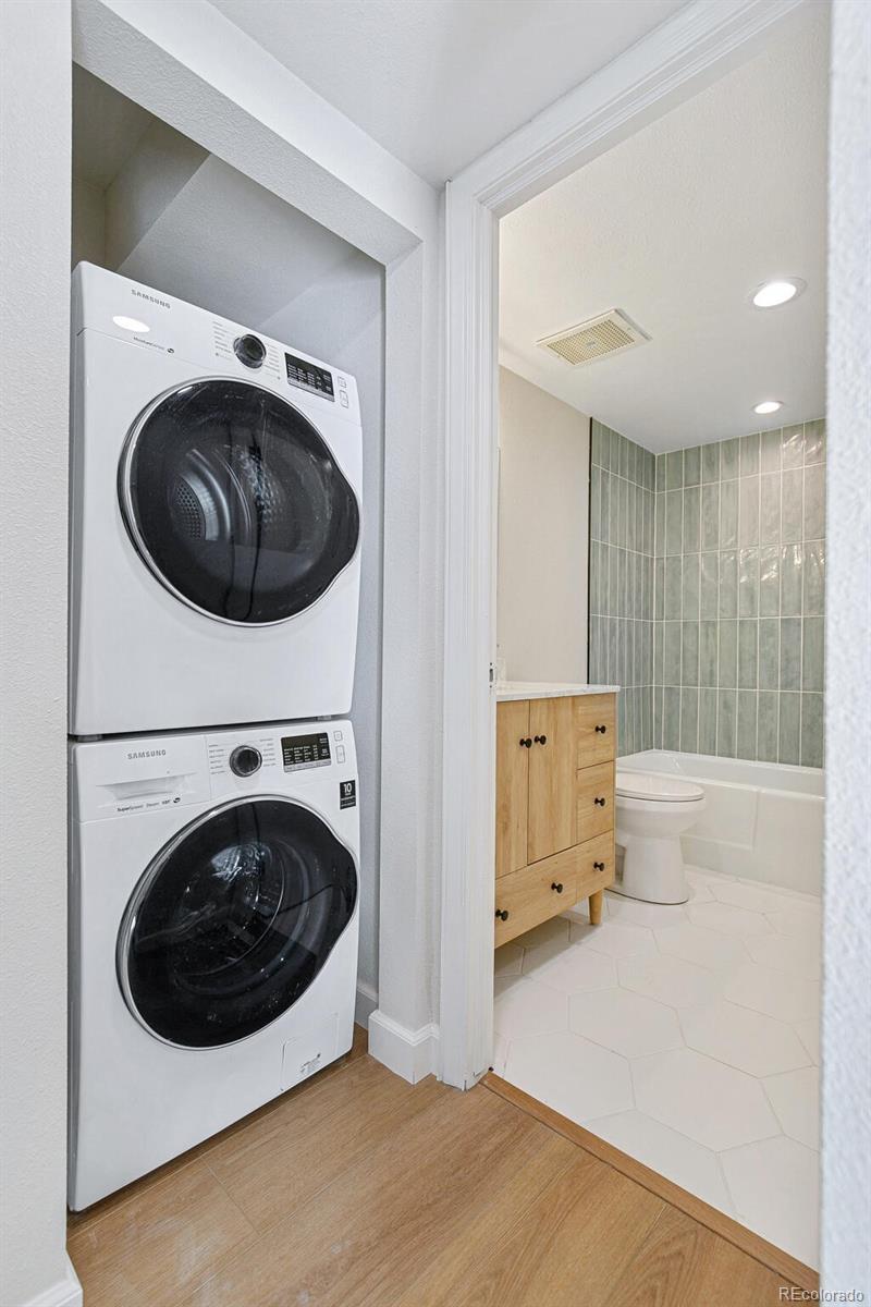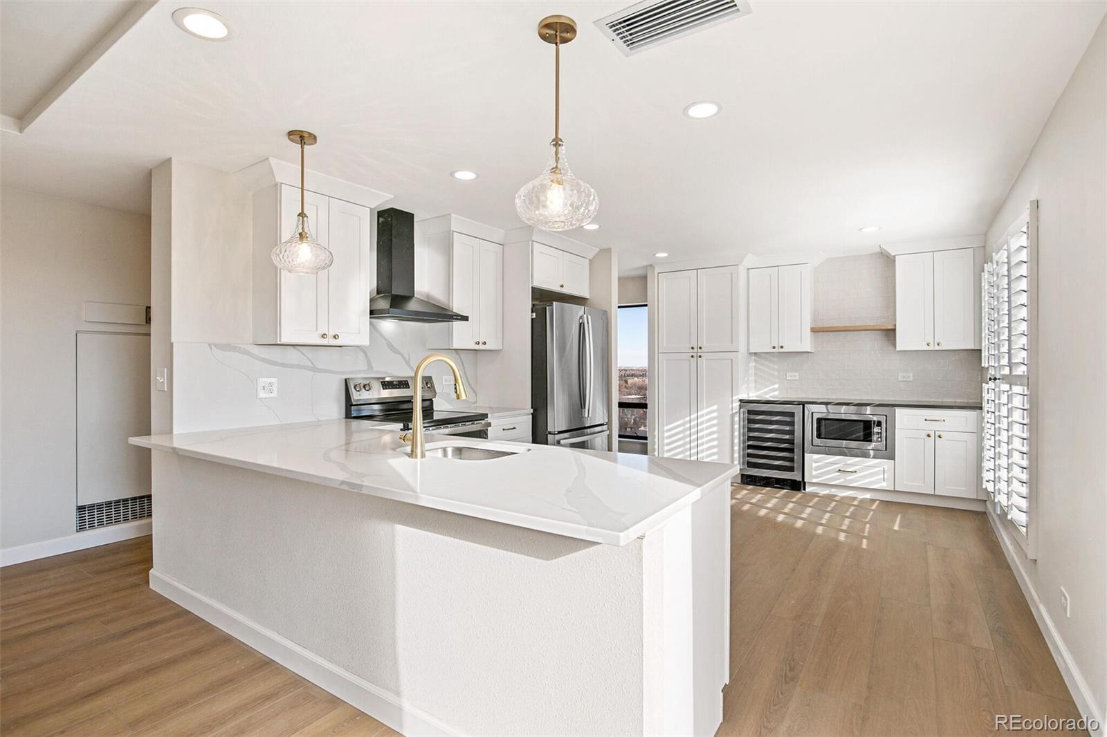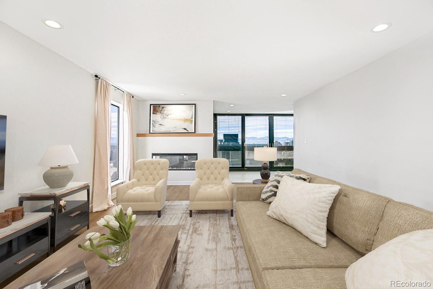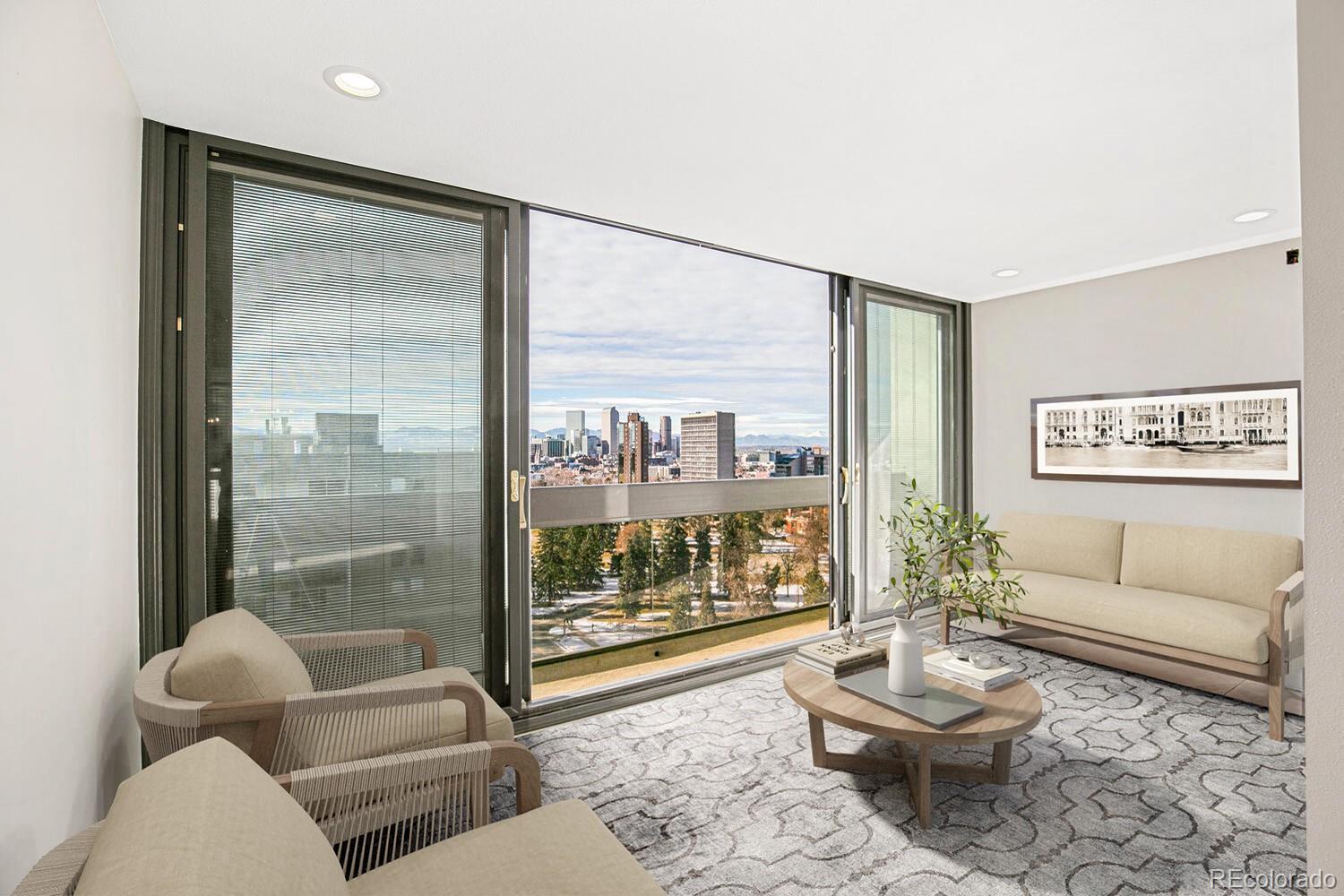 WOW!!!WHAT A DEAL. THE VIEWS, THE VIEWS. Panoramic views of the Rocky Mountains, Cheeseman Park, Downtown Denver and the Denver Botanic Gardens. You have to see this newly remodeled 2 bed/2 bath condo. We opened it up to enjoy the beautiful views. Everything is new. New kitchen cabinets with gorgeous quartz counter tops with a full backsplash. New stainless steel appliances with built in microwave and wine frig. A large panty that is sure to please. The hardware is a brushed gold finish. New paint and all new flooring throughout. The indoor/outdoor balcony spanning the living room and primary bedroom is fabulous for all year enjoyment. Waking up in the primary suite with that view is truly a pleasure that never gets old. Step through the slider to check the weather. Laundry is conveniently located within the unit and includes a washer and dryer. Enjoy the amenities of a fantastic HOA with an on-site manager and maintenance crew, plus a pool & hot tub, tennis courts, party room, garden areas, and a fitness center. Two reserved parking spaces and a storage locker in the heated, secure garage. Chargers for electric vehicles are currently being installed. Indulge guests with the convenience of a first-floor guest suite available for a very affordable nightly rate. Walk just 3 blocks to the Botanic Gardens for its popular summer concert series and interesting classes and special events. Cheesman Park is just steps away and it is mere minutes to Cherry Creek and Downtown Denver. This central location is in a quiet neighborhood with several restaurants and coffee shops nearby. It is the perfect place to enjoy secure and low maintenance living leaving more time to enjoy everything Denver has to offer.