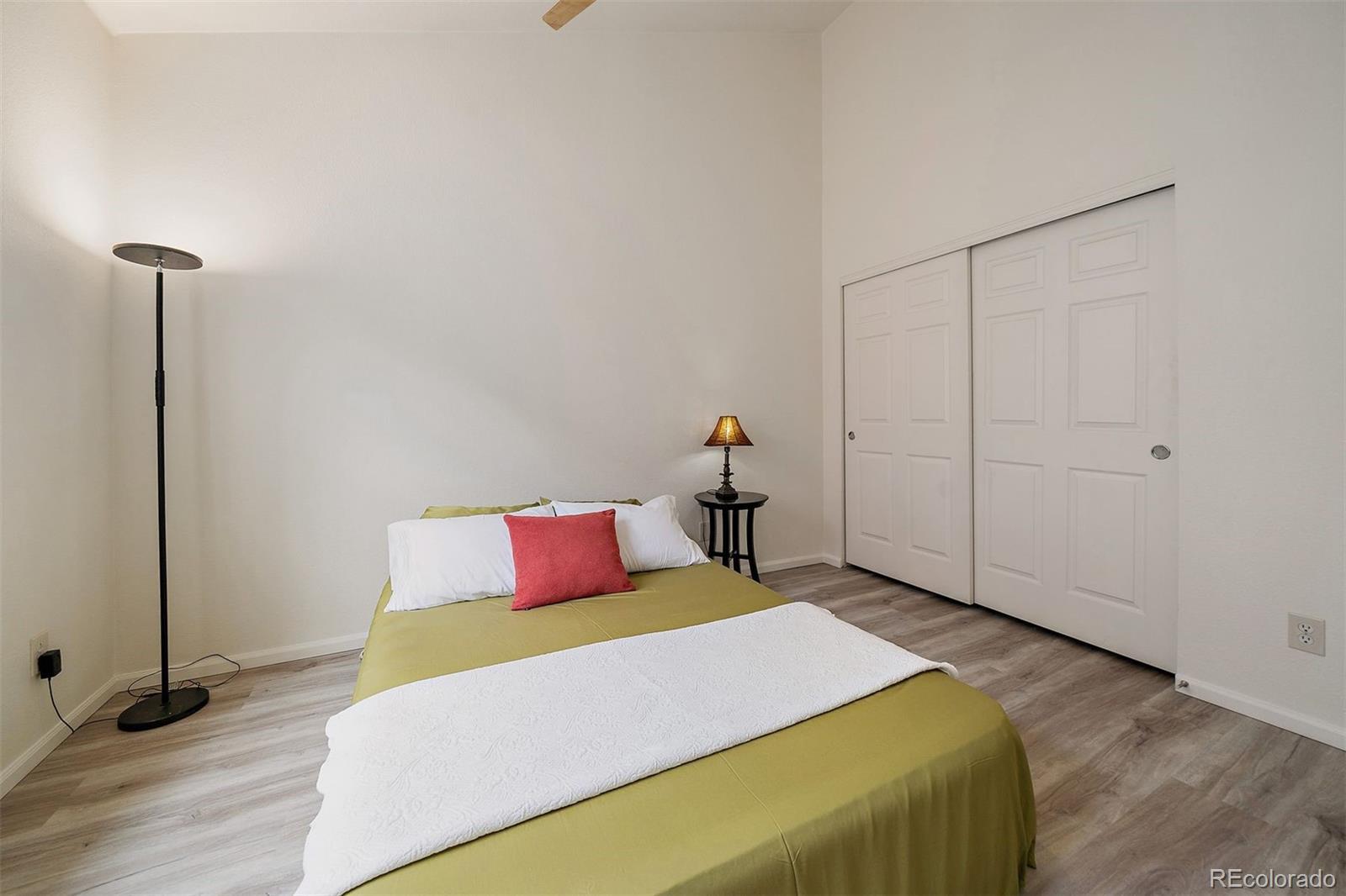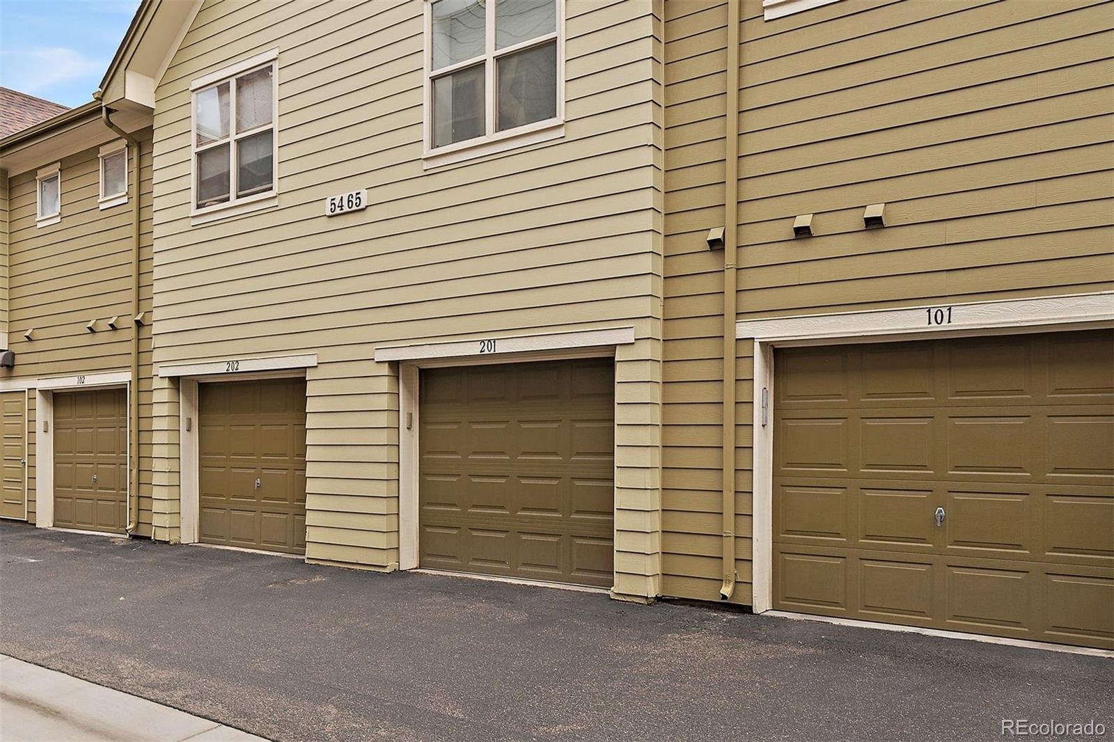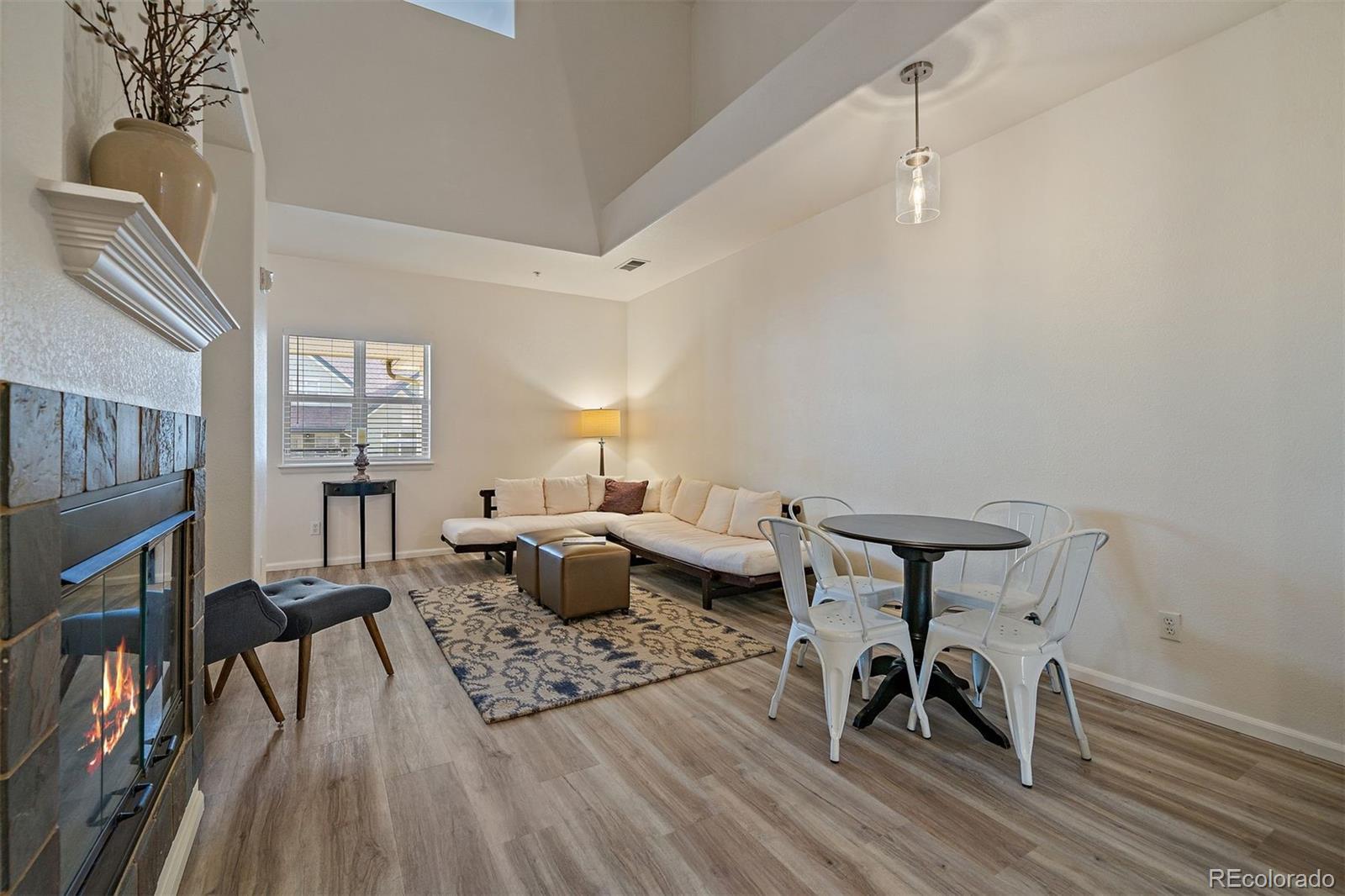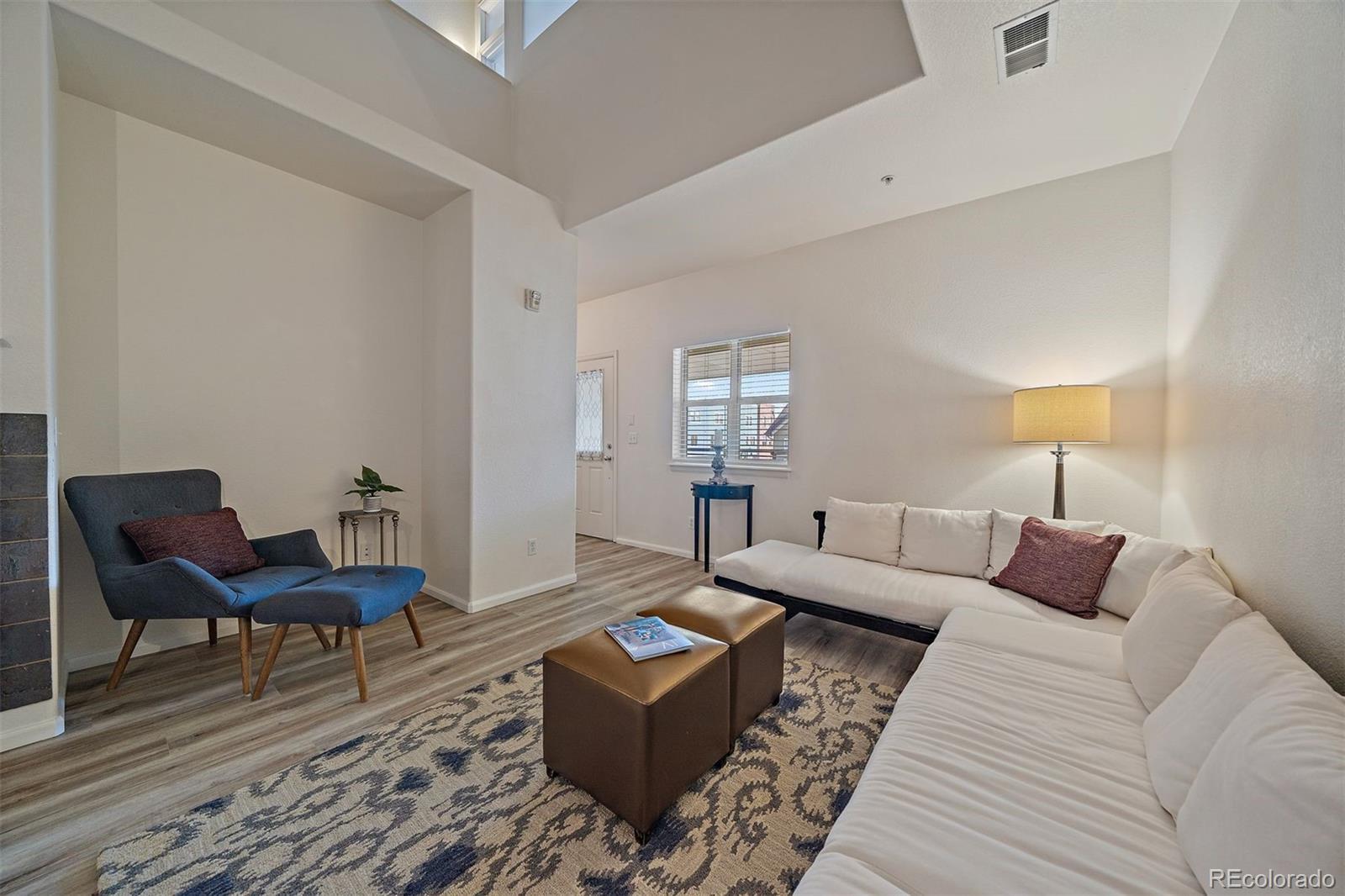Beautiful with open floorplan, vaulted ceilings allows for ample natural light, with a neutral palette the living area is spacious w/ a cozy gas fireplace. Brand New luxury vinyl plank flooring makes for a clean flow thru the living spaces and primary bedroom. The kitchen has quartz countertops & tile backsplash with separate entertaining space. The main level bedroom has high ceilings and allows for large bedroom sets. The full bath includes spacious vanity space and tub to soak and relax. The second bedroom upstairs has a large window, walk-in closet and could also be an office. Oversized garage with included cabinetry has finished walls, bike hooks, & storage closet as well as interior access to unit. Water heater and refrigerator are less than a few years old & all appliances included! HOA includes monthly water usage & maintains all exterior maintenance while offering a clubhouse, fitness center, hot tub and swimming pool. Prime location steps to Olde Town, breweries, dining, parks & light rail. easy access to Denver & I-70 Corridor. **This home qualifies for the community reinvestment act providing 1.75% of the loan amount (up to $7000 max) from Sunflower bank as a credit towards buyers closing costs for clients approved and using them for lending, pre-paids and discount points. Contact listing agent for more details.**