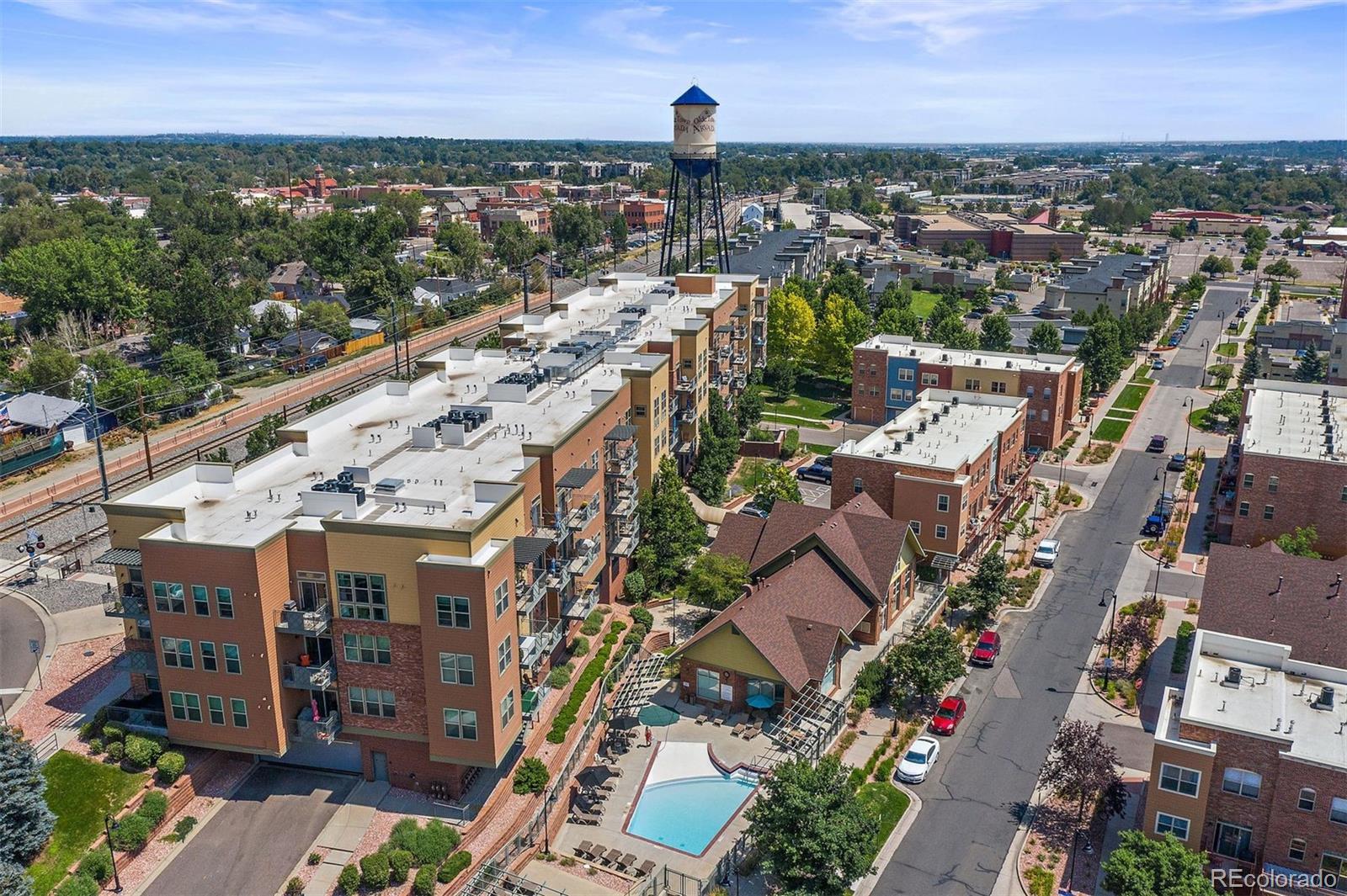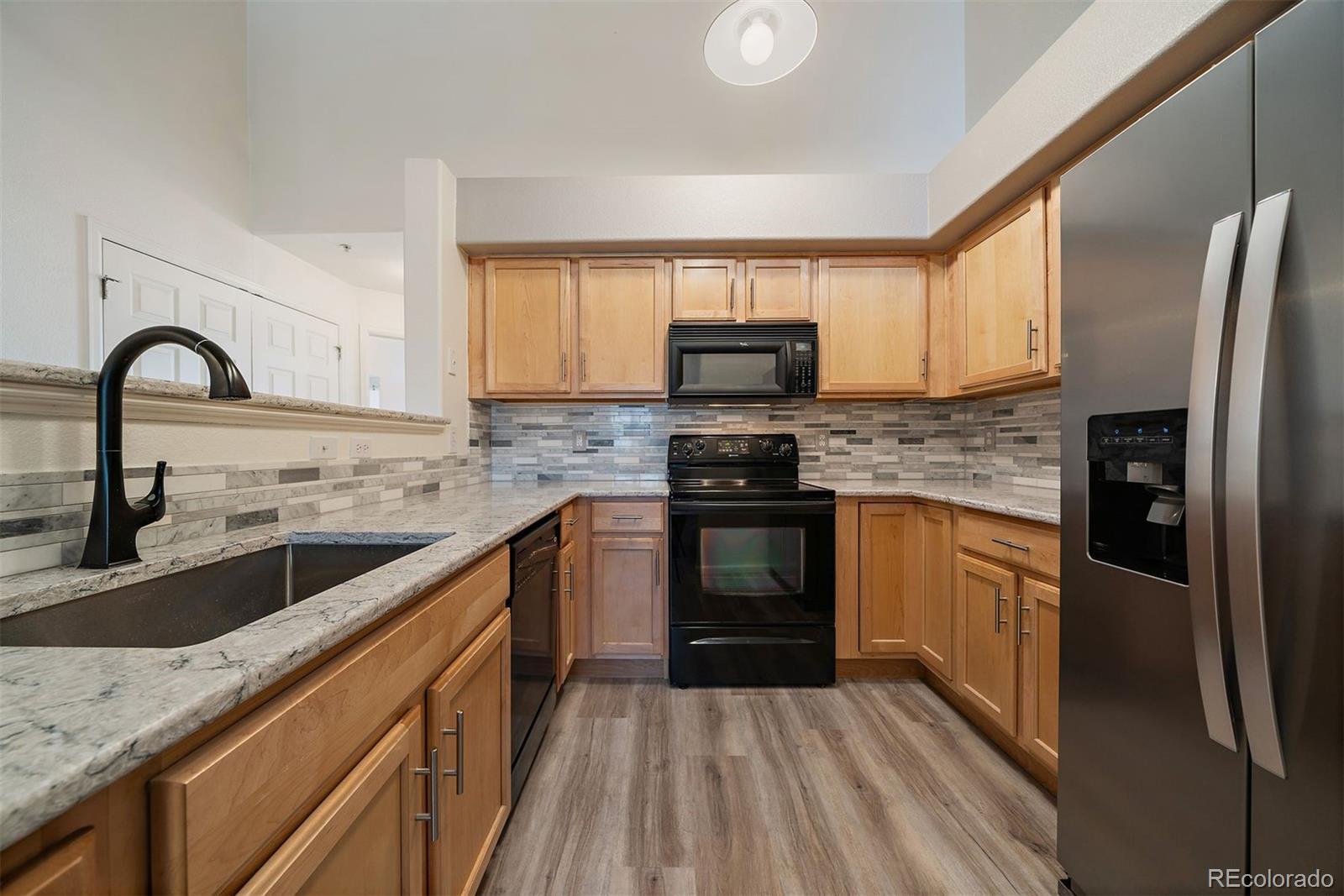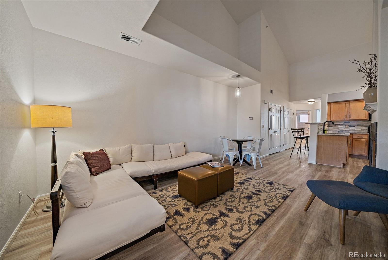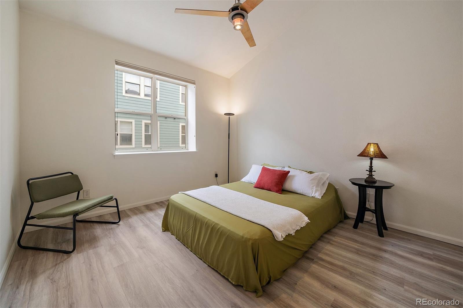 Beautiful with open floorplan, vaulted ceilings allows for ample natural light, with a neutral palette the living area is spacious w/ a cozy gas fireplace. Brand New luxury vinyl plank flooring makes for a clean flow thru the living spaces and primary bedroom. The kitchen has quartz countertops & tile backsplash with separate entertaining space. The main level bedroom has high ceilings and allows for large bedroom sets. The full bath includes spacious vanity space and tub to soak and relax. The second bedroom upstairs has a large window, walk-in closet and could also be an office. Oversized garage with included cabinetry has finished walls, bike hooks, & storage closet as well as interior access to unit. Water heater and refrigerator are less than a few years old & all appliances included! HOA includes monthly water usage & maintains all exterior maintenance while offering a clubhouse, fitness center, hot tub and swimming pool. Prime location steps to Olde Town, breweries, dining, parks & light rail. easy access to Denver & I-70 Corridor. **This home qualifies for the community reinvestment act providing 1.75% of the loan amount (up to $7000 max) from Sunflower bank as a credit towards buyers closing costs for clients approved and using them for lending, pre-paids and discount points. Contact listing agent for more details.**