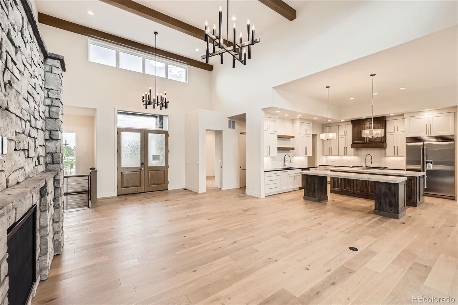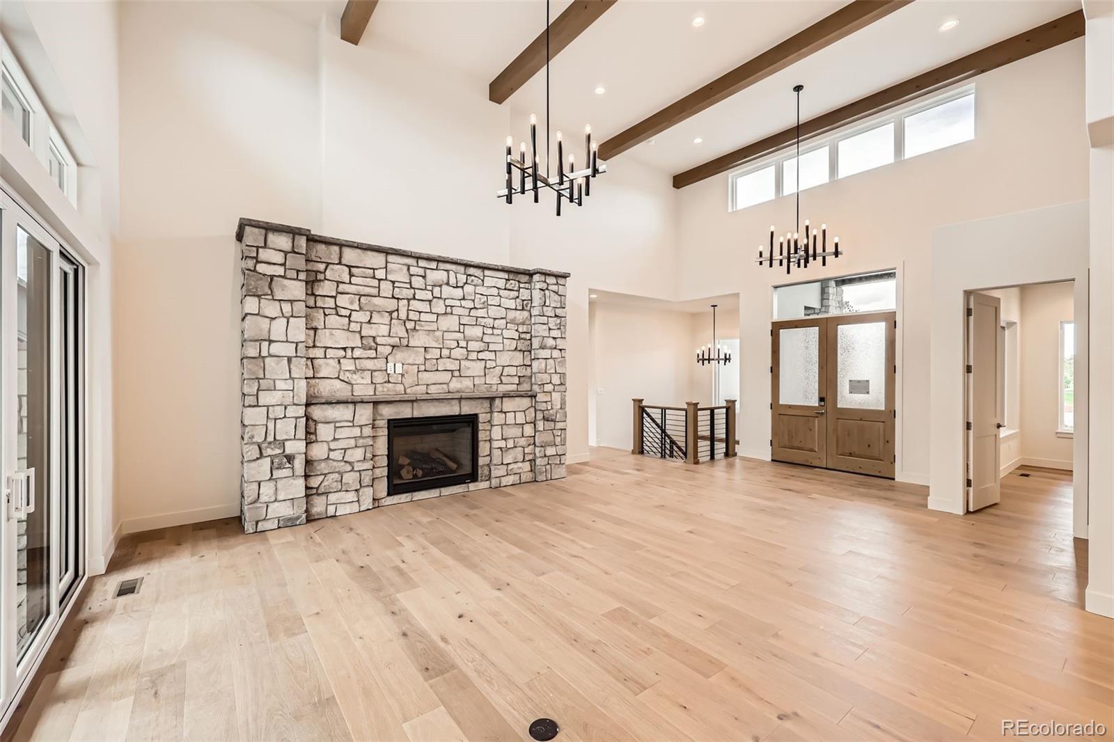 This exquisite Mountain Contemporary ranch-style home by renowned builder Gladstone Custom Homes is located in the prestigious Timbers at The Pinery subdivision in Parker, Colorado, offering a perfect blend of luxury, comfort, and stunning natural surroundings. The main level features two spacious bedrooms, including a serene primary suite designed for relaxation and privacy. The finished basement adds two additional bedrooms, a large recreation area complete with a cozy fireplace, an exercise room, and ample storage space with potential for future expansion, making it ideal for flexible living and entertaining. The home boasts custom, high-end finishes throughout, including designer appliances that enhance the modern kitchen’s functionality and style. The attention to detail is evident in every corner, from sleek cabinetry to premium fixtures, creating an elegant yet inviting atmosphere. Included in the purchase price is a full landscaping package, ensuring the outdoor spaces are as thoughtfully designed as the interiors, perfectly complementing the mountain contemporary aesthetic. Residents of Timbers at The Pinery enjoy optional access to the exceptional amenities of The Pinery Country Club and The Club at Pradera. These private clubs offer premier golf courses, tennis courts, swimming pools, fitness centers, and vibrant social calendars, providing a rich lifestyle experience. The Pinery Country Club recently completed a multi-million-dollar renovation, enhancing its clubhouse, dining, and recreational facilities to foster a warm, social environment for members and their families. Set amidst breathtaking mountain views and tranquil open spaces, this home provides a unique opportunity to live in one of Douglas County’s most sought-after communities. With its seamless combination of rustic charm and contemporary elegance, plus access to world-class amenities, this Mountain Contemporary ranch home in Timbers at The Pinery represents the pinnacle of Colorado living.