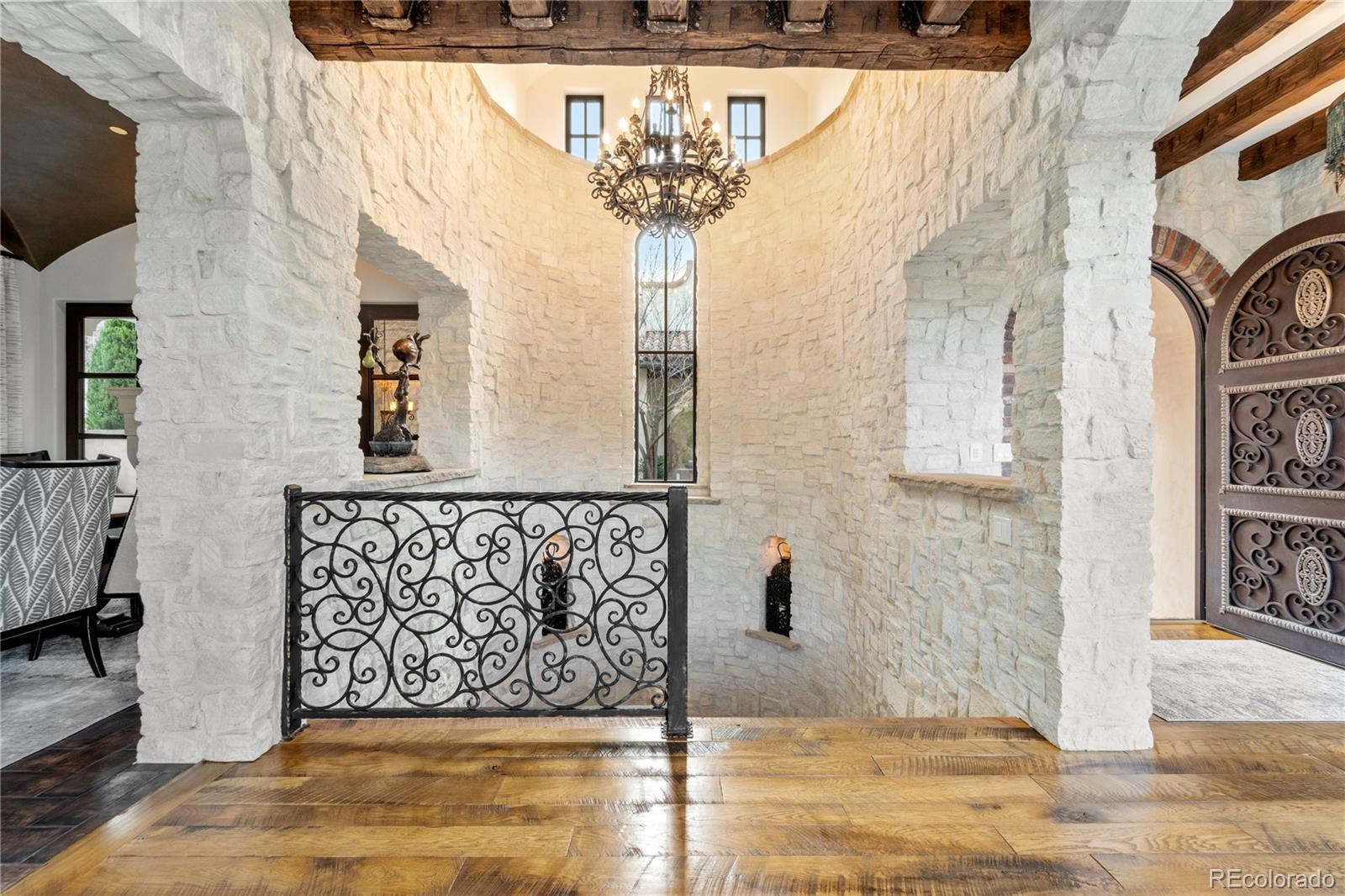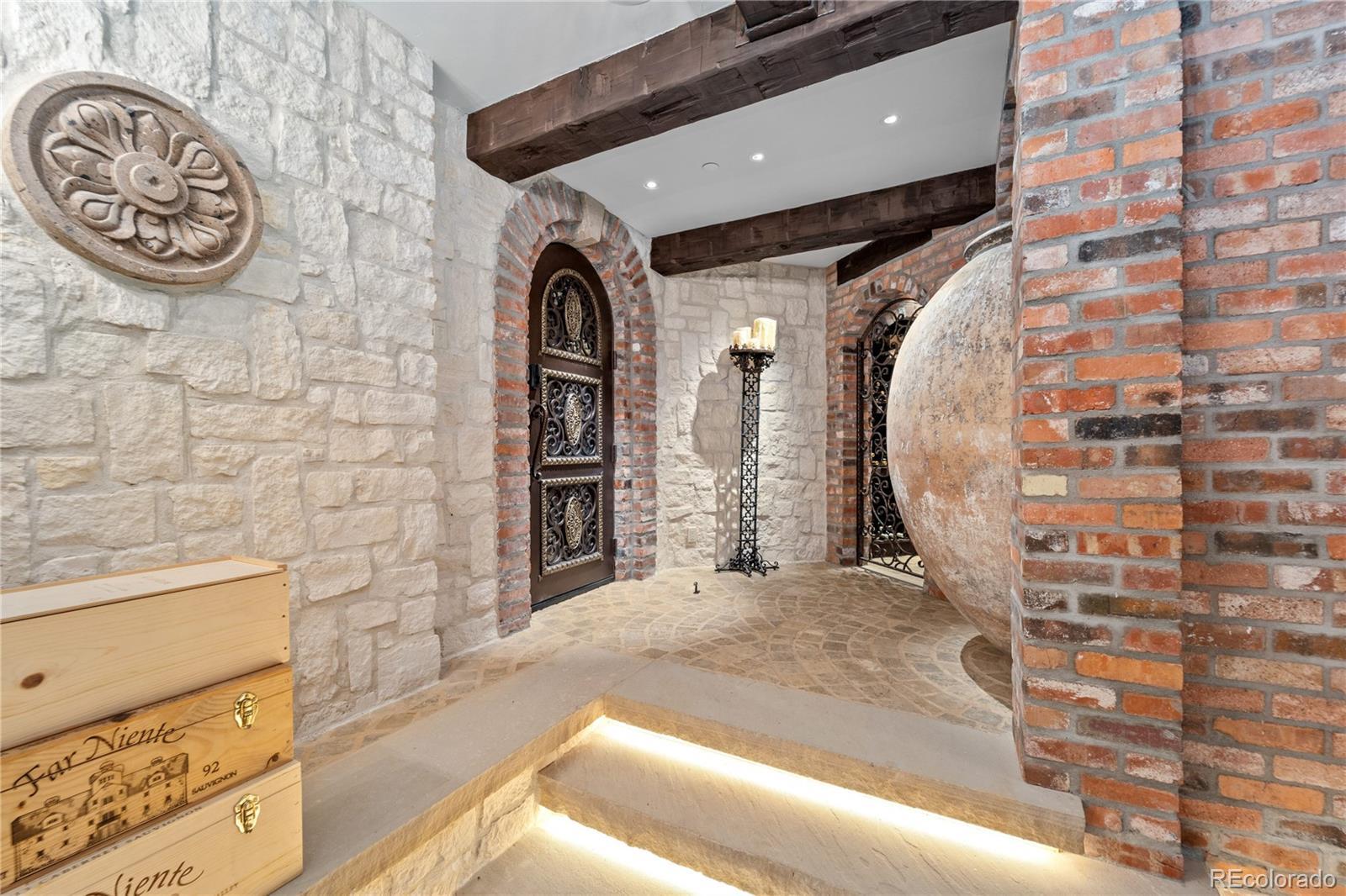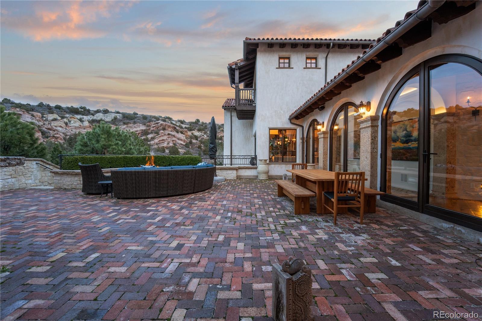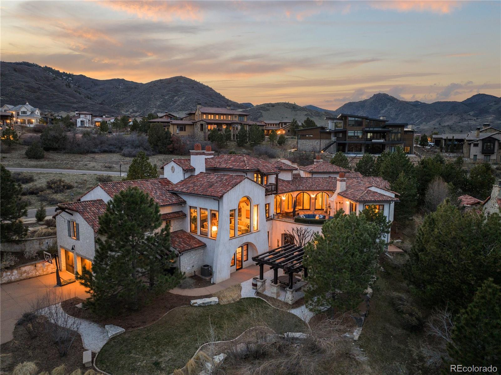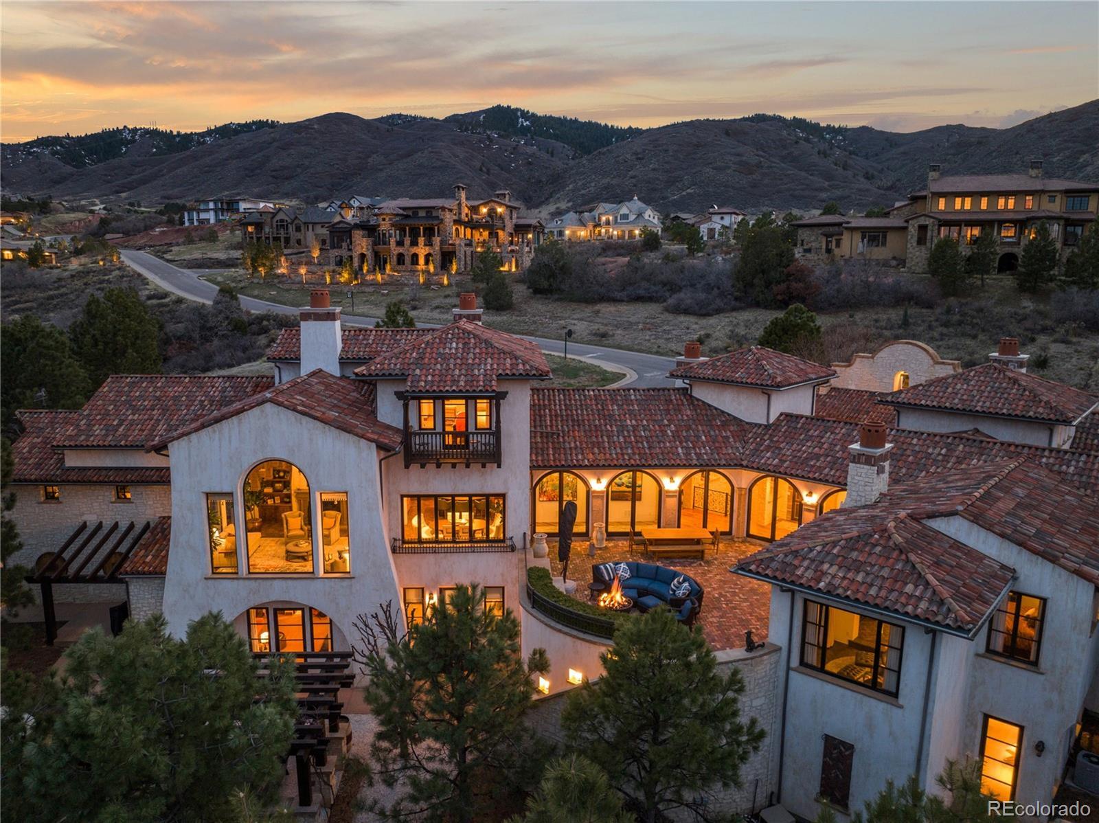 A Spanish Mediterranean masterpiece awaits within the exclusive gates of The Ravenna Country Club, where authentic lime plaster architecture meets Colorado's dramatic red rock landscape. This award-winning custom estate, "Vinero en el Cañón del Río," commands over 10,000 square feet of sophisticated living space featuring museum-quality craftsmanship and premium imported finishes. An enclosed courtyard reveals a stunning patio with Naples-imported wood-fired oven and panoramic Dakota Hogback vistas. The crown jewel wine cave, meticulously crafted with temperature control and custom racking, earned Project of the Year recognition. Four luxurious bedroom suites plus attached casita, multiple entertainment spaces, and full pub-style bar create an unparalleled sanctuary within this premier private club community offering championship golf and world-class amenities.