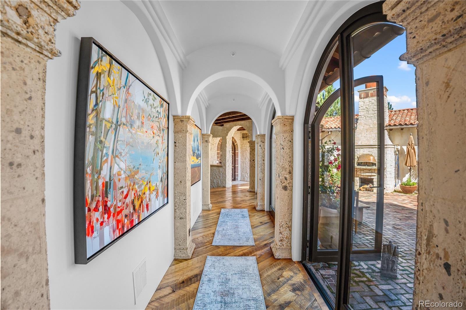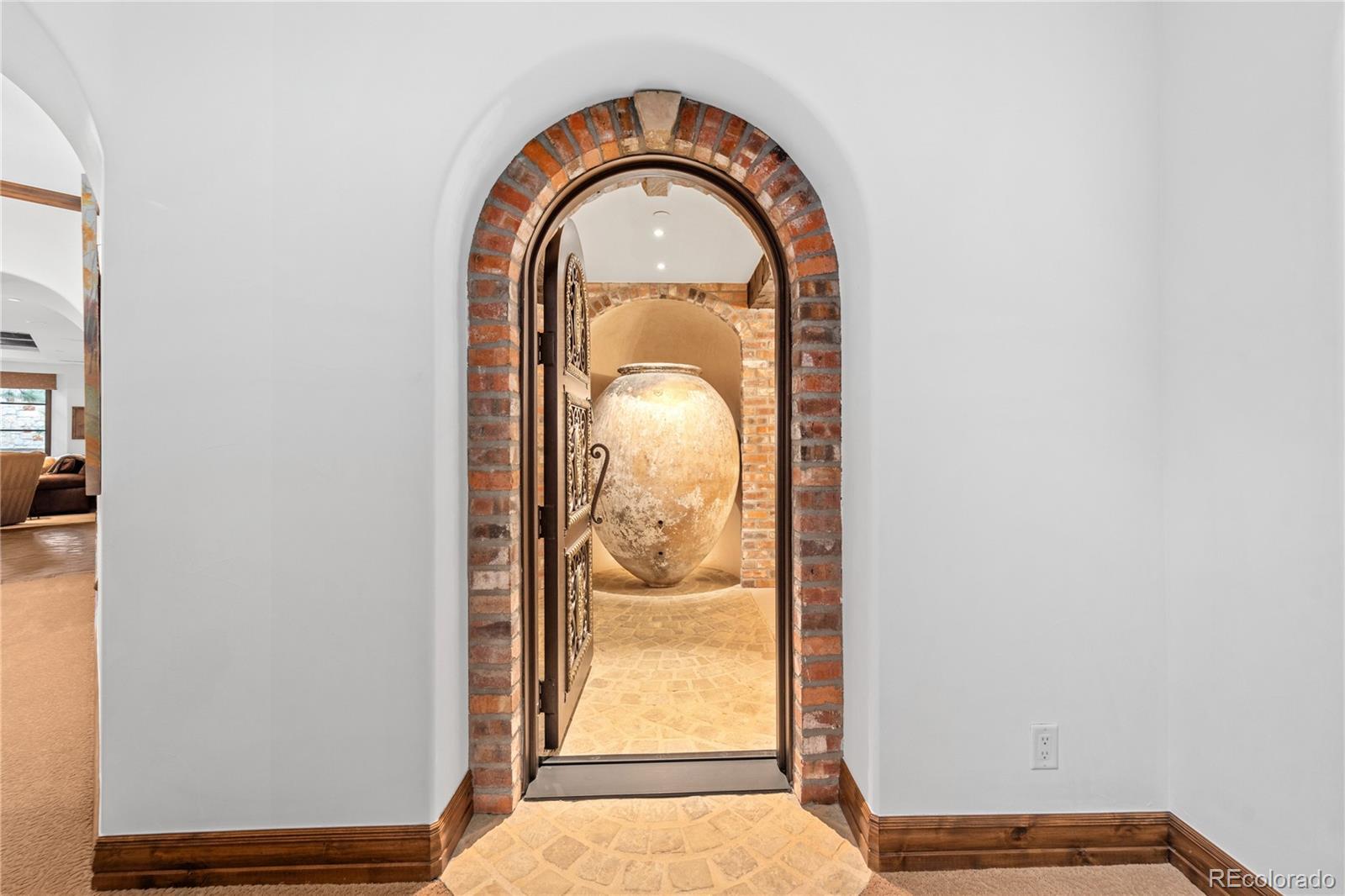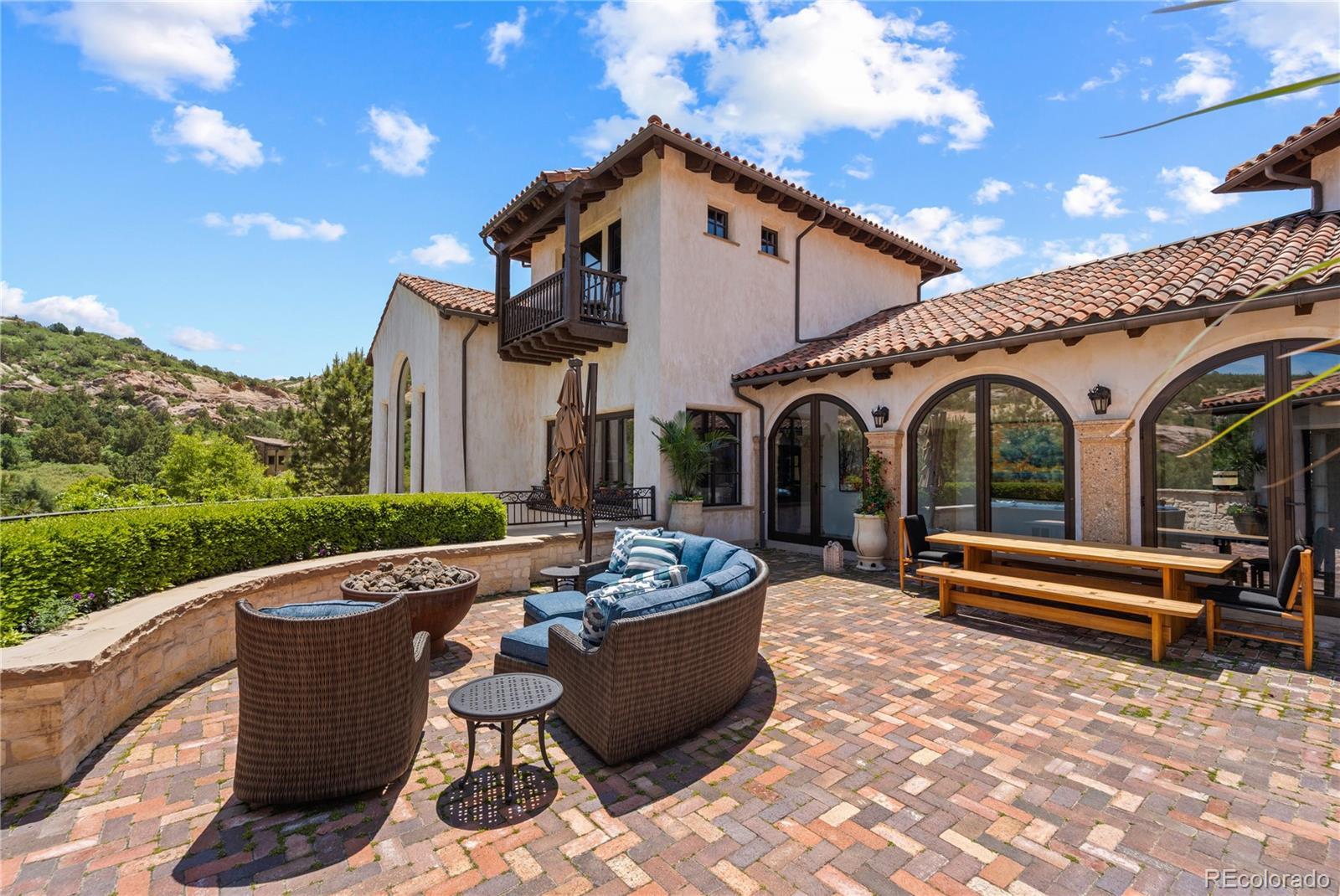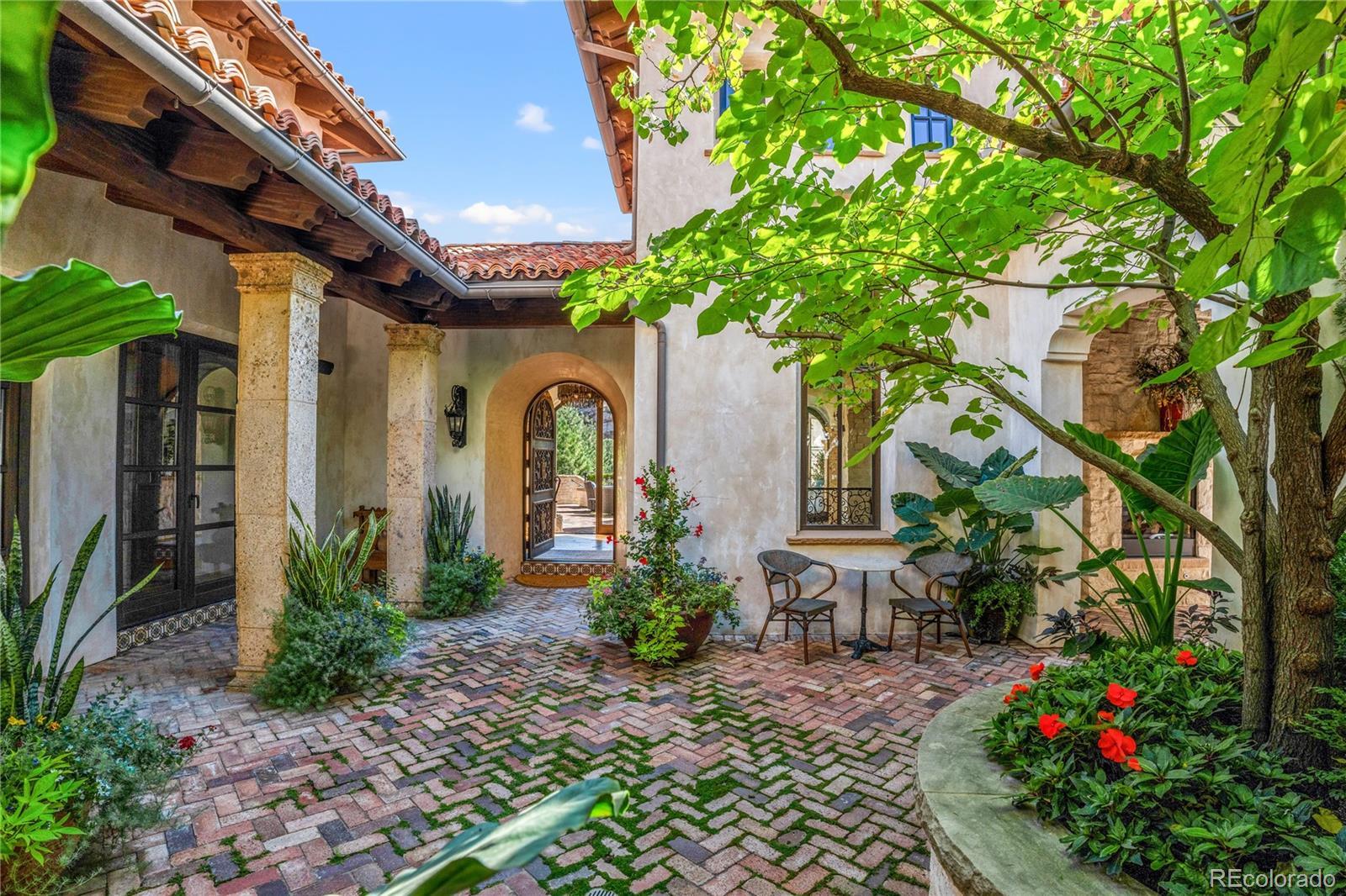 A Spanish Mediterranean masterpiece awaits within the exclusive gates of The Ravenna Country Club, where authentic lime plaster architecture meets Colorado's dramatic red rock landscape. This award-winning custom estate, "Vinero en el Cañón del Río," commands over 10,000 square feet of sophisticated living space featuring museum-quality craftsmanship and premium imported finishes. An enclosed courtyard reveals a stunning patio with Naples-imported wood-fired oven and panoramic Dakota Hogback vistas. The crown jewel wine cave, meticulously crafted with temperature control and custom racking, earned Project of the Year recognition. Four luxurious bedroom suites plus attached casita, multiple entertainment spaces, and full pub-style bar create an unparalleled sanctuary within this premier private club community offering championship golf and world-class amenities.