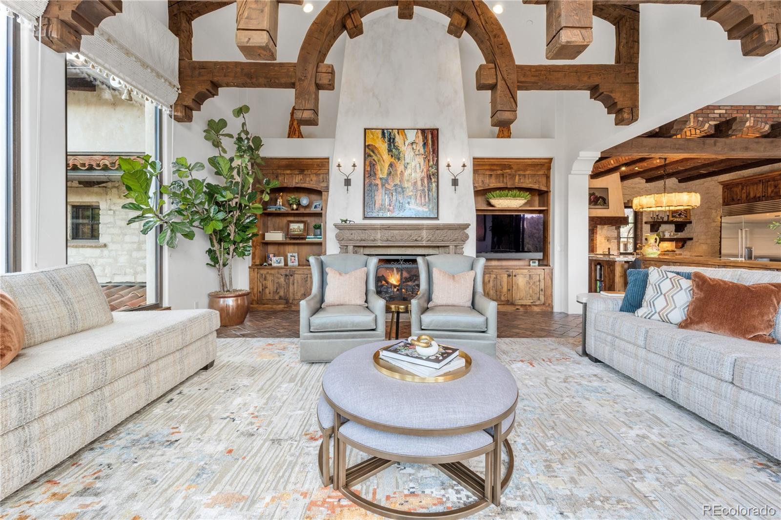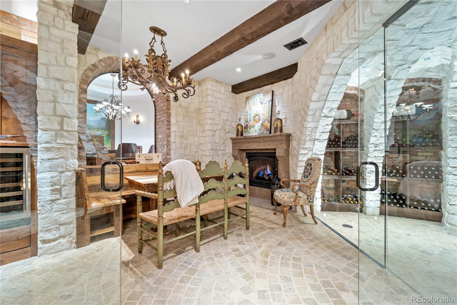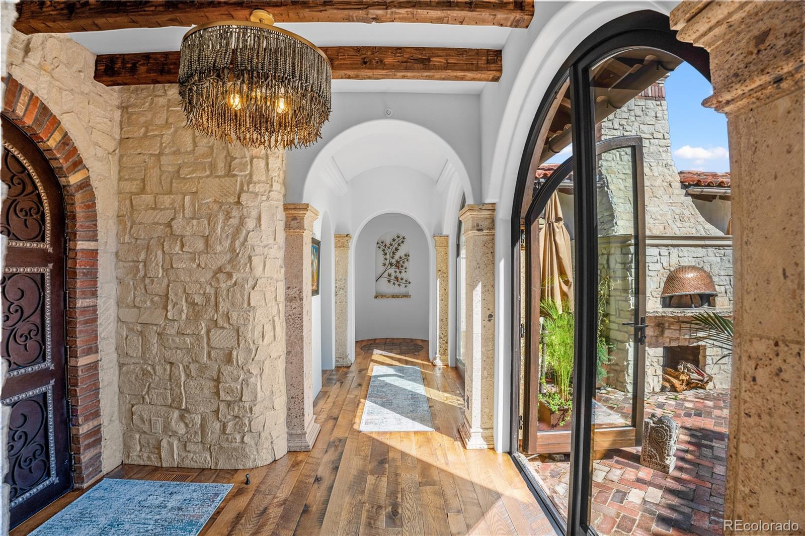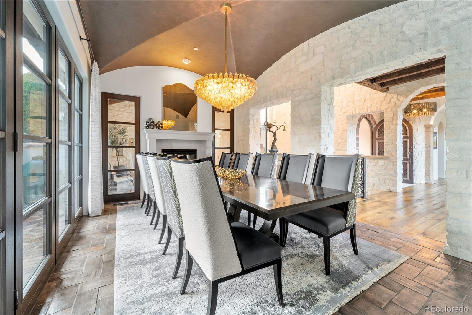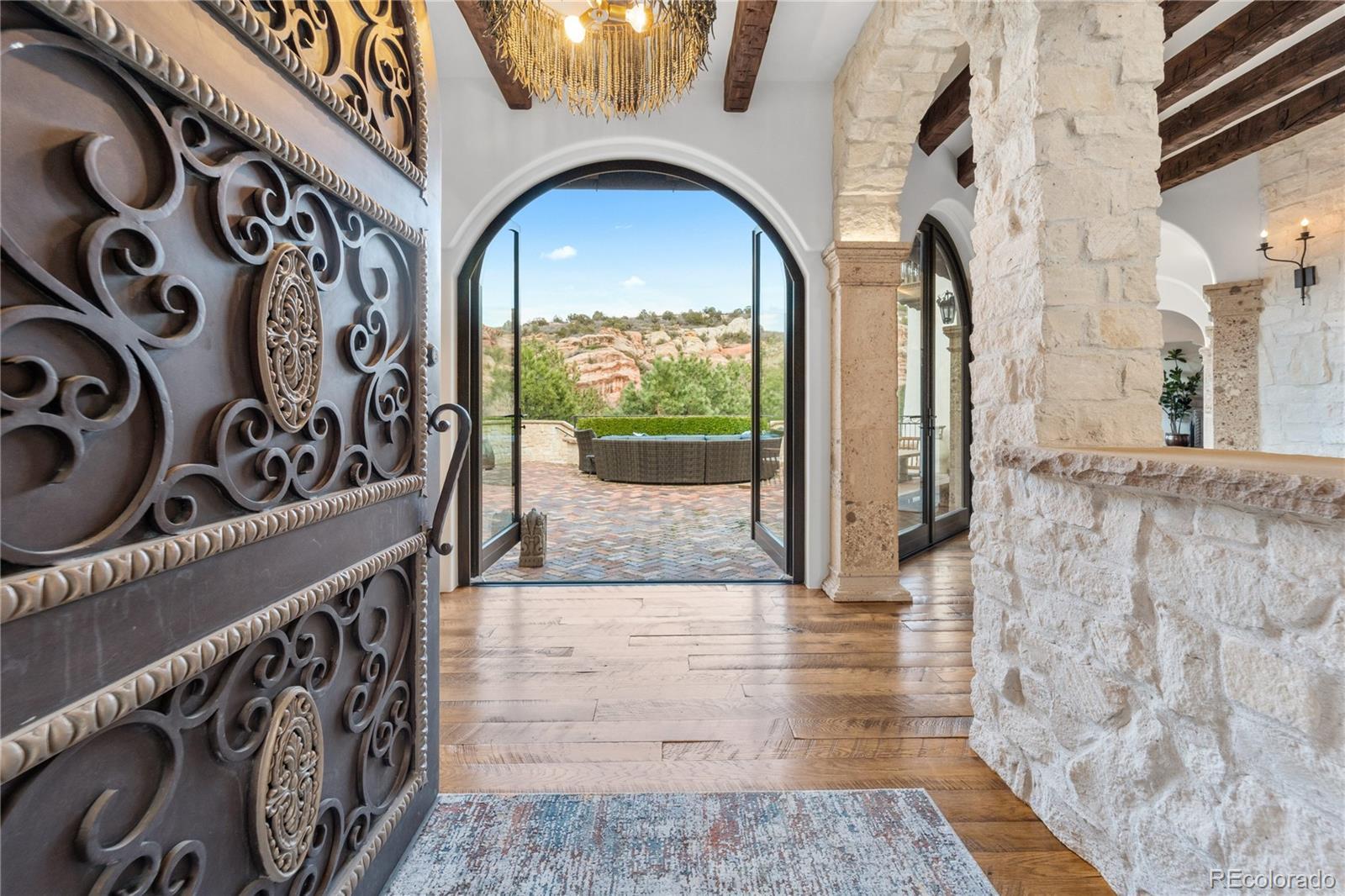 A Spanish Mediterranean masterpiece awaits within the exclusive gates of The Ravenna Country Club, where authentic lime plaster architecture meets Colorado's dramatic red rock landscape. This award-winning custom estate, "Vinero en el Cañón del Río," commands over 10,000 square feet of sophisticated living space featuring museum-quality craftsmanship and premium imported finishes. An enclosed courtyard reveals a stunning patio with Naples-imported wood-fired oven and panoramic Dakota Hogback vistas. The crown jewel wine cave, meticulously crafted with temperature control and custom racking, earned Project of the Year recognition. Four luxurious bedroom suites plus attached casita, multiple entertainment spaces, and full pub-style bar create an unparalleled sanctuary within this premier private club community offering championship golf and world-class amenities.