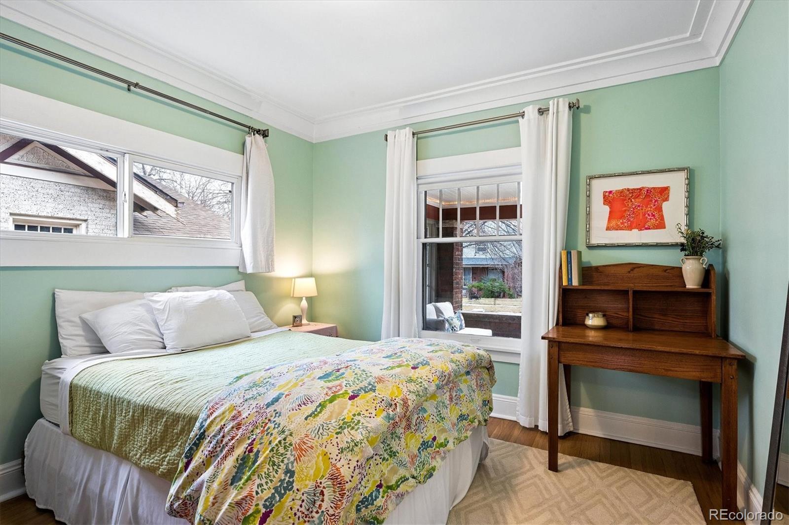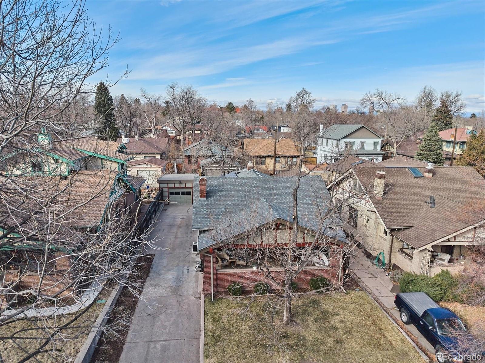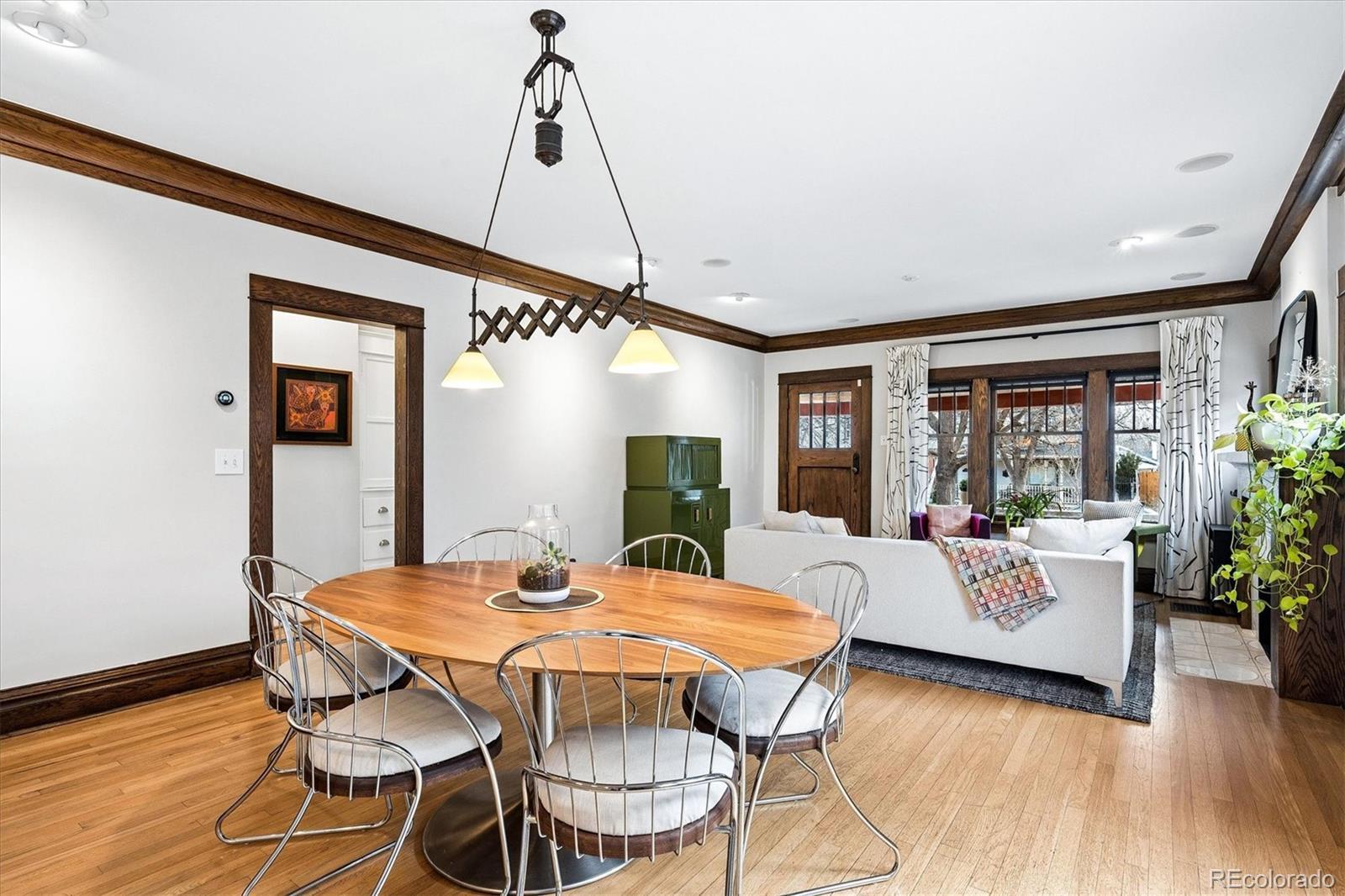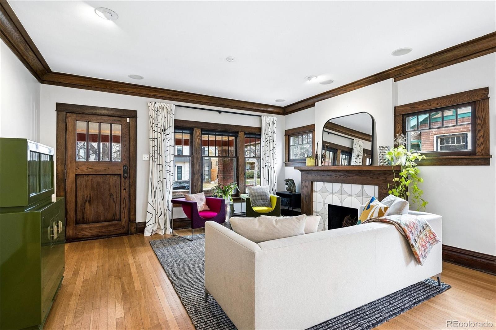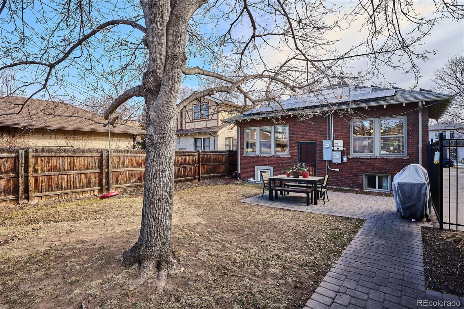 Located in the heart of Congress Park, this beautiful bungalow blends classic character with modern charm. Flooded with natural light, this home showcases original crown molding and hardwood floors throughout. The spacious main floor offers a large kitchen open to the dining room and cozy living room with a fireplace. The main floor also boasts three bedrooms and a remodeled bathroom, with a fourth bedroom and an en suite bathroom in the basement. The layout of this home offers plenty of versatility. A second living space in the basement is great for a media room or playroom. Sitting on a generous lot, the professionally irrigated landscape features mature, region-appropriate perennials and a productive fruit garden—designed for beauty, sustainability, and low maintenance. Eco-conscious upgrades include fully owned solar panels and a NACS/Tesla EV charger, which significantly reduce utility costs. A front-accessible driveway leads to a garage for convenient parking and storage. Enjoy indoor-outdoor living with a large covered front porch, a flagstone patio, and a fully fenced yard, ideal for entertaining or relaxing on a fabulous Colorado evening! Property Highlights: Four Bedrooms, two bathrooms, spacious floor plan, tons of original charm with modern updates, large laundry room with utility sink, and private backyard. This home is just blocks from Congress Park/Pool, the Denver Botanic Gardens, Cherry Creek North, the shops on 9th and CO, along with the historic theaters along Colfax Ave. Easy access to downtown Denver!