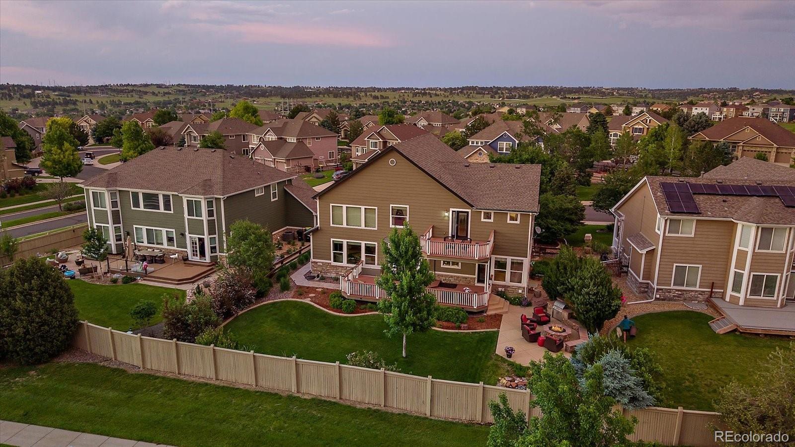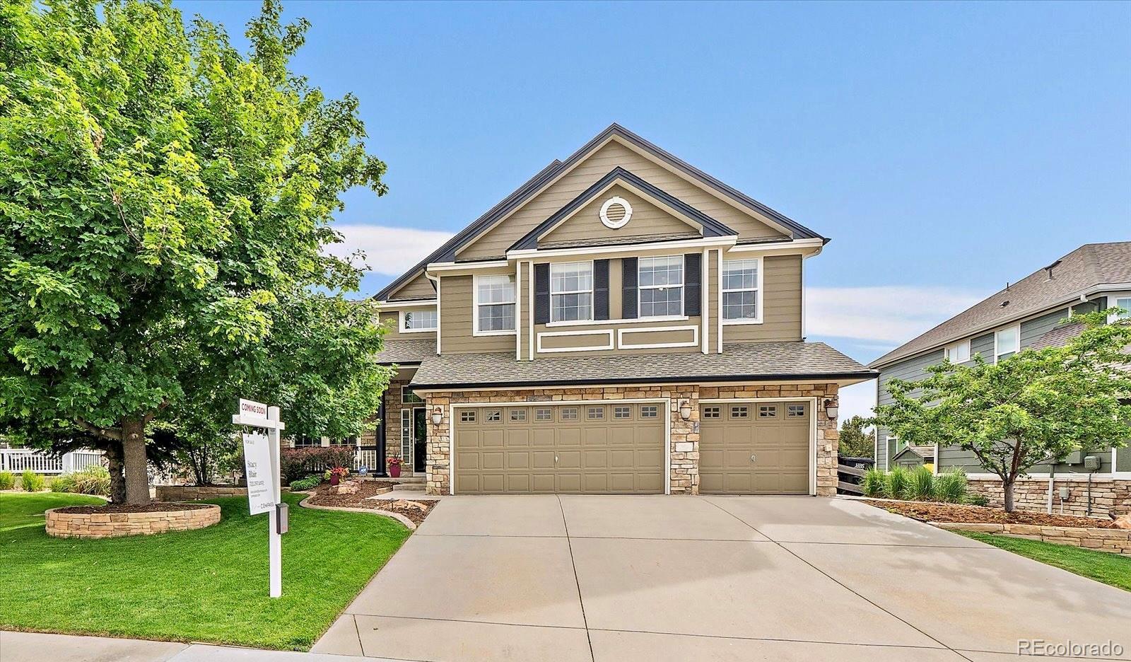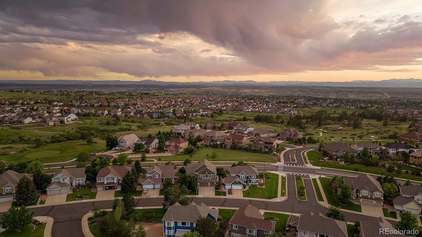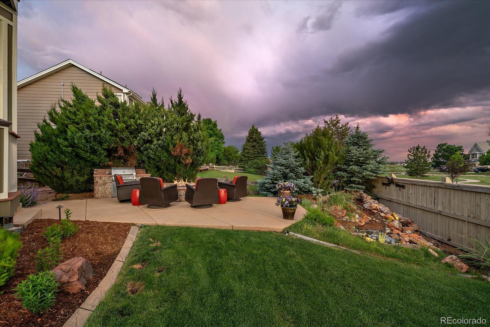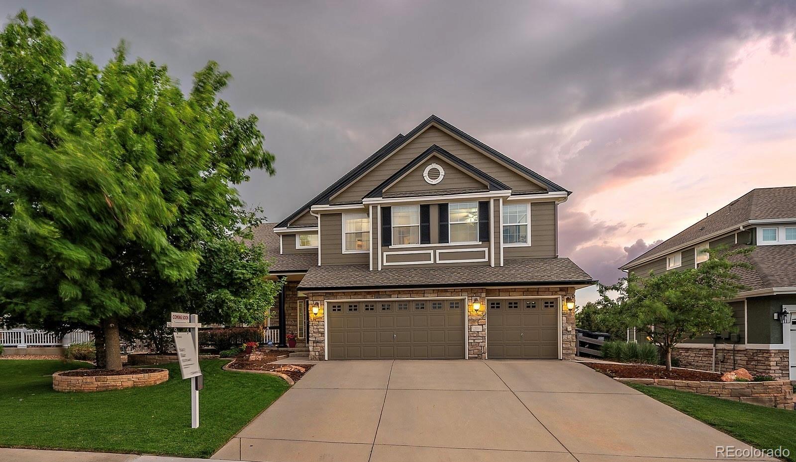 Perfectly perched to take in stunning mountain views, this four-bedroom, four-bathroom gem is the entertainer’s dream you’ve been waiting for. From the moment you enter, you're greeted with dramatic vaulted ceilings, an elegant curved staircase, and sophisticated finishes throughout. The open-concept main level boasts a spacious formal living and dining area, a large private office with hardwood floors, a sunroom and an effortless flow into the heart of the home—an updated kitchen featuring sleek stainless-steel appliances, a double oven, gas range in the island, and granite countertops. Gather in the spacious family room with a cozy gas fireplace and large windows that flood the space with natural light. Just outside, your Colorado outdoor lifestyle awaits—a massive custom deck with breathtaking mountain views, concrete patio featuring an outdoor grill and fire pit connected to natural gas, outdoor audio system, a calming water feature and meticulously manicured landscaping that truly sets the scene. Upstairs, your generously sized primary retreat includes a spa-inspired ensuite with dual vanities, jetted tub, and a large walk-in shower—plus private deck to soak in those gorgeous Colorado sunsets. Three additional spacious bedrooms with large closets including one with an ensuite bathroom, and another full bath with dual vanities round out the upper level. The 1800+ sq ft unfinished basement is ready for your finishes. Recent updates include a Class 4 roof installed in 2023, the exterior of the home and deck painted in 2022, multiple new windows, and the majority of the upper level was just painted in 2025. This home blends elegance, comfort, and a truly unbeatable setting. Come see it before someone else calls it theirs.