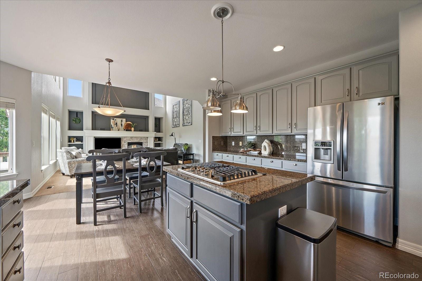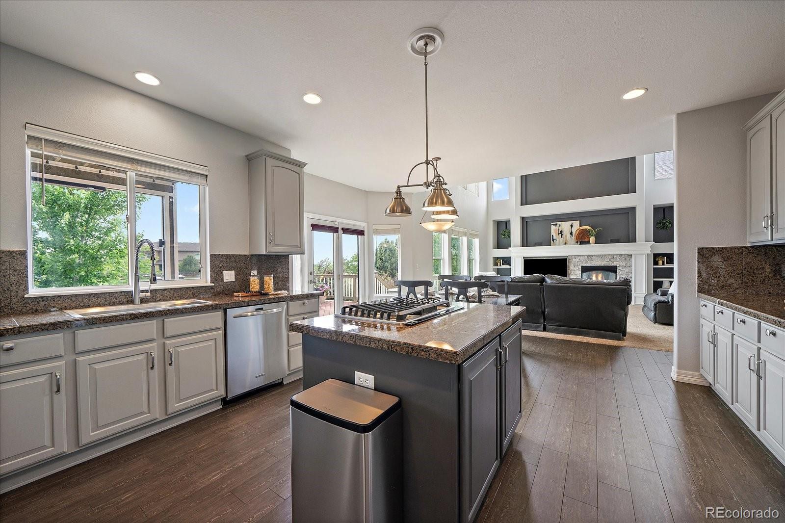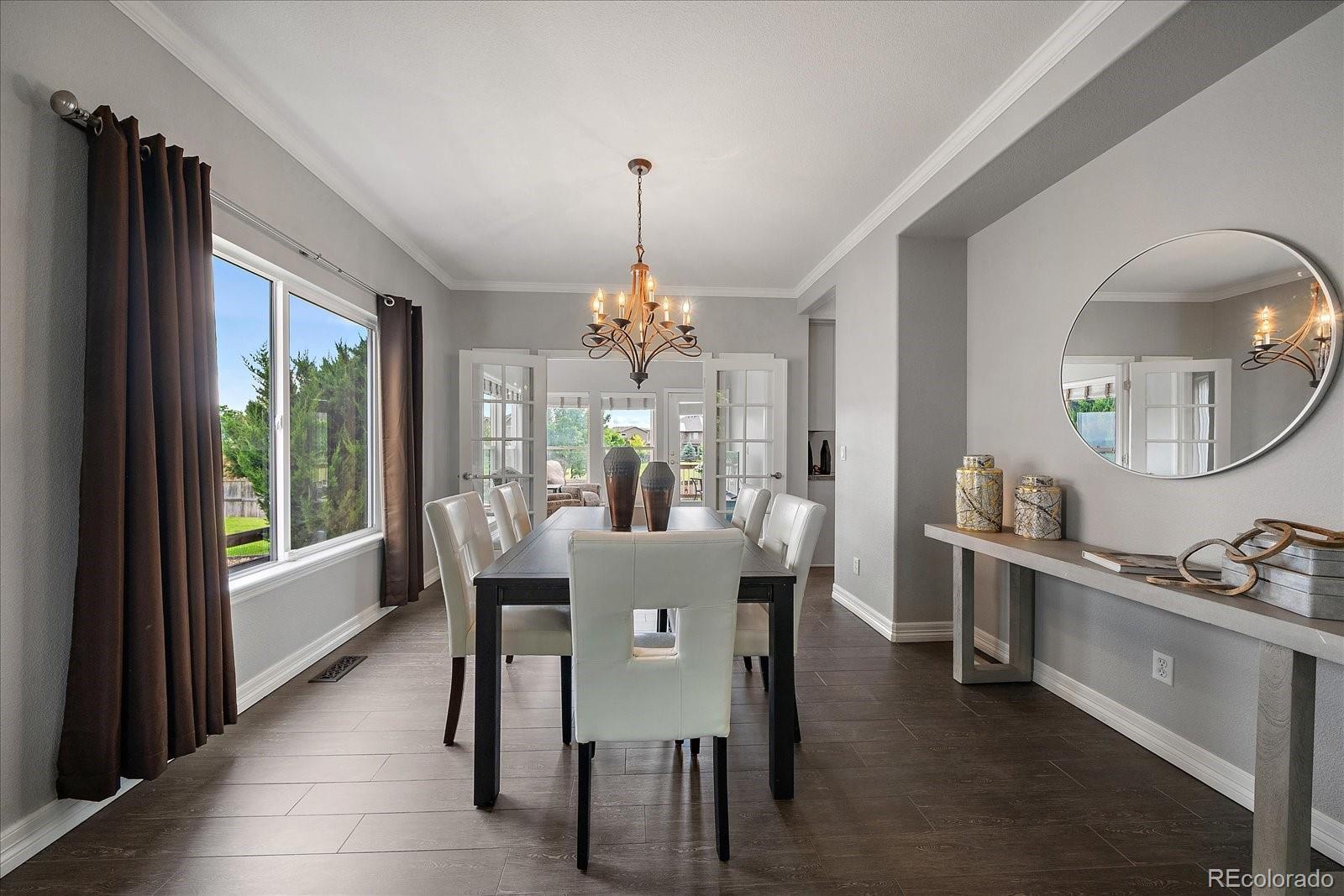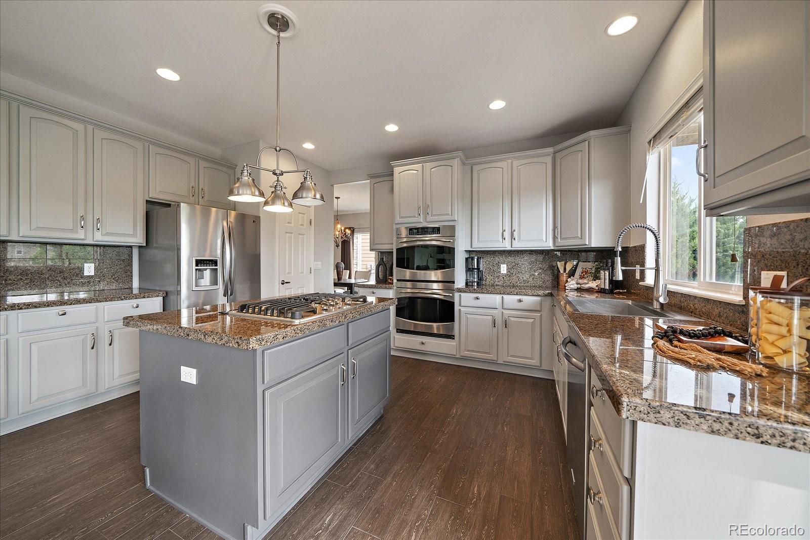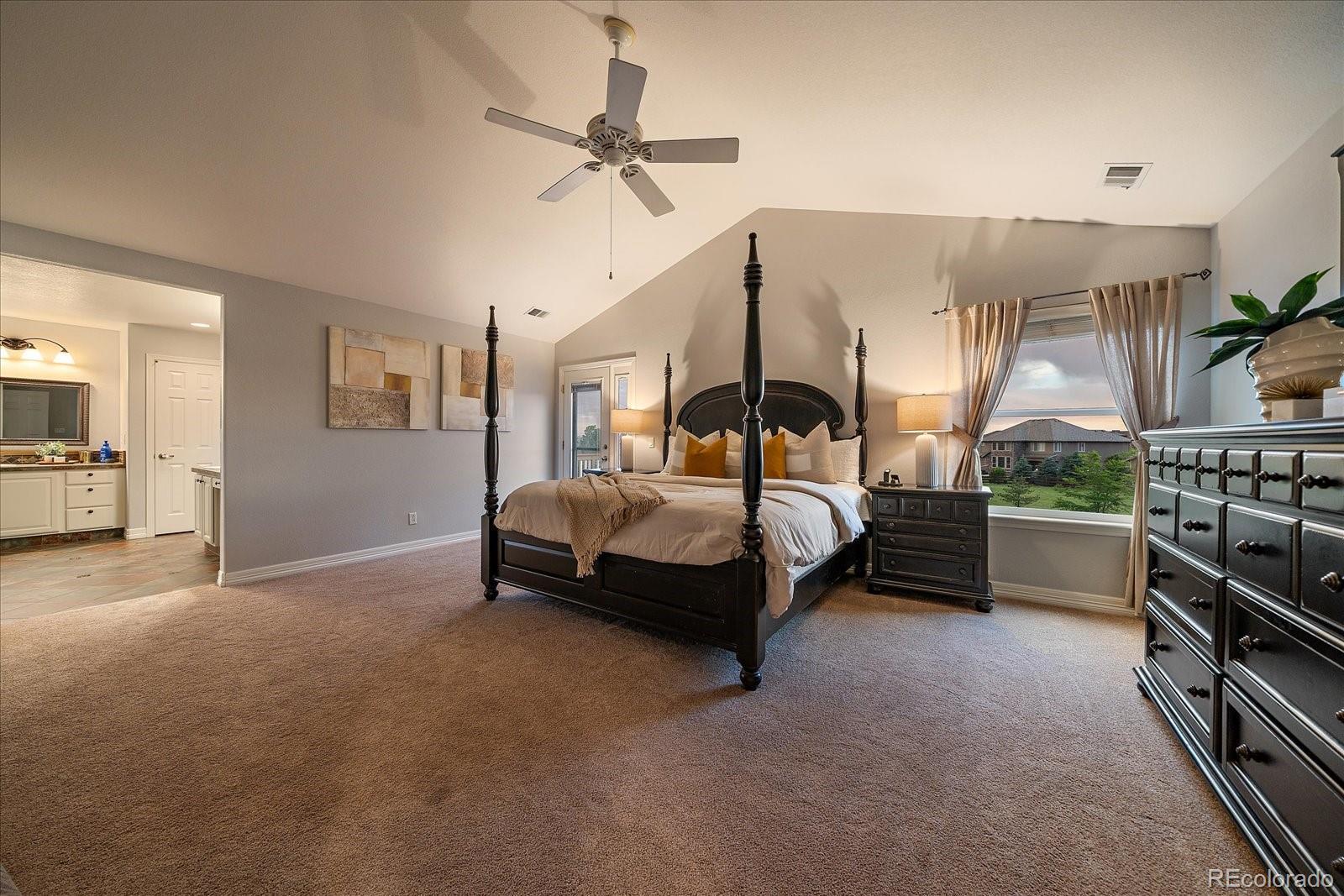 Perfectly perched to take in stunning mountain views, this four-bedroom, four-bathroom gem is the entertainer’s dream you’ve been waiting for. From the moment you enter, you're greeted with dramatic vaulted ceilings, an elegant curved staircase, and sophisticated finishes throughout. The open-concept main level boasts a spacious formal living and dining area, a large private office with hardwood floors, a sunroom and an effortless flow into the heart of the home—an updated kitchen featuring sleek stainless-steel appliances, a double oven, gas range in the island, and granite countertops. Gather in the spacious family room with a cozy gas fireplace and large windows that flood the space with natural light. Just outside, your Colorado outdoor lifestyle awaits—a massive custom deck with breathtaking mountain views, concrete patio featuring an outdoor grill and fire pit connected to natural gas, outdoor audio system, a calming water feature and meticulously manicured landscaping that truly sets the scene. Upstairs, your generously sized primary retreat includes a spa-inspired ensuite with dual vanities, jetted tub, and a large walk-in shower—plus private deck to soak in those gorgeous Colorado sunsets. Three additional spacious bedrooms with large closets including one with an ensuite bathroom, and another full bath with dual vanities round out the upper level. The 1800+ sq ft unfinished basement is ready for your finishes. Recent updates include a Class 4 roof installed in 2023, the exterior of the home and deck painted in 2022, multiple new windows, and the majority of the upper level was just painted in 2025. This home blends elegance, comfort, and a truly unbeatable setting. Come see it before someone else calls it theirs.