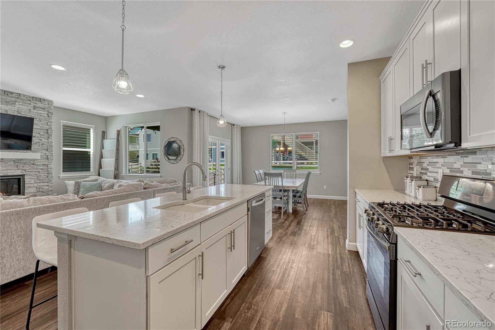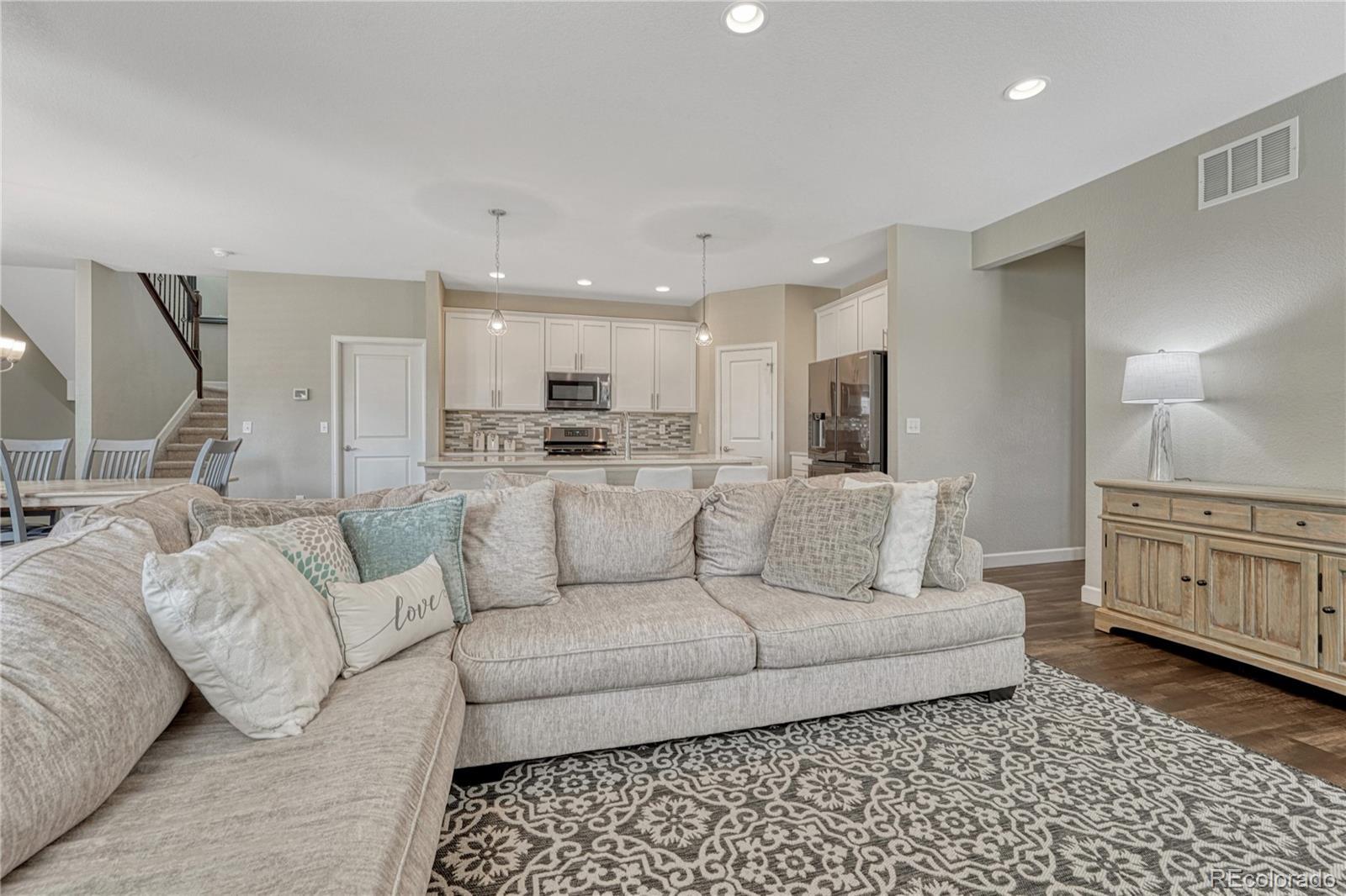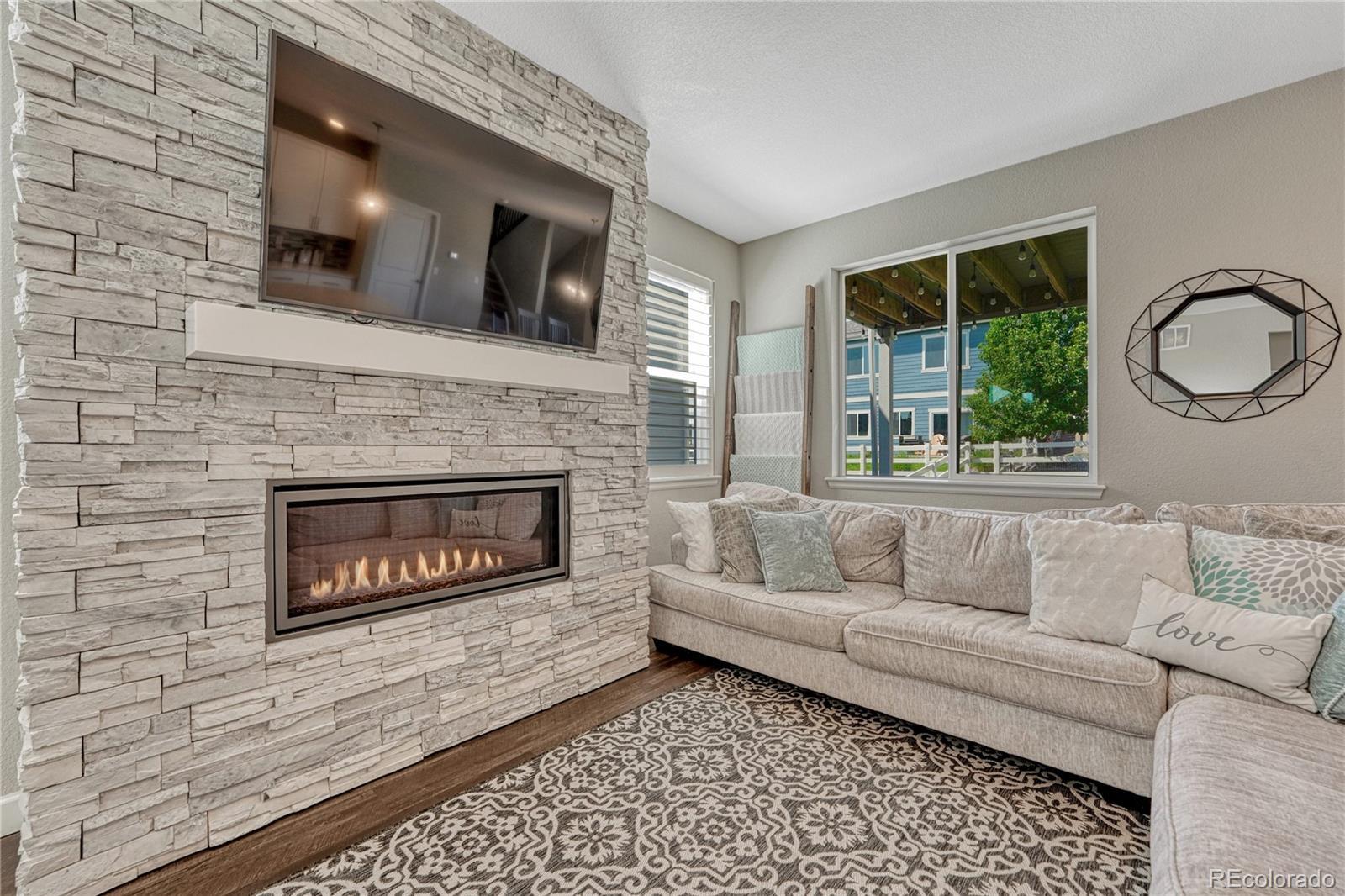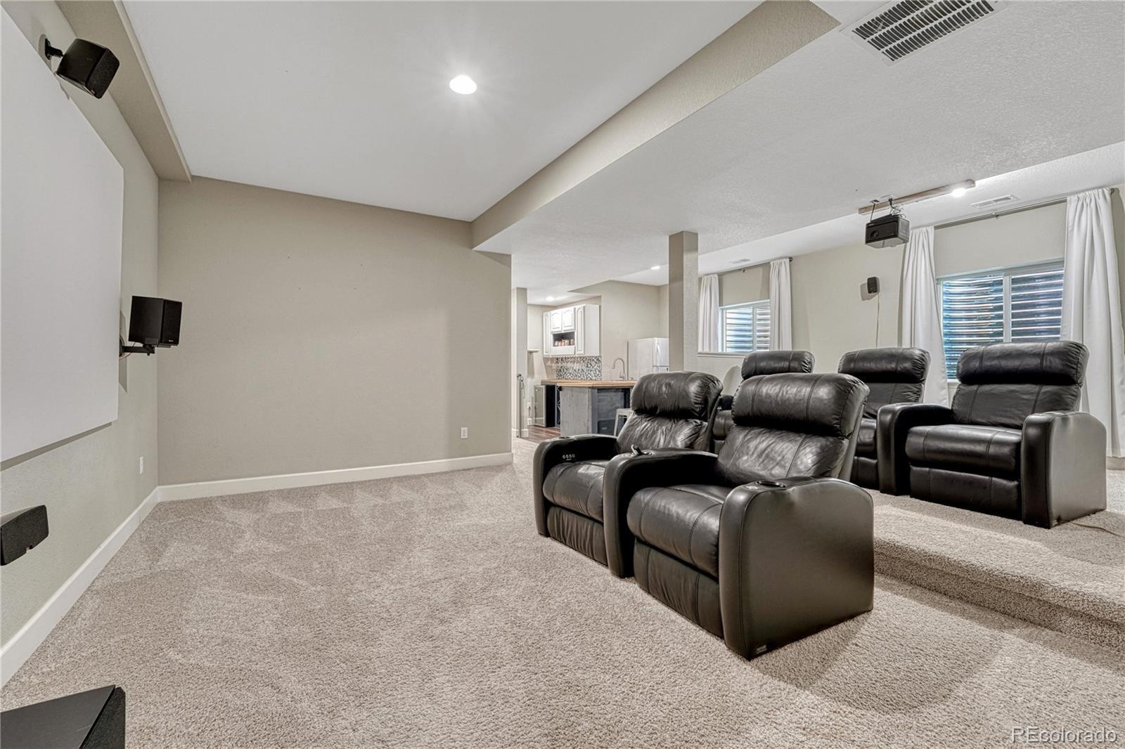 Newer Built Home, Many Upgrades. Floor to Ceiling Stone Fireplace Surround, 8" LVP Flooring, Plantation Shutters, Upgraded Cabinets/Lighting/Design Package, Decorative Curtain/Rods, Media Room, & Wet Bar. Main level is open and includes an impressive kitchen with slab quartz, beautiful back splash, large island, room for chairs, pendant lighting, eating area, office, covered patio w/lighting, 2 mud rooms, & deep garage for truck parking. Upper level has 3 bedrooms, 2 fully upgraded bathrooms, loft, and laundry room. Primary bedroom/bathroom are spacious with a private walk-out covered deck. Finished basement includes the media room, wet bar with 2 mini frigs, bedroom, and bathroom. Other features include Wi-Fi security front door lock & doorbell, whole home attic fan, auto sprinkler system front/back, split rail fencing w/wire mesh, radon mitigation system. Enjoy access to a number of Crystal Valley amenities including a pool, fitness center, clubhouse, hiking & biking trails, parks, playgrounds, and dog park. Close proximity to I-25, DTC, downtown Castle Rock, stores, hospital, several schools, golf courses, Outlets at Castle Rock, Promenade, The MAC, & more.