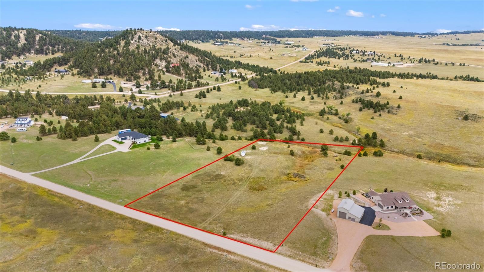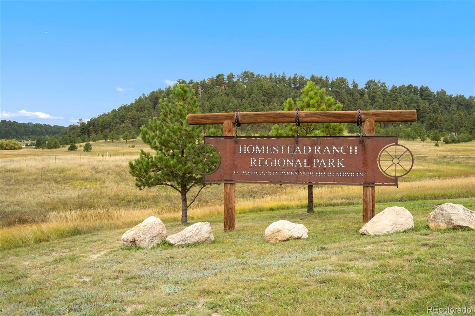 Imagine your custom home or barndominium upon this stunning 5.07 acre HORSE PROPERTY with fabulous views of the majestic rock bluffs* plenty of ungrazed pasture on this flat "horse friendly" lot *Lightly treed on the back of the lot with mature Ponderosa pines *El Paso County maintained gravel roads * No HOA to pay but CCR's in place (see supplements) * Only "stick built" homes allowed w/minimum 1500 sf * Barn/Barndominium and shop buildings ARE allowed * New homes currently in the area * Just a short walk or ride to Homestead Ranch Regional Park with miles of trails, pond, fishing, soccer field, play area for kids and covered pergola social areas for parties and gatherings or just a picnic (SEE YouTube Video link in virtual tours section) * Close to Antler Creek 18 hole golf course and clubhouse* Shopping, banks, gyms, restaurants only 12-15 minutes drive away* Easy commute to Colorado Springs, Falcon, Elizabeth, Castle Rock and Denver* A great place to start your new adventure! * Build-ability index is maximized with: underground electric already to the lot line * Well permit * Recent well digging quotes available * 2020 Soils report * Recent Septic report indicates "no engineered system required" * (NOTE: These reports are offered as a guide to Buyer in assessing potential building costs on this property. Buyers should NOT solely rely on reports provided and is responsible to conduct their own research and conduct their own inspections to verify ALL information about this property) *