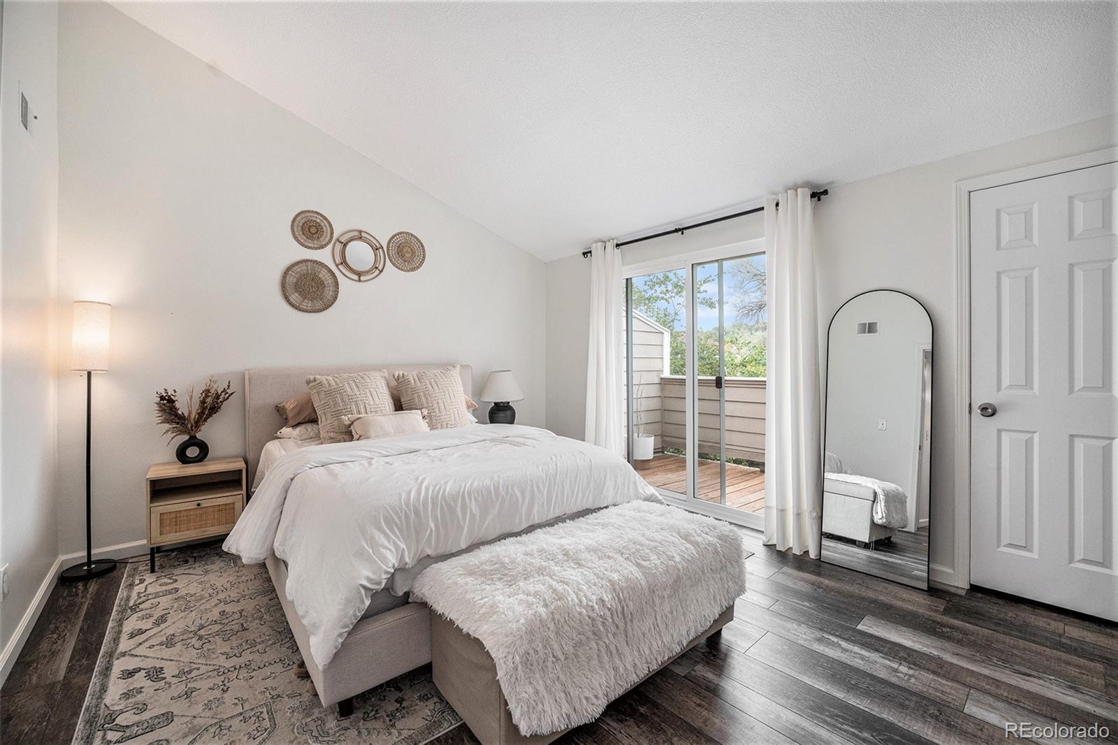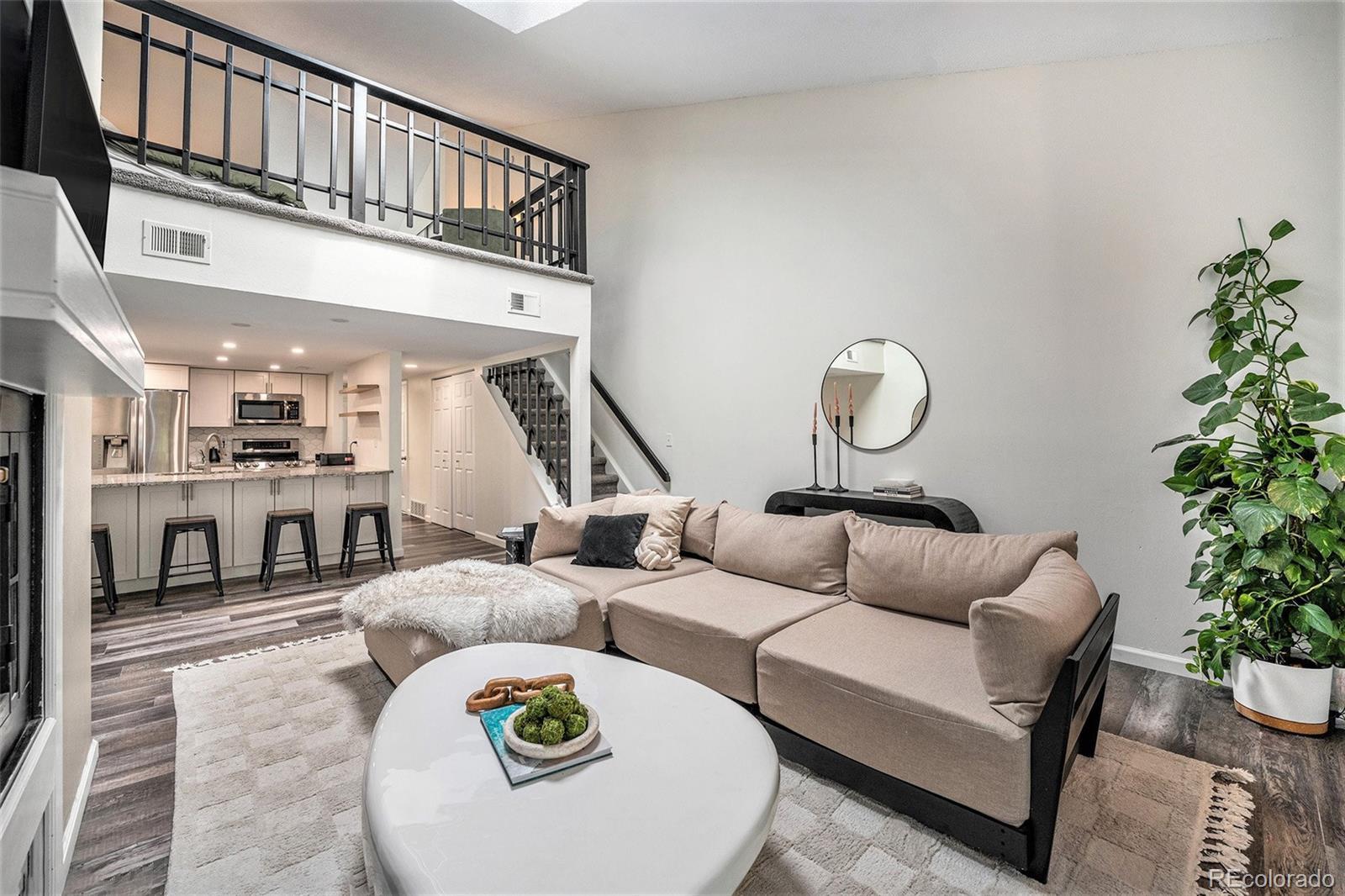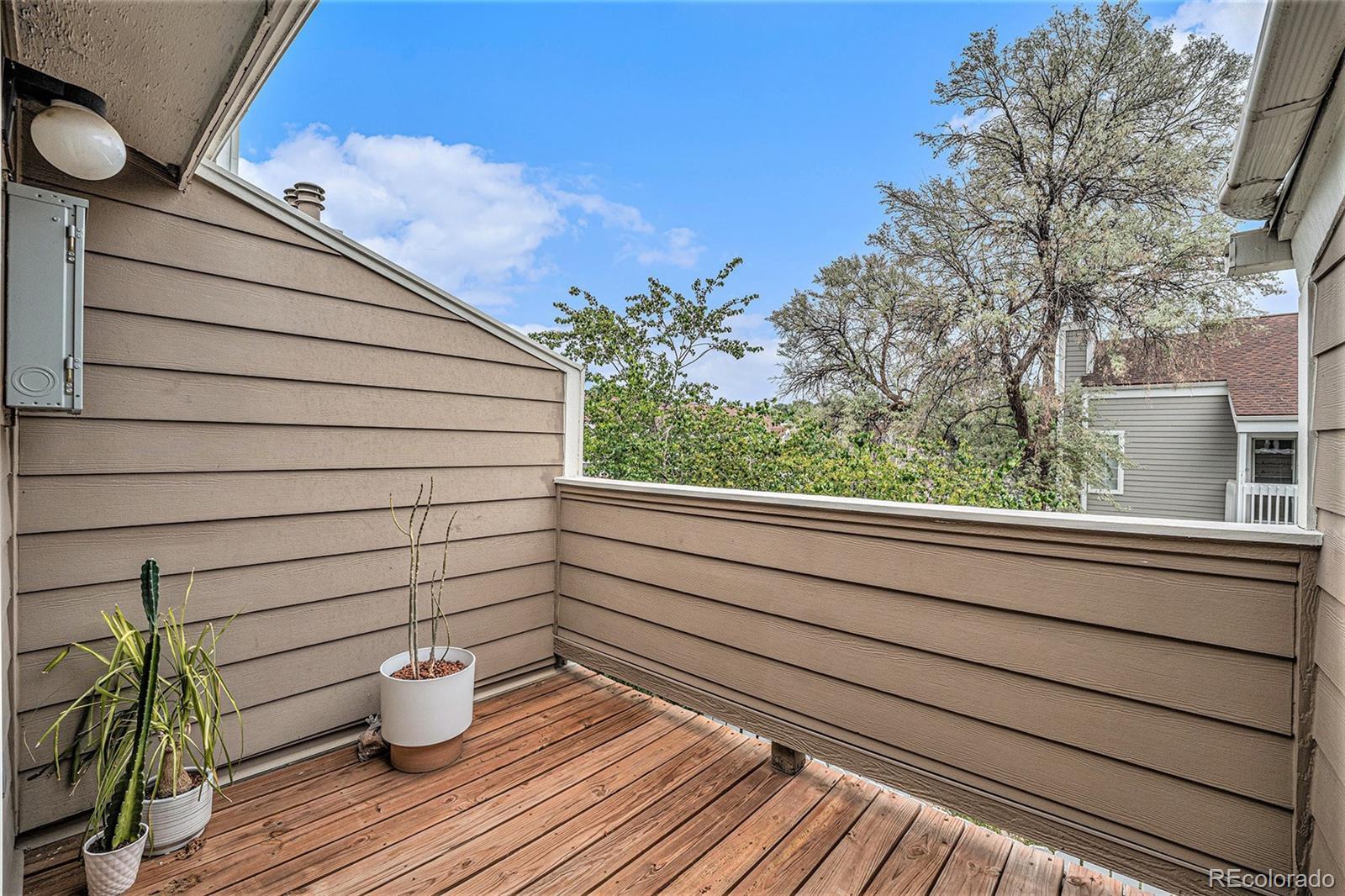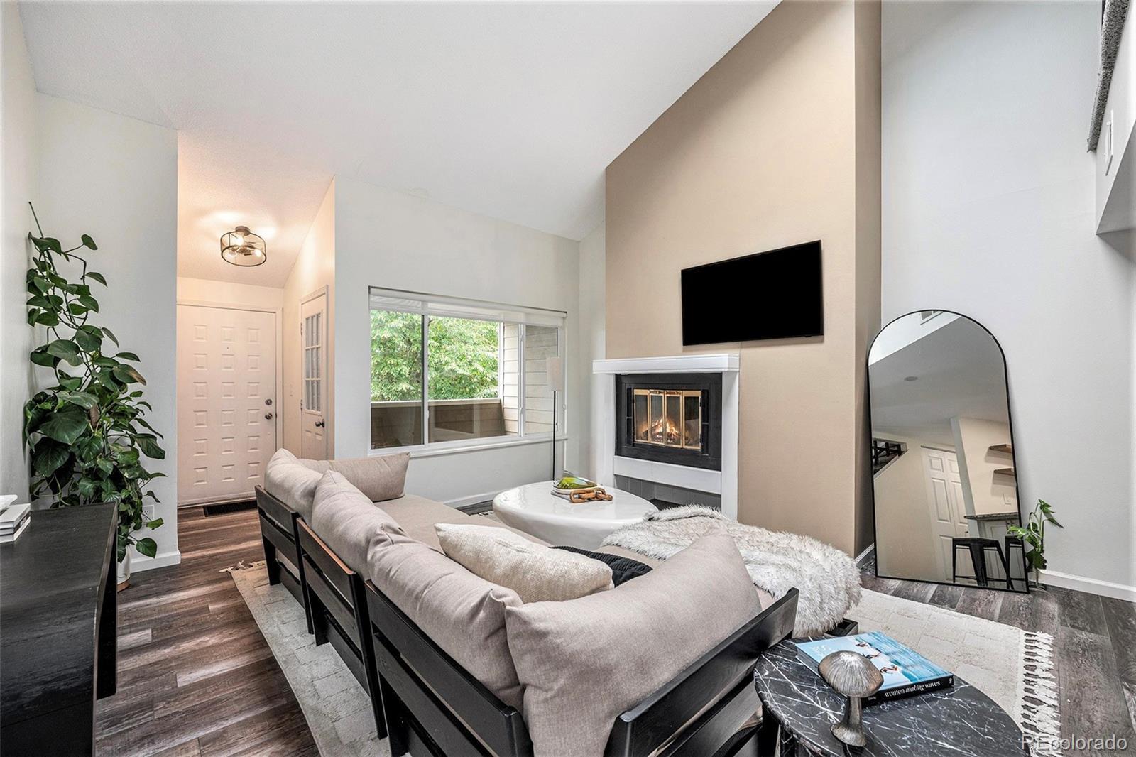 Welcome to this charming home that perfectly combines comfort, style, and convenience. Only 10 minutes from some of the best restaurants and shopping Cherry Creek. This home offers a perfect blend of charm, natural beauty, and an unbeatable location! Inside, a skylight fills the home with natural light, while a wood-burning fireplace creates the coziest winter evenings. Beautiful flooring flows throughout, enhancing the warm and inviting atmosphere. The thoughtfully designed kitchen features stainless steel appliances, beautiful granite countertops, and tons of counter space. Open to the living room, it’s ideal for both everyday living and entertaining. The layout includes two balconies — front and back — perfect for enjoying the outdoors. The primary bedroom is filled with natural light and includes a spacious walk-in closet. The second upstairs bedroom also has its own private bathroom with stylish tile, offering comfort and privacy for guests or family members. Thoughtful lighting in the hallway and kitchen adds a modern touch. From the moment you step inside, you are overwhelmed with comfort and style. Located just 10 minutes from the gym, 15 minutes from Downtown Denver, and close to I-25, this home offers unmatched convenience. The HOA community pool, nearby walking trails along Cherry Creek, and an additional trail just a block away make it ideal for outdoor enthusiasts. Tucked in a quiet neighborhood surrounded by trees and greenery, it’s the perfect place to feel at home!
