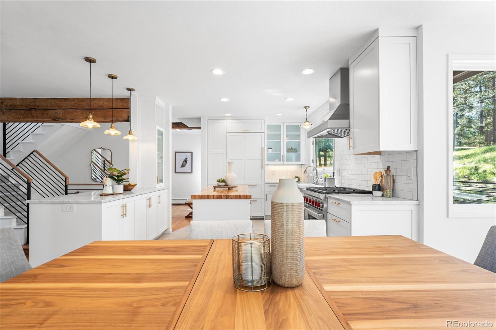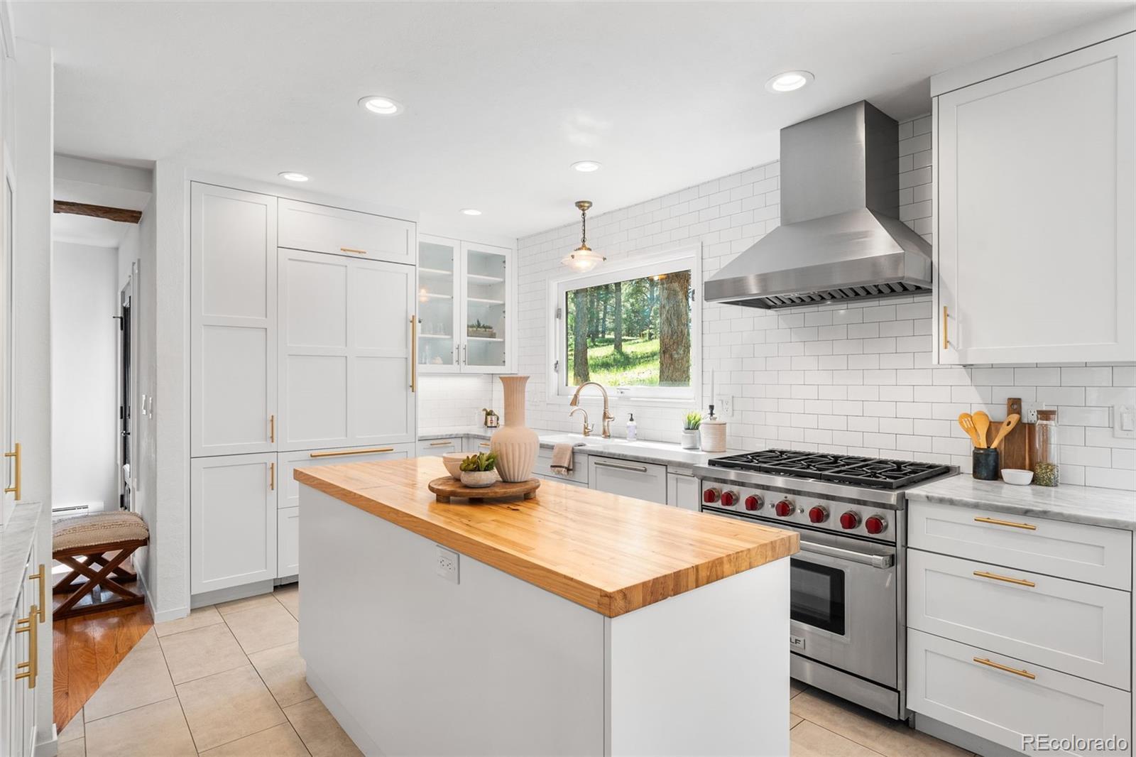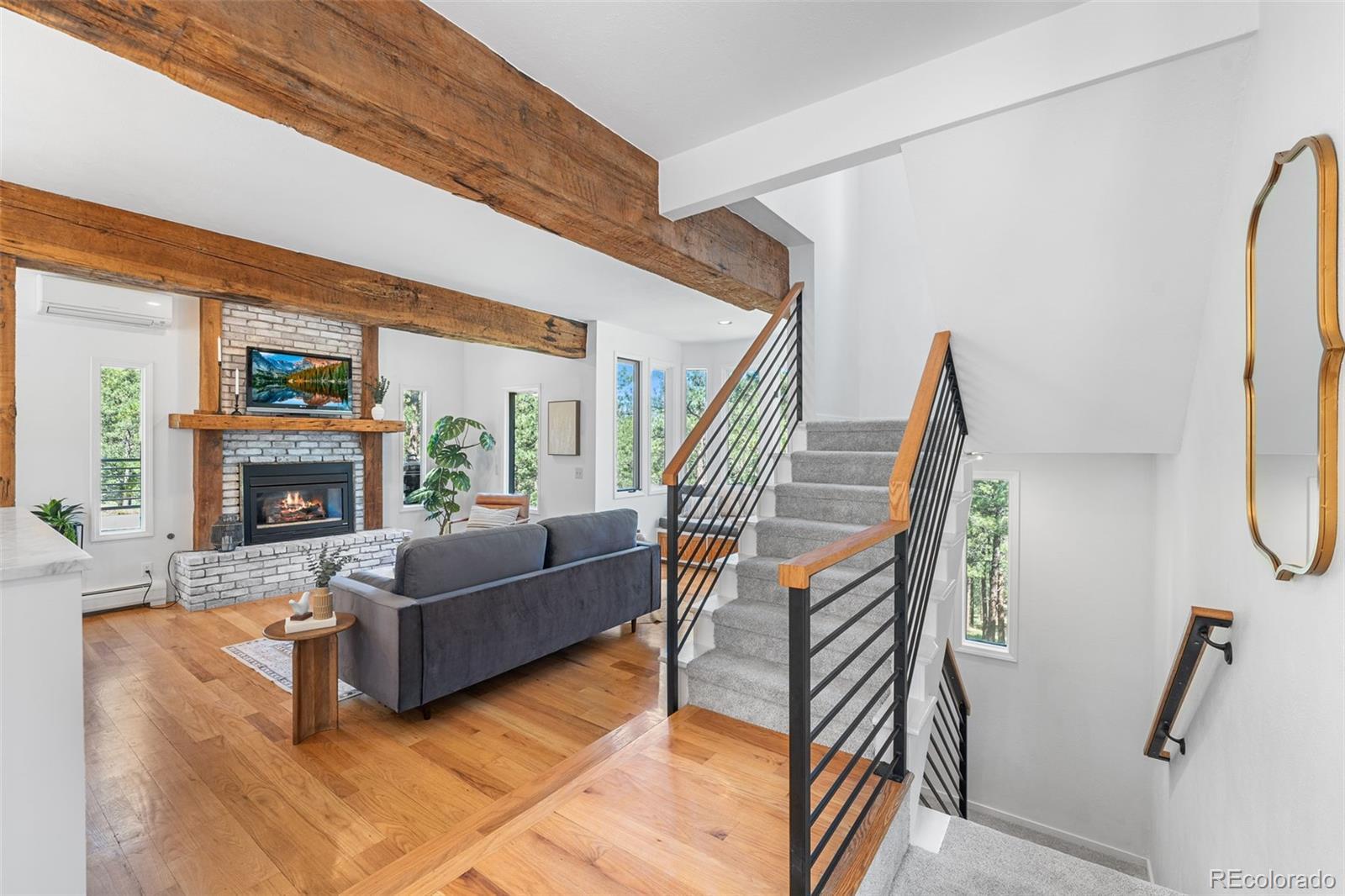 Tucked away in peaceful Pine Brook Hills, just minutes from town, this remodeled custom home offers the ultimate mountain living experience. From the moment you wake, you’ll be greeted by soft sunlight, a crackling fireplace, and serene nature. This is more than a home—it’s a retreat to relax, recharge, & find inspiration. The heart of the home is its gourmet kitchen, blending timeless design with high-end functionality. Rich reclaimed wood, sleek stone countertops, & Wolf/SubZero appliances make cooking enjoyable and efficient. Step outside to the expansive deck to take in breathtaking mountain views. The design embraces a cozy Colorado Hygge aesthetic, creating a warm, inviting space in harmony with nature. The open-concept layout features beautiful hardwood floors, soaring ceilings, & reclaimed wood beams. The living room, anchored by a stunning fireplace, offers space for intimate gatherings & larger celebrations. Custom built-ins add style & practicality, while the seamless flow between indoor & outdoor spaces makes entertaining effortless. The primary suite is a true sanctuary, w/ French doors opening to a sun-drenched deck. The en-suite bathrooms are spa-like, one w/ a walk-in shower, the other with a soaking tub perfect for unwinding. The lower level features a bright walkout basement, offering space for guests or creative pursuits. Outside, the fenced yard, pollinator garden, and walking meditation path provide a tranquil connection to nature. The large west-facing deck is ideal for stunning sunsets. The circular driveway offers easy guest access, & features like a mudroom, oversized 2-car garage, new tankless water heater, & generator backup ensure year-round comfort. Located on the BVSD school bus route with early snow plowing, this home offers easy access to town & true mountain living. Pine Brook Hills has its own water district, ongoing forest mitigation, natural gas lines, & a neighborhood fire station. HOA is voluntary.