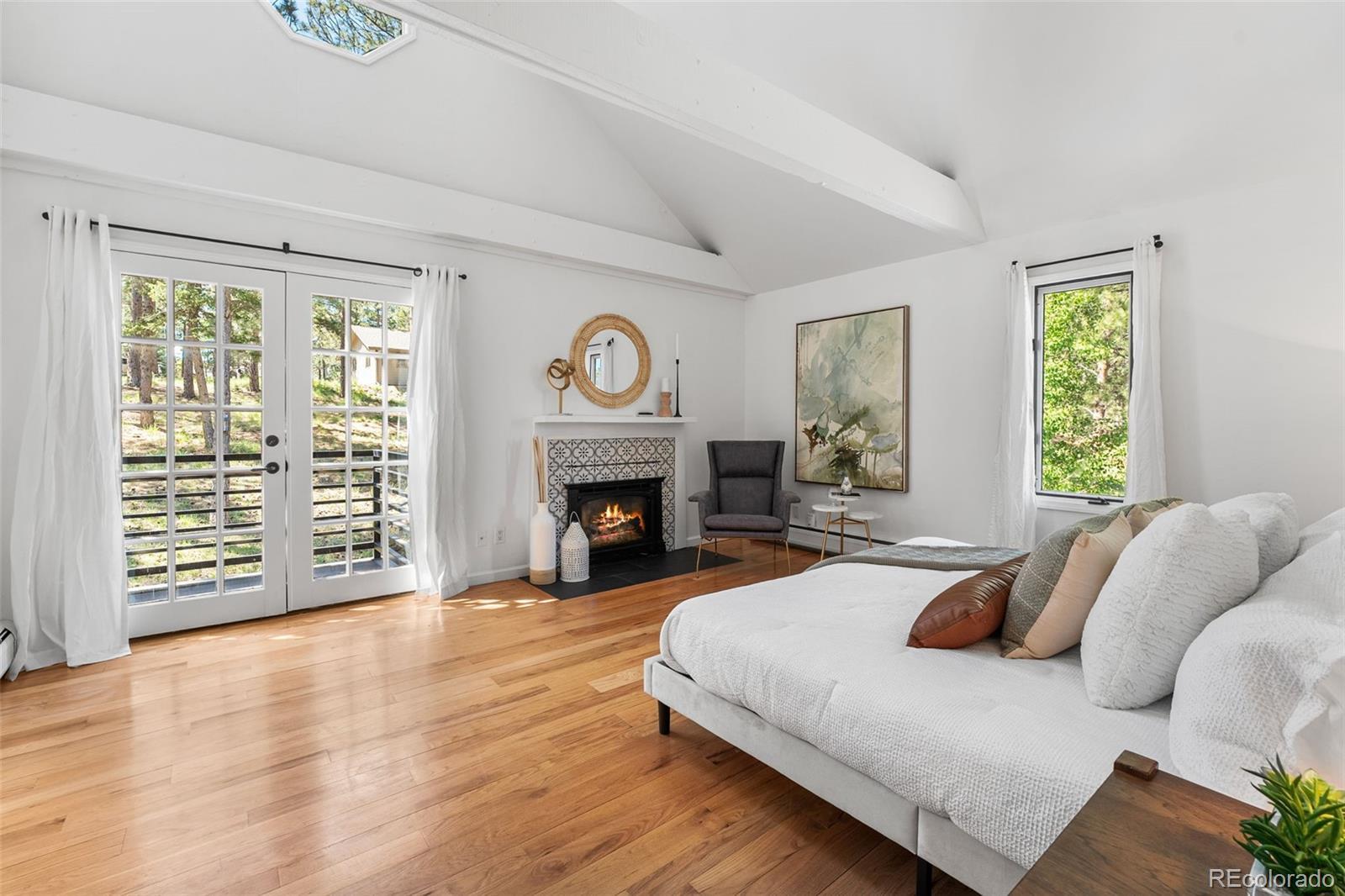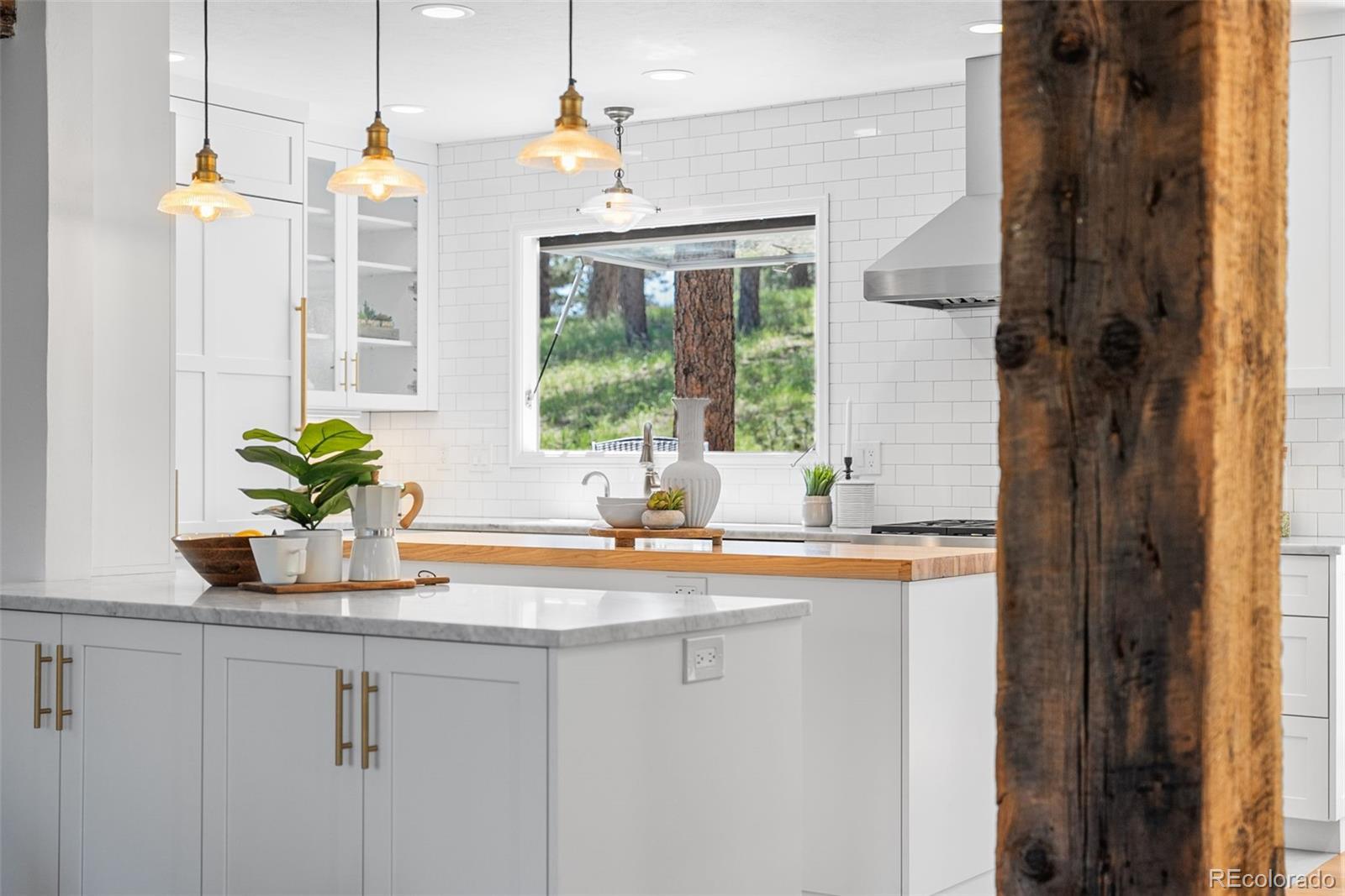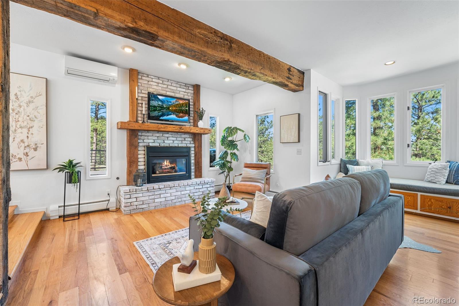 Tucked away in peaceful Pine Brook Hills, just minutes from town, this remodeled custom home offers the ultimate mountain living experience. From the moment you wake, you’ll be greeted by soft sunlight, a crackling fireplace, and serene nature. This is more than a home—it’s a retreat to relax, recharge, & find inspiration. The heart of the home is its gourmet kitchen, blending timeless design with high-end functionality. Rich reclaimed wood, sleek stone countertops, & Wolf/SubZero appliances make cooking enjoyable and efficient. Step outside to the expansive deck to take in breathtaking mountain views. The design embraces a cozy Colorado Hygge aesthetic, creating a warm, inviting space in harmony with nature. The open-concept layout features beautiful hardwood floors, soaring ceilings, & reclaimed wood beams. The living room, anchored by a stunning fireplace, offers space for intimate gatherings & larger celebrations. Custom built-ins add style & practicality, while the seamless flow between indoor & outdoor spaces makes entertaining effortless. The primary suite is a true sanctuary, w/ French doors opening to a sun-drenched deck. The en-suite bathrooms are spa-like, one w/ a walk-in shower, the other with a soaking tub perfect for unwinding. The lower level features a bright walkout basement, offering space for guests or creative pursuits. Outside, the fenced yard, pollinator garden, and walking meditation path provide a tranquil connection to nature. The large west-facing deck is ideal for stunning sunsets. The circular driveway offers easy guest access, & features like a mudroom, oversized 2-car garage, new tankless water heater, & generator backup ensure year-round comfort. Located on the BVSD school bus route with early snow plowing, this home offers easy access to town & true mountain living. Pine Brook Hills has its own water district, ongoing forest mitigation, natural gas lines, & a neighborhood fire station. HOA is voluntary.