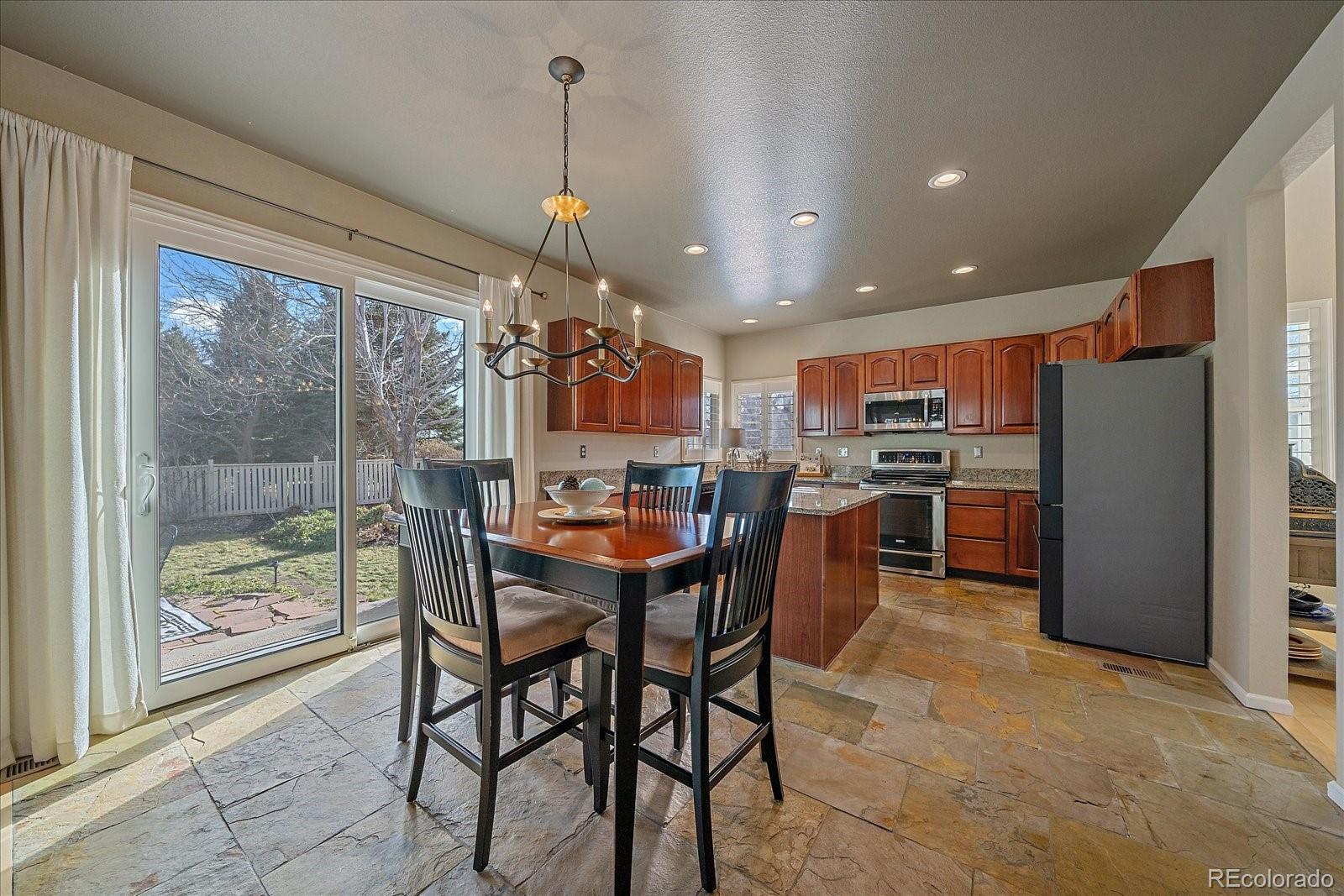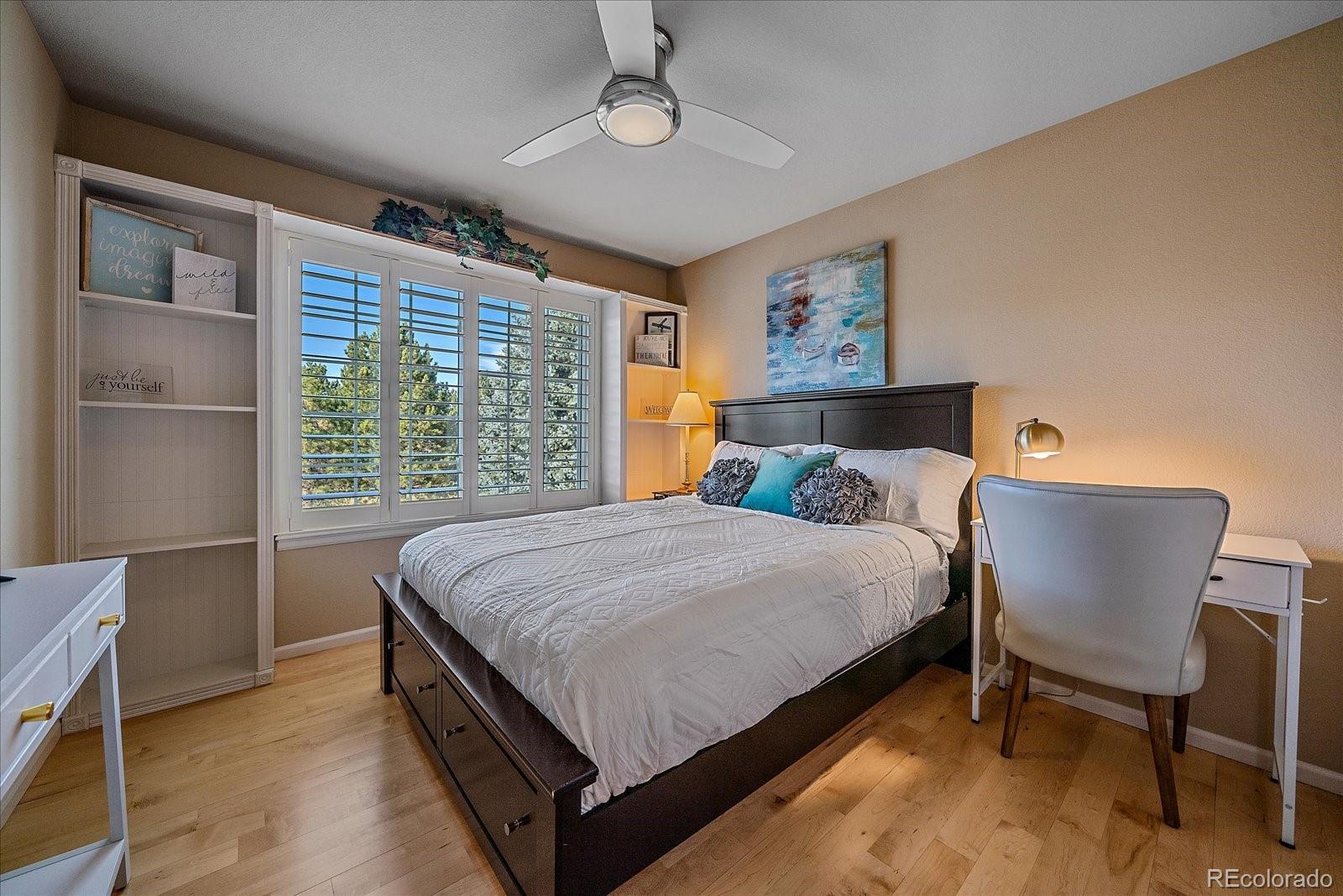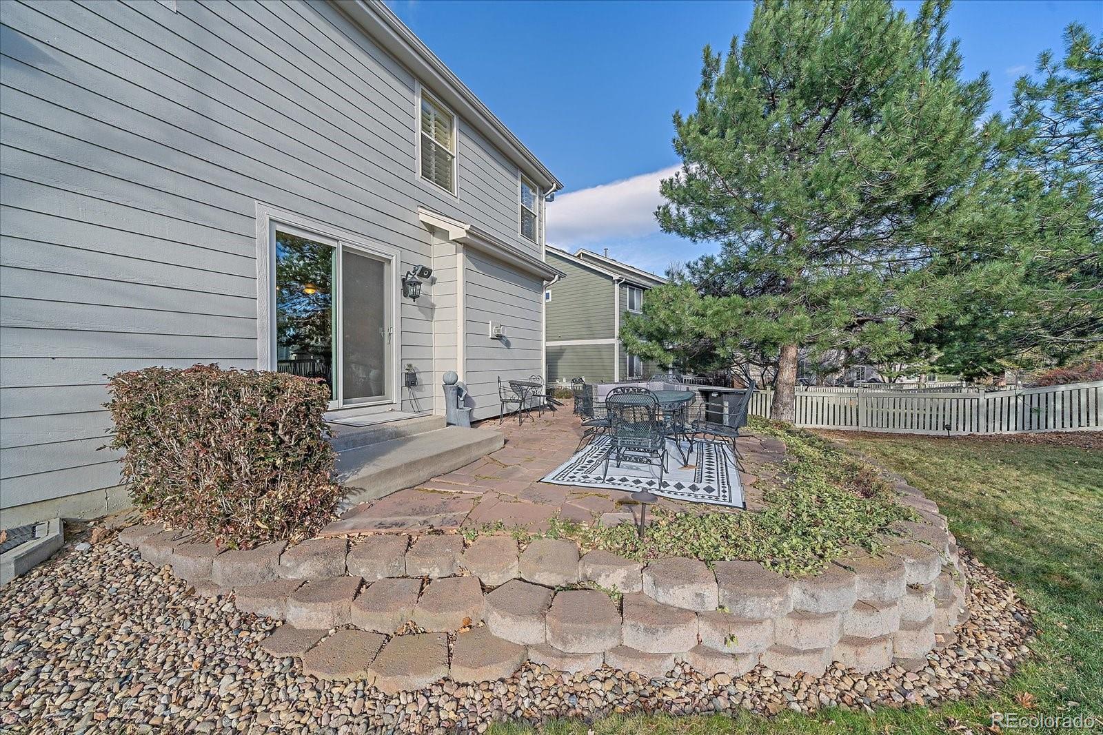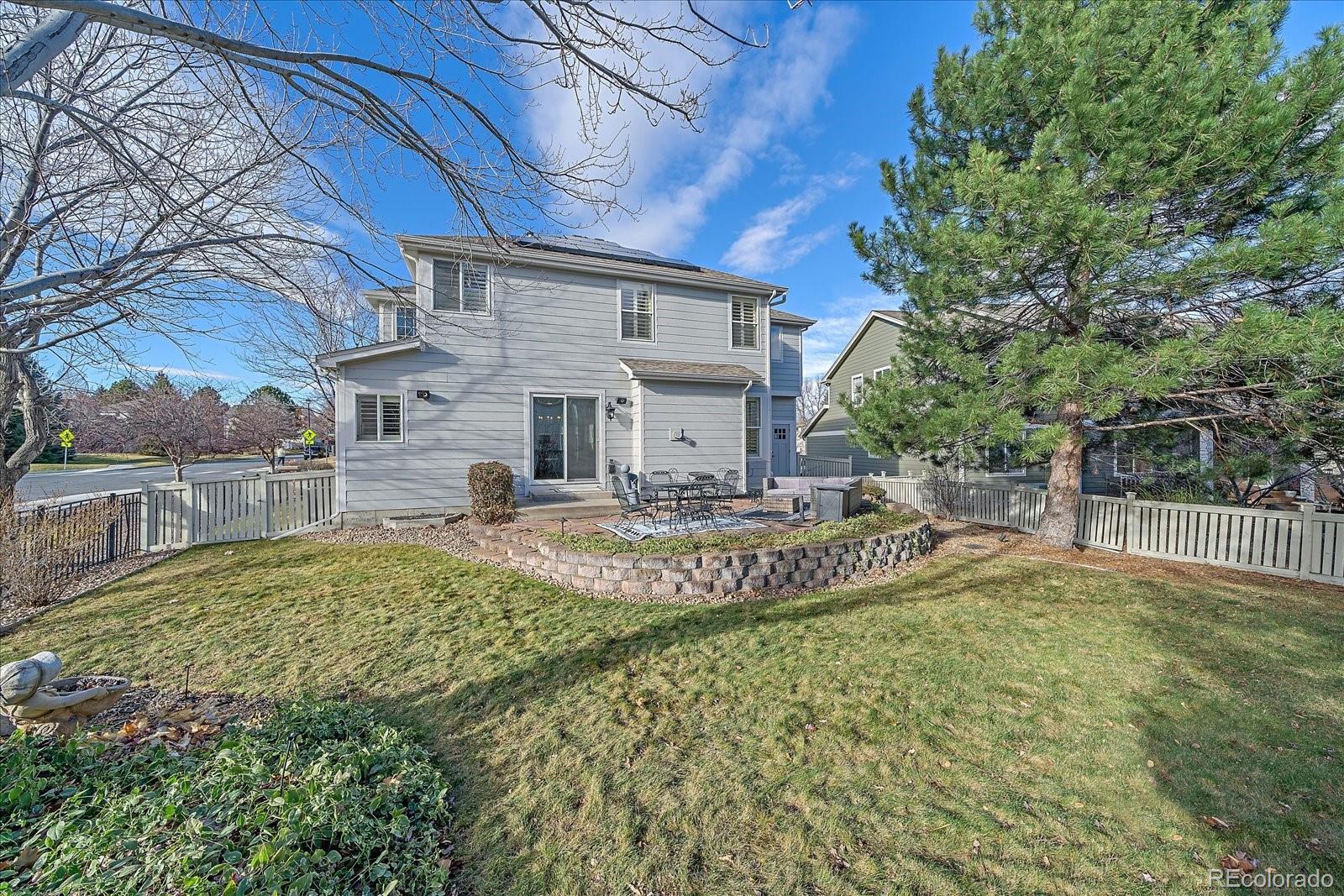Located in the highly sought-after Wyndham Park neighborhood, this well-cared-for two-story home stands out for its setting, updates, and long-term value. Enjoy easy access to I-70, the mountains, Ralston Creek Trail, nearby green space, ponds, restaurants, and local recreation centers—all while benefiting from low property taxes (NOT a special taxing district.) Every major system and surface has been thoughtfully updated. The main level offers formal living and dining rooms, a spacious family room with gas fireplace, and a powder bath. Wide-plank maple flooring is paired with natural slate tile, plantation shutters, and an enlarged sliding door that opens to a flagstone patio with desirable southwestern sun exposure and a beautiful backyard. The kitchen features cherry-stained cabinetry, slab granite countertops, stainless steel appliances, an induction cooktop, and pantry storage. Upstairs highlights a private primary suite with a renovated bath, a versatile loft ideal for an office or additional living space, two secondary bedrooms, and a full guest bath. Recent improvements include the roof, exterior and interior paint, gutters, furnace, and central air. The unfinished basement offers open space with rough-in plumbing for future expansion. Additional highlights include a three-car garage with service door, whole-house fan, and a home that has been consistently serviced and maintained. This property reflects true pride of ownership and offers a rare combination of location, updates, flexibility, and long-term value.