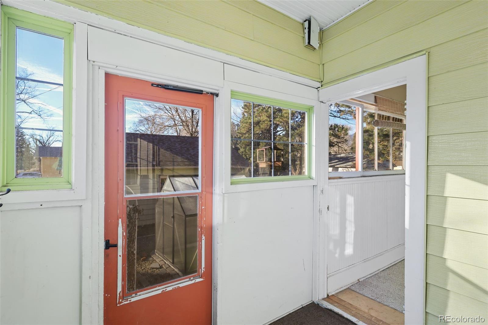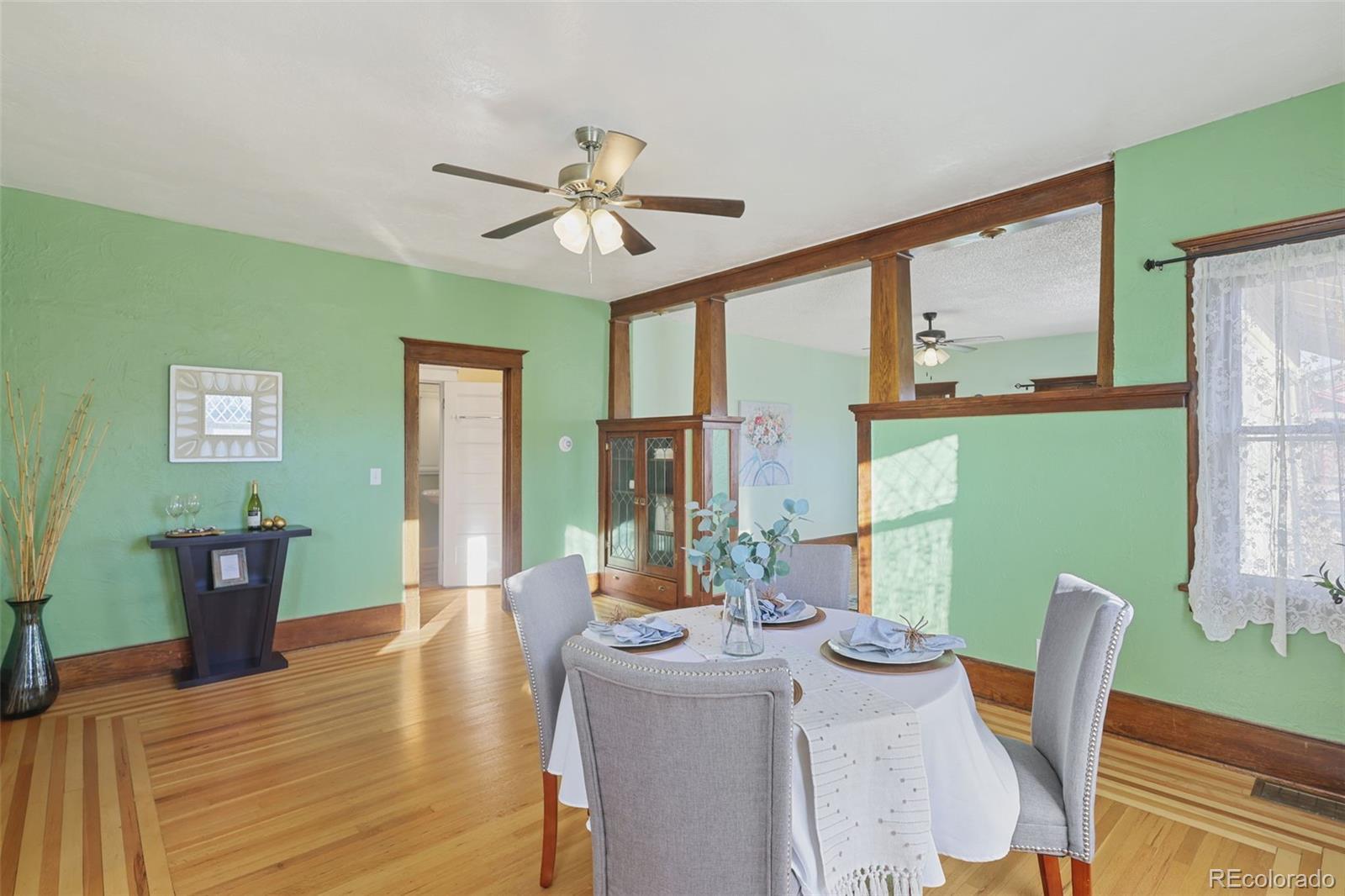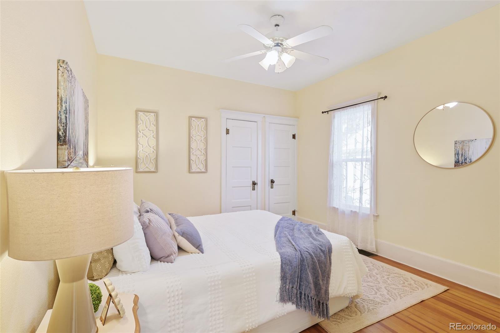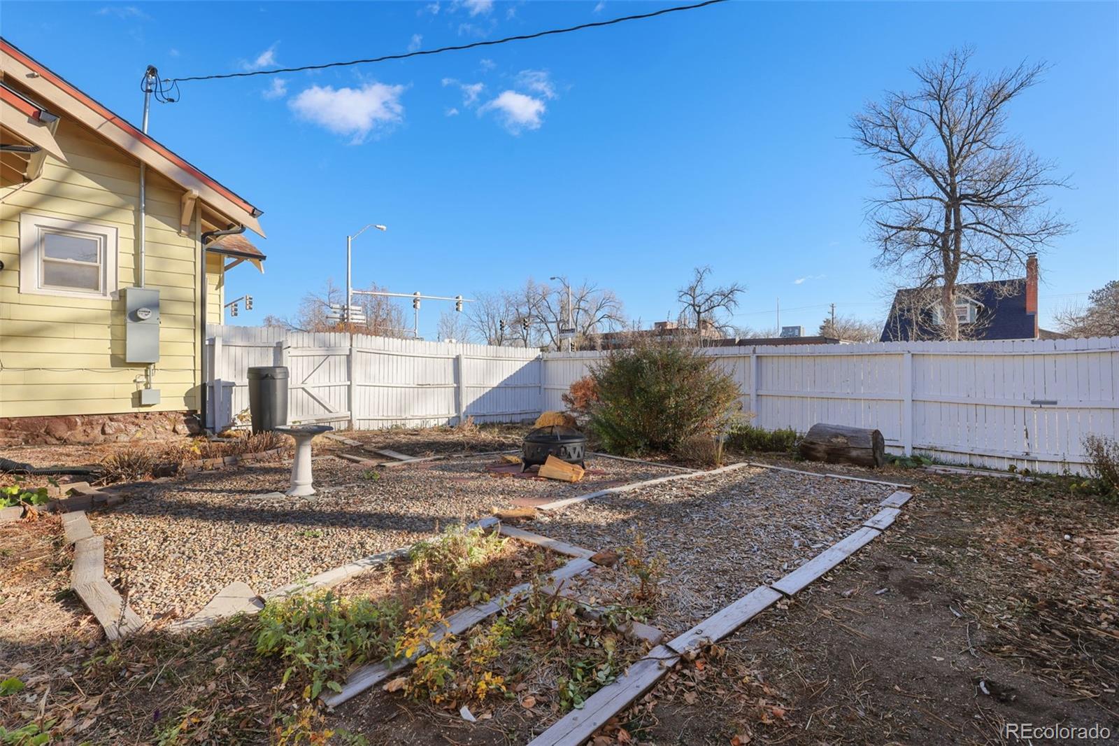 Welcome to this charming home bursting with curb appeal, set on a huge corner lot in a desirable neighborhood. A classic white picket fence, beautiful landscaping, and an established yard create a warm, inviting first impression. Enjoy relaxing on the covered front porch, or tending to your plants in the greenhouse tucked away in the fully fenced backyard. A detached 2-car garage offers plenty of storage and convenience. Step inside to find beautiful natural wood floors and the timeless character of unpainted wood trim and built-ins throughout much of the home. The bright and airy living and dining rooms are filled with natural light, creating perfect spaces for everyday living and entertaining. The chic, updated kitchen features stainless steel appliances, stylish functional shelving, and a seamless walk-out to the backyard—ideal for outdoor dining or gatherings. The primary bedroom includes two closets for abundant storage. The basement offers additional versatility with a bedroom space and a convenient laundry area. Ceiling fans in nearly every room help keep the home cool and comfortable all summer long. Located just one block from Steele Elementary and near Patty Jewett Golf Course, Safeway, Bonforte and Nancy Lewis Parks, the Pikes Peak Greenway Trail, and an array of restaurants, coffee shops, and breweries, this home truly blends charm, comfort, and convenience. Don’t miss the opportunity to make this delightful property yours!