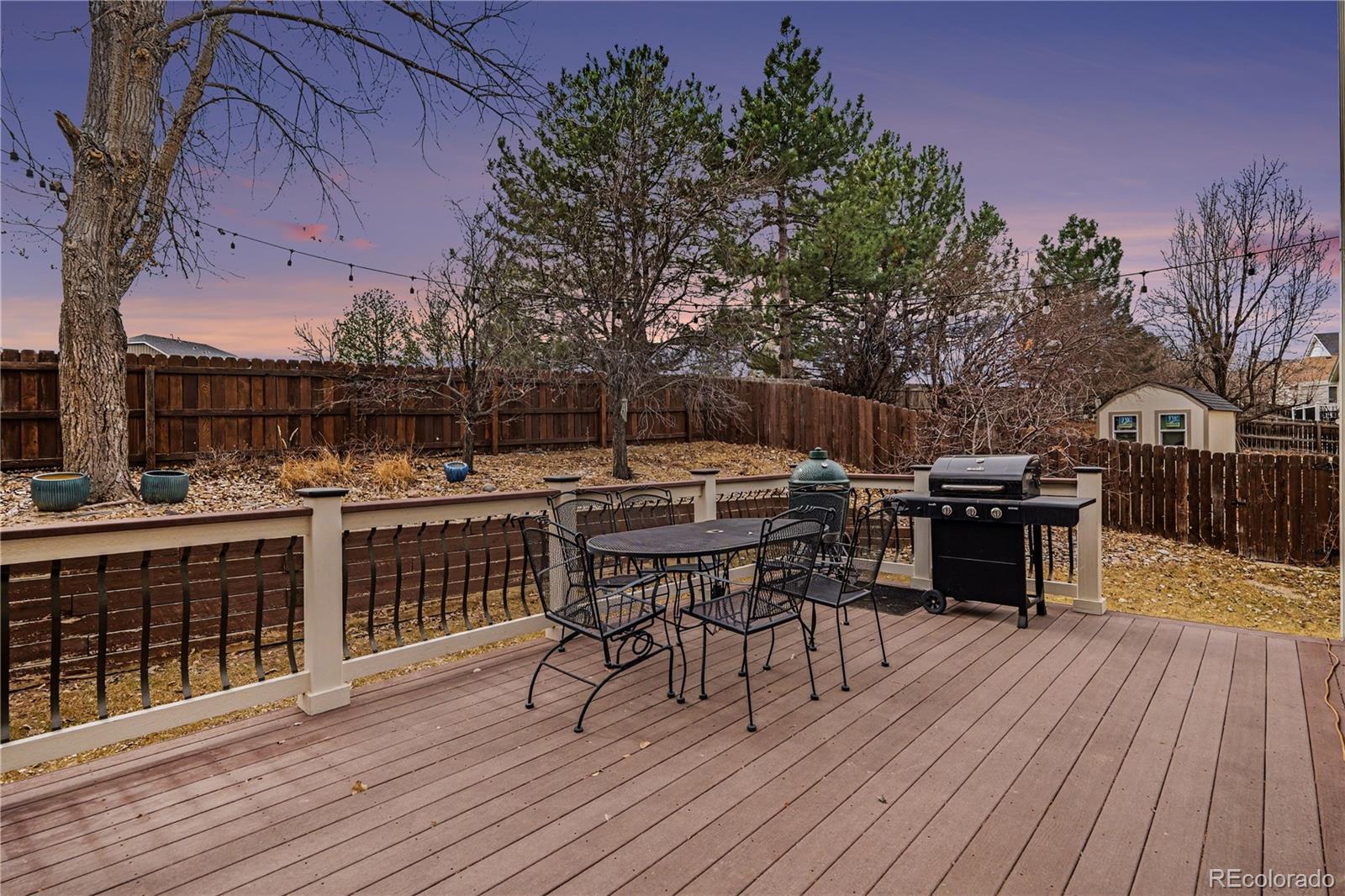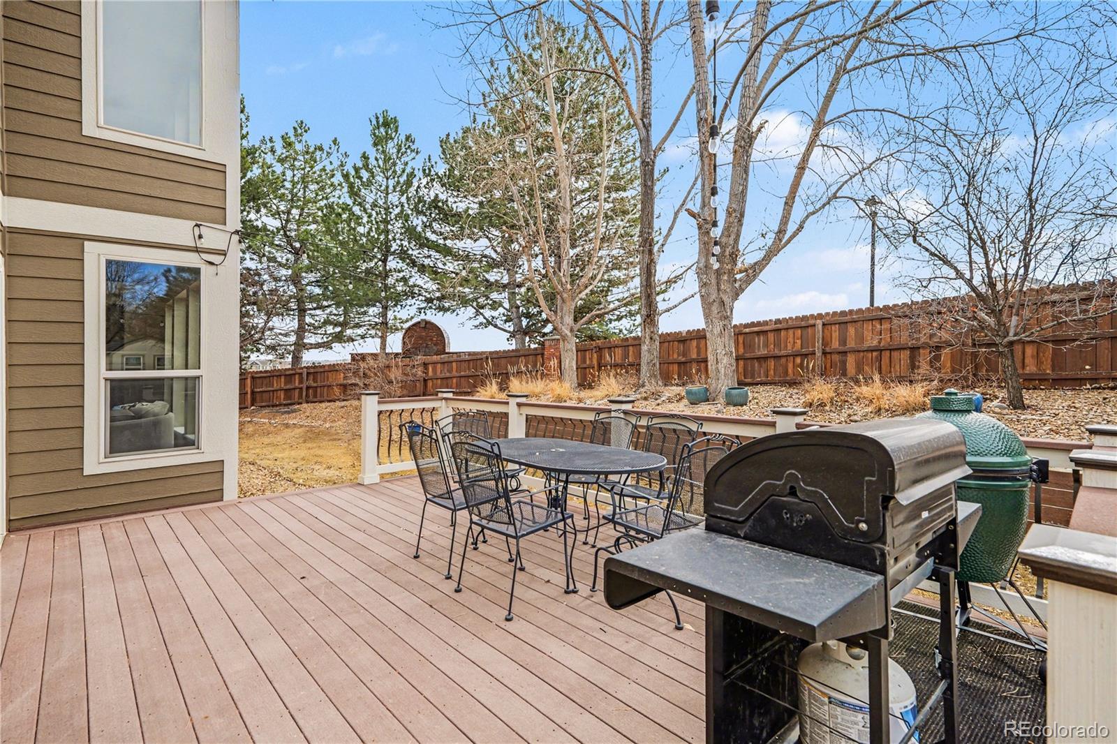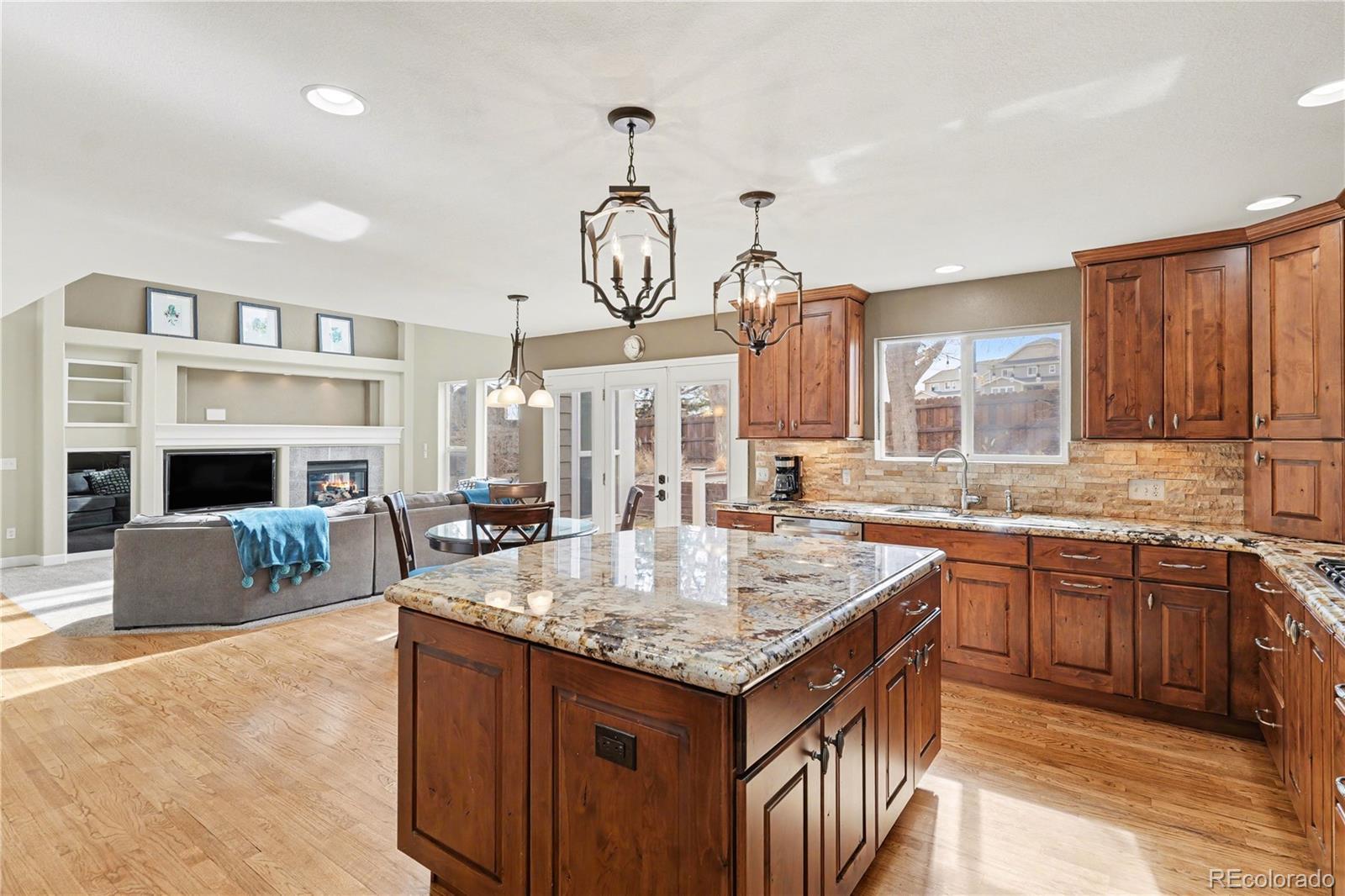 This stunning Clarke Farms home has been meticulously maintained and thoughtfully updated by its original owners, offering over 3,800 square feet of beautifully finished living space, including a finished basement and a 3-car garage. A dramatic brick arch and exceptional curb appeal create an unforgettable first impression.Designed with both everyday living and entertaining in mind, the highly functional floorplan offers seamless flow between formal and casual spaces. The spacious entry opens to soaring ceilings and a showpiece staircase with elegant iron railing. Formal living and dining rooms are perfectly positioned for gatherings, while the expansive great room connects effortlessly to the fully remodeled custom kitchen featuring high-end cabinetry, a massive island, stainless steel appliances, granite slab countertops, and hardwood flooring throughout the entry, hall, and kitchen. A main-floor bedroom adds flexibility for guests, multigenerational living, or a private office.Upstairs, a catwalk overlooks the entry and living room below, enhancing the home’s open architectural feel. Generously sized secondary bedrooms provide comfort and privacy. The luxurious primary suite is a private retreat with a spa-inspired bath showcasing marble finishes, upgraded cabinetry, granite countertops, and frameless glass shower doors. The finished basement expands the home’s versatility with a bar area, full bathroom, and abundant storage—ideal for entertaining,hobbies, or recreation. Step outside to a lighted custom deck, perfect for relaxing evenings or hosting under the Colorado sky. The backyard provides direct access to the scenic Cherry Creek Trail and is within walking distance to downtown Parker, local amenities, and highly rated schools—offering an exceptional blend of comfort, convenience, and lifestyle in one of Parker’s most desirable neighborhoods.
