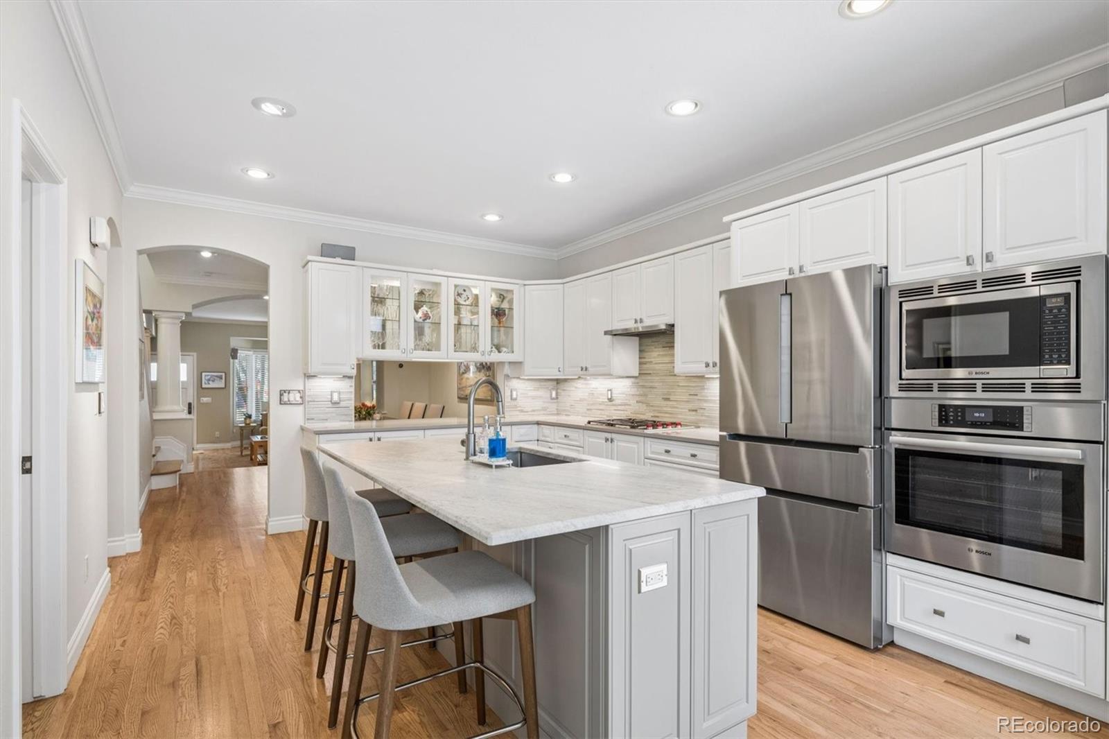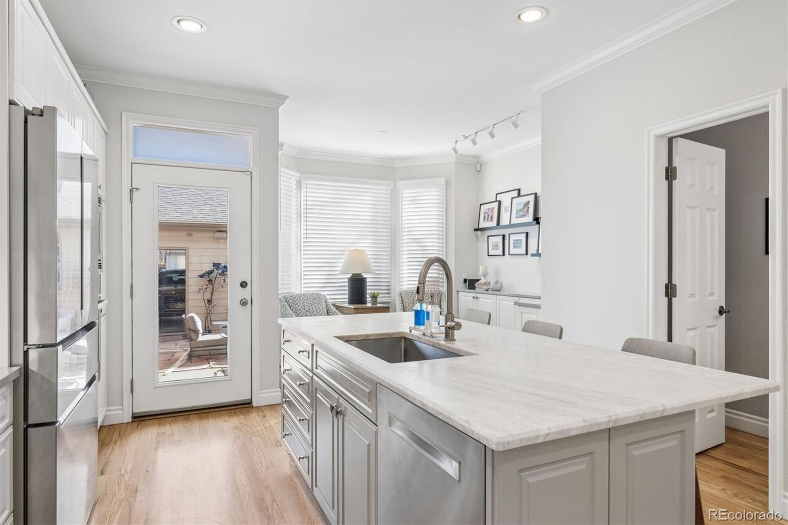This gorgeous townhome is ideally located in the heart of Denver’s highly sought-after Cherry Creek neighborhood. This light-filled home has been completely remodeled and updated from top to bottom. The kitchen has professional grade appliances, oversized refrigerator, and combo marble and quartz countertops. All bathrooms have been updated and include such features as marble accents and a large soaking tub in the primary. The basement is beautifully finished with luxury vinyl plank flooring, specialty lighting, and crown molding. The courtyard, too, has been fully redone, including high privacy fences (offering total privacy) and shade sails. Other bonus touches include UV and temperature-controlled window film, a whole-house fan, and extra security on the garage door. Everything you could want is located steps from the front door: Cherry Creek Shopping Center, coffee shops, restaurants, premier retail, and the Cherry Creek Trail.