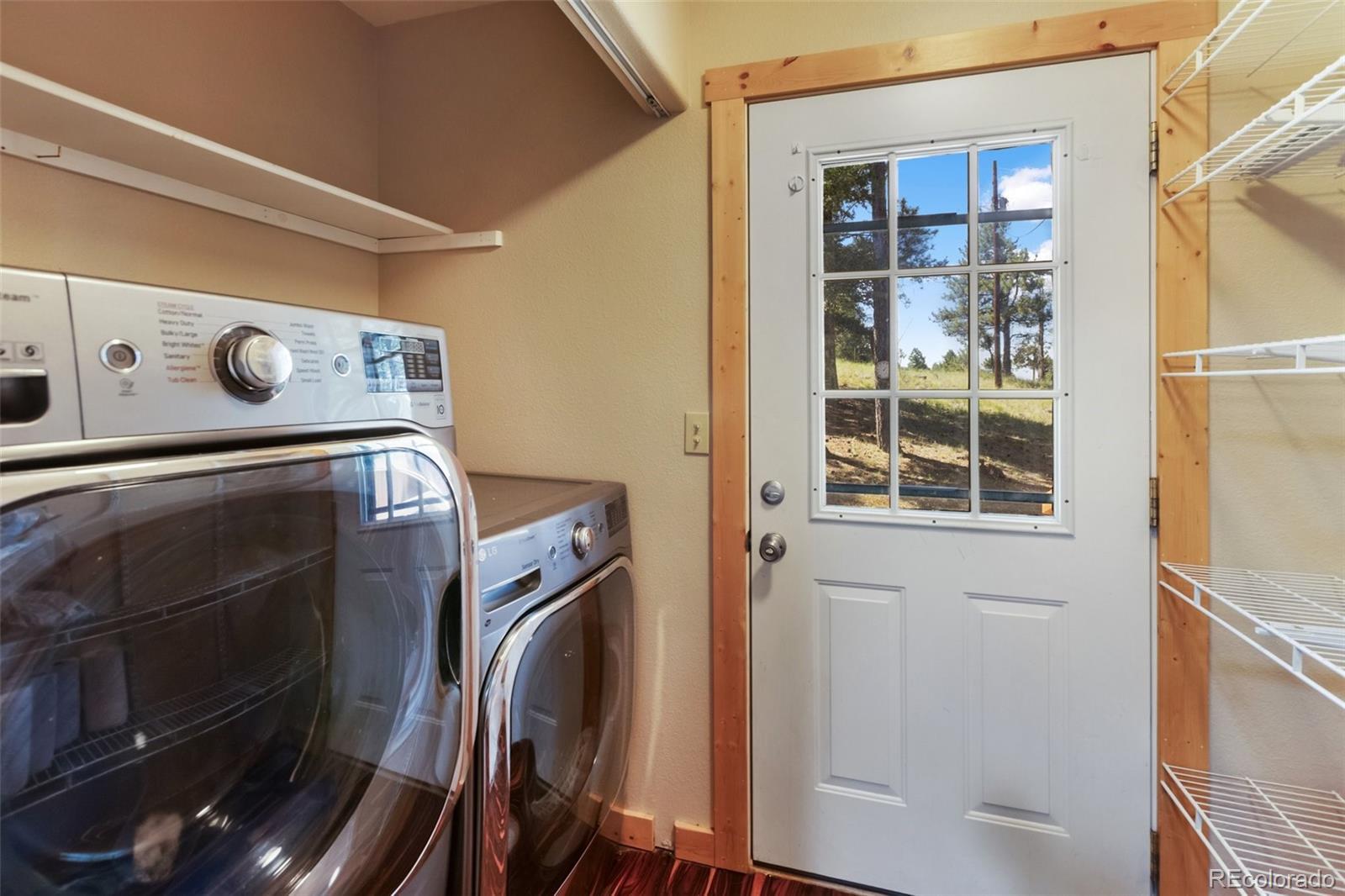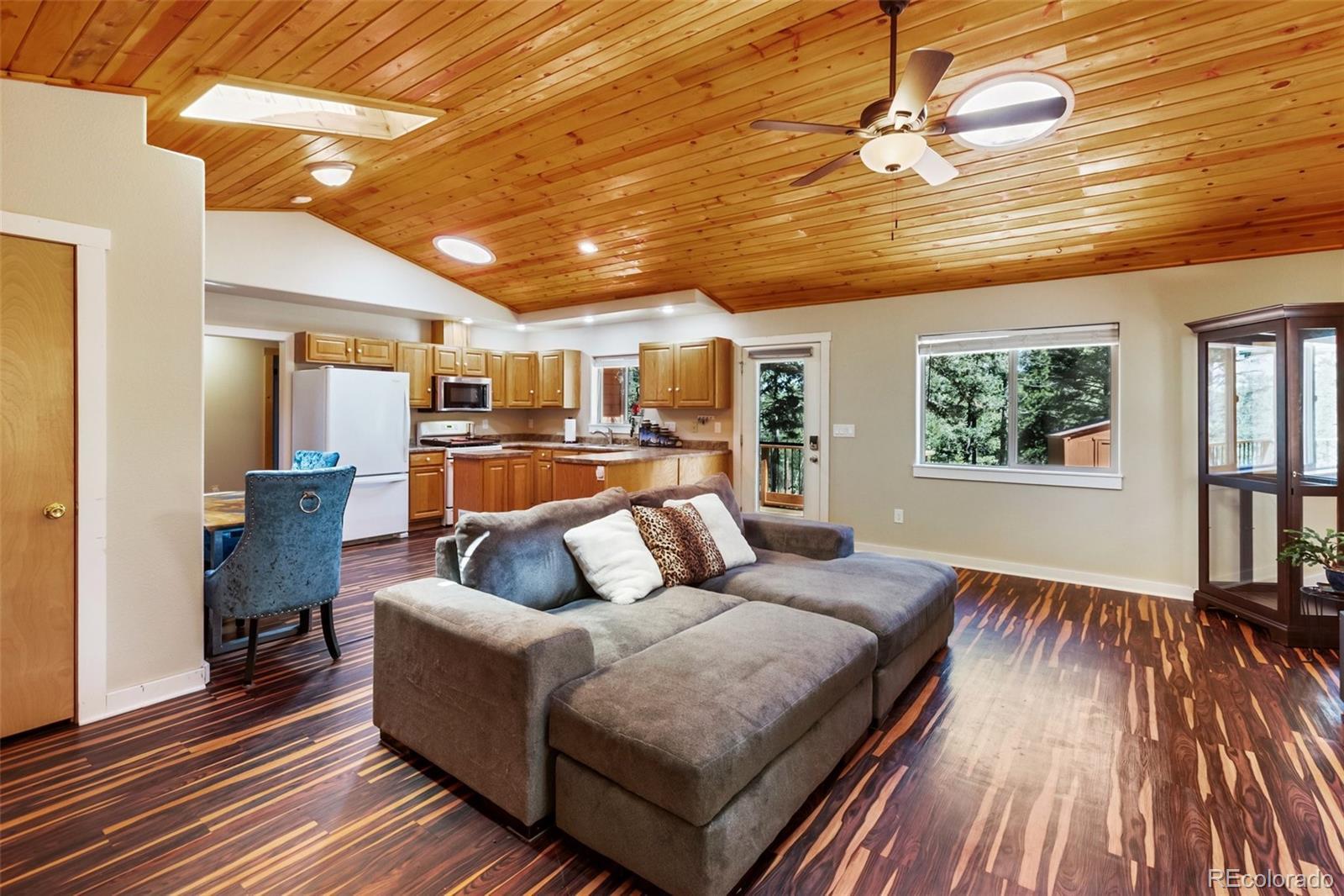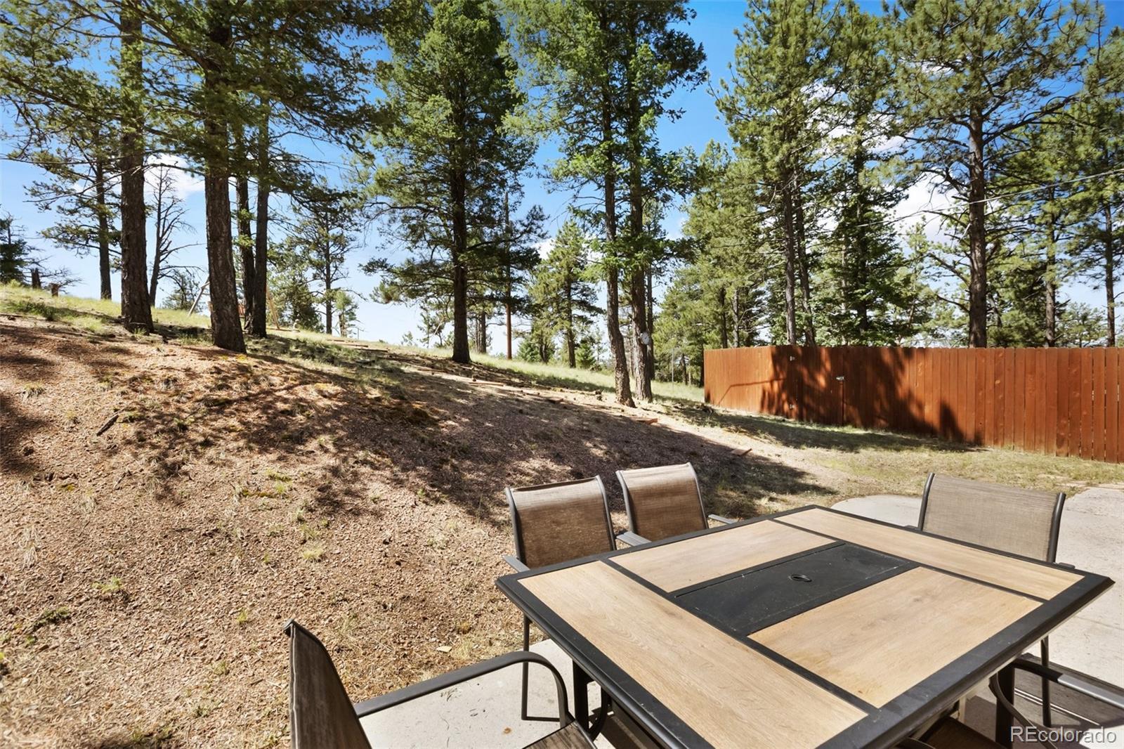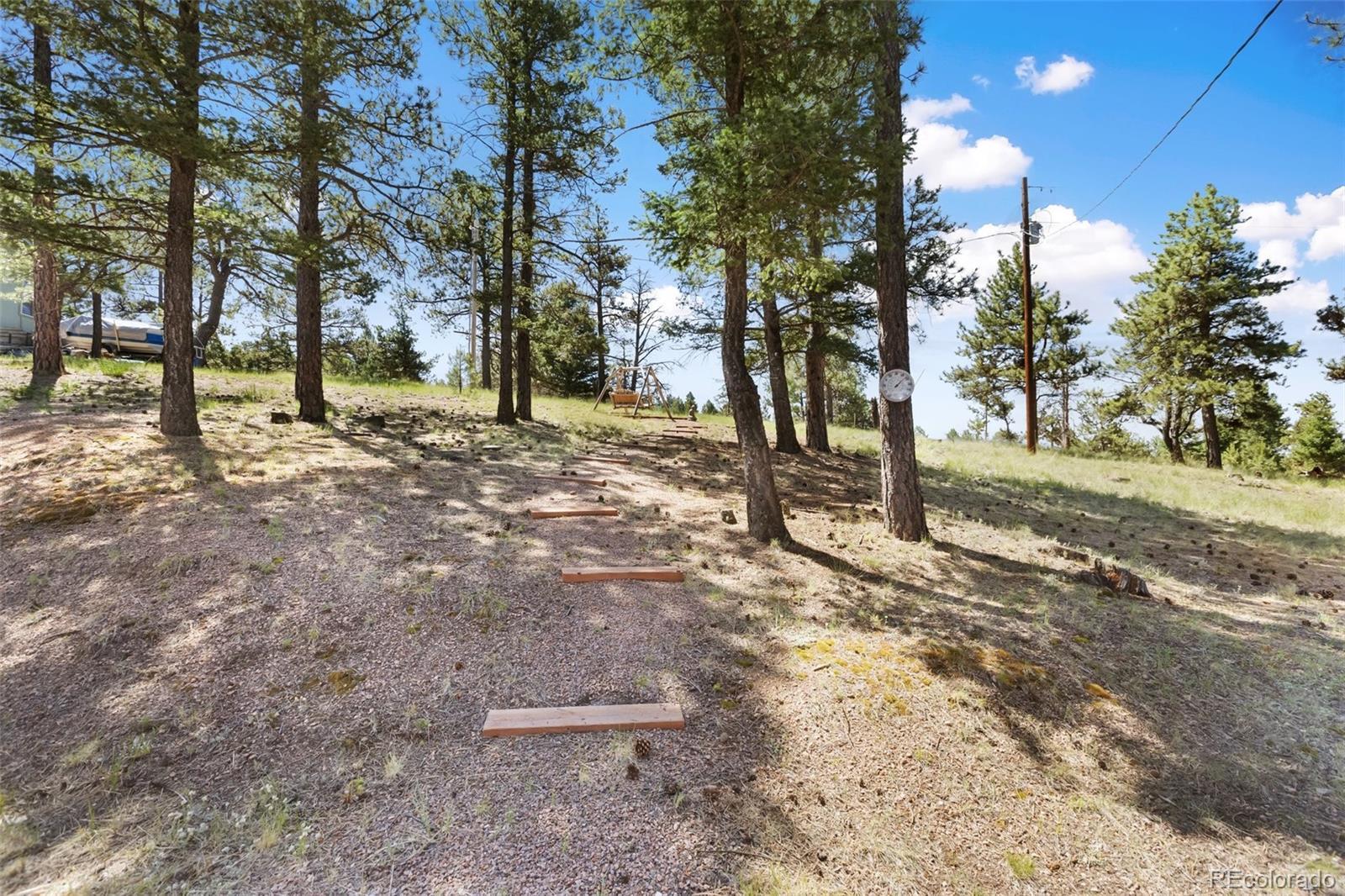 Cozy mountain ranch style home located on over a half an acre of land in a wooded private neighborhood! Upon entering the home, the open great room is accented by knotty pine tongue and groove ceilings, in addition to skylights and solar tubes to bring in extra sunlight! Upgrades within the home include new interior paint, light fixtures, new convection microwave oven, tiger wood laminate flooring, + 86" multicolor electric fireplace built-in wall unit. There are 2 bedrooms situated off the great room, and a full bathroom with a heated bidet! Laundry and pantry area lead out the rear patio, with access to the private yard. Home is constructed in rustic cedar sided exterior, 2022 composition shingle roof, w/ attached carport and 2 large storage sheds are on premises. Property is serviced by its own private well and septic system. Located just 25 minutes outside of Woodland Park, an hour to Colorado Springs, just 20 minutes to epic trout fishing, & 1.5 hrs. to snow skiing resorts and the Continental Divide. Outdoor amenities and nature abounds in this mountain community known as Colorado Mountain Estates!