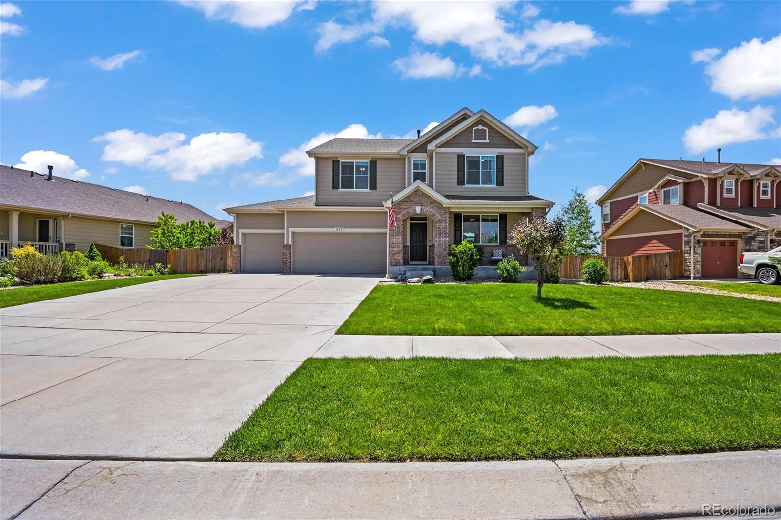 Backing directly to the Second Creek Open Space with spectacular Rocky Mountain views, remarkable interior finishes, and space to roam, this home is the one you have been waiting to see. Located on the western edge of Buckley Ranch, you will love the easy accessibility to trails, parks, and also highways and nearby amenities. With an upgraded interior featuring quartz counters, champagne bronze hardware, and so much more throughout, it is a turnkey ready stunner. The walkout basement gives you room to finish as you see fit, while enjoying a perfect lifestyle and incredible sunsets from your balcony style deck. The massive oversized 4 car garage gives you the storage you need, while the room sizes and ample storage and give you a fresh feeling of size and comfort in the home. It will be hard to beat this property with the views, upgrades, and possibilities it has in the area, so please come see why this is the one! Other upgrades include new carpet, interior and exterior paint in 2023 as well as a new sump pump and water heater in 2023.
