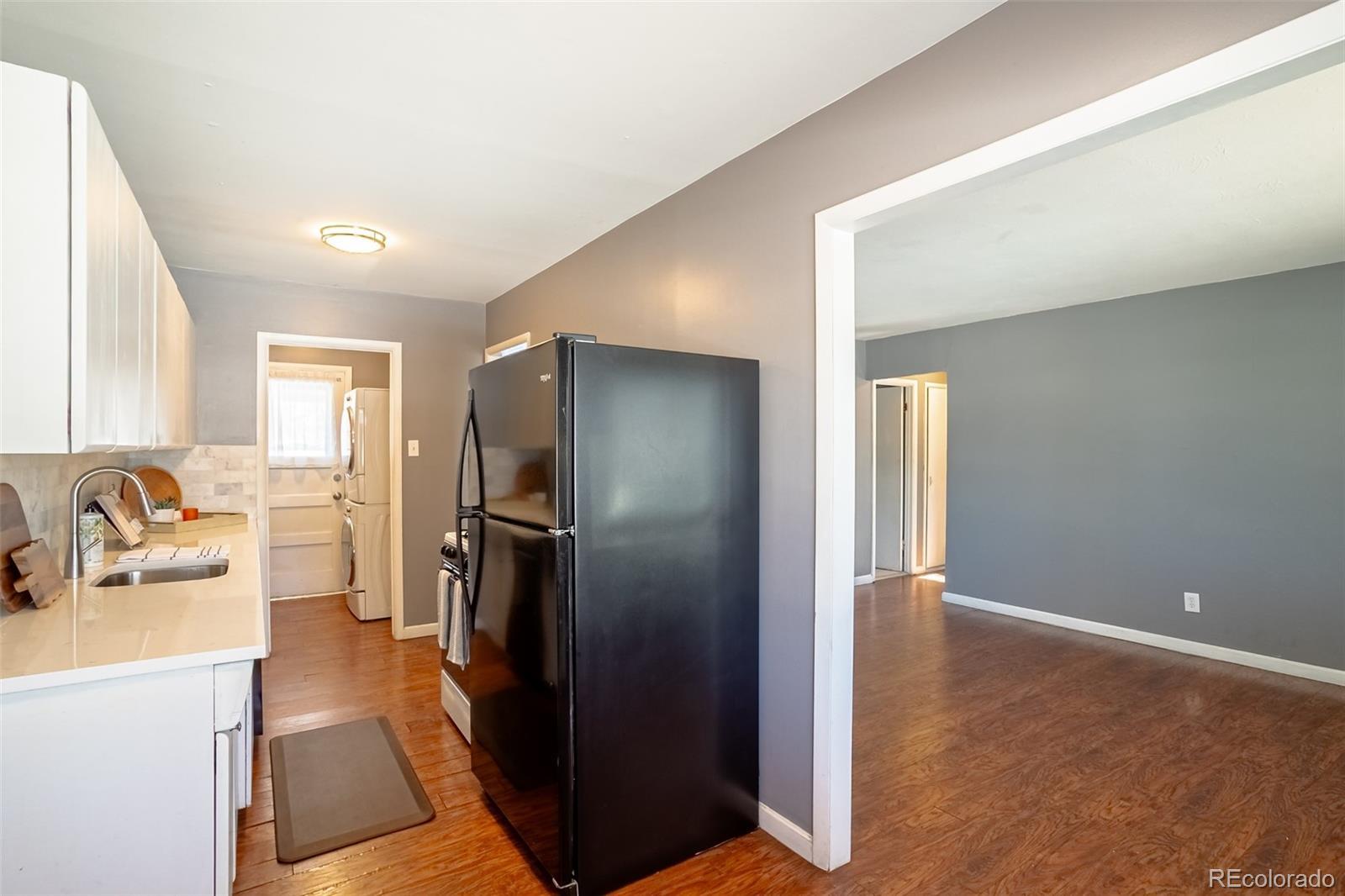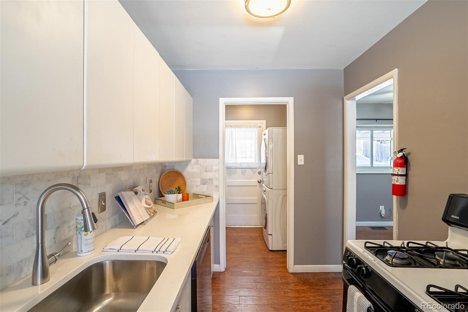 This cute and well maintained University Hills home is an excellent opportunity for both home buyers and savvy investors. Thoughtfully improved, the property offers a rare combination of charm, functionality & location. One of the standout features is the unusually large primary bedroom, a rare find in the area, complete with a wood-burning fireplace. A second generously sized bedroom provides flexibility for guests, a home office, or rental use. The centrally located hall bathroom has been recently remodeled with an $11,000 investment, offering modern finishes and an updated look. The main living spaces are bright, open, and welcoming. The spacious living room and dining area flow seamlessly into the kitchen through a thoughtfully added wall opening, creating an open-concept feel ideal for entertaining & everyday living. The updated kitchen has quartz slab countertops, a gas cooktop/oven, new refrigerator, new disposal, new dishwasher and is very functional with an eat-in area. A highly desirable single-car attached garage provides direct access into the home, leading conveniently into a dedicated laundry area with included stackable washer and dryer, located just off the kitchen for ease of use. Step outside to enjoy a large backyard with a generous concrete patio, perfect for outdoor dining, entertaining, or simply relaxing. An additional storage shed offers ample space for tools, bikes, and outdoor gear. This home has been thoughtfully upgraded, including new insulation, new carpet, PEX plumbing, and a new sewer line—major improvements that add long-term value and reduce future maintenance. The U Hills location is hard to beat. Just minutes from the Yale Light Rail Station & steps from the High Line Canal Trail system with 71 miles of scenic paths, the neighborhood also offers quick access to DTC, Downtown, and major highways. Buyers will also appreciate proximity to the highly sought-after International Baccalaureate program at nearby Bradley Elementary School.