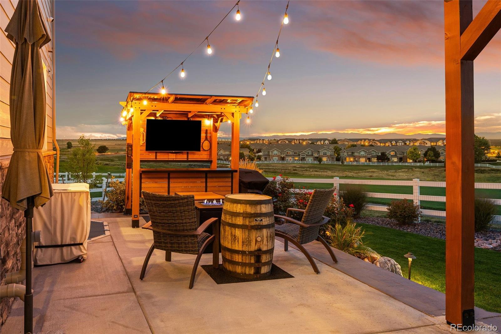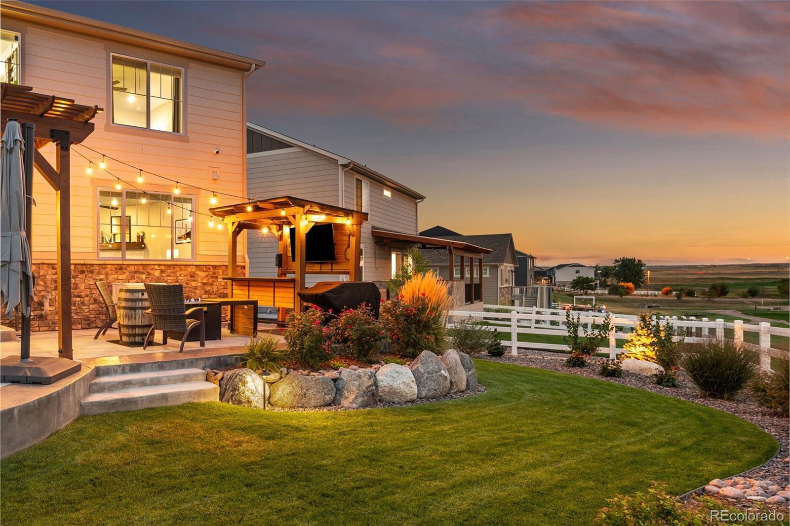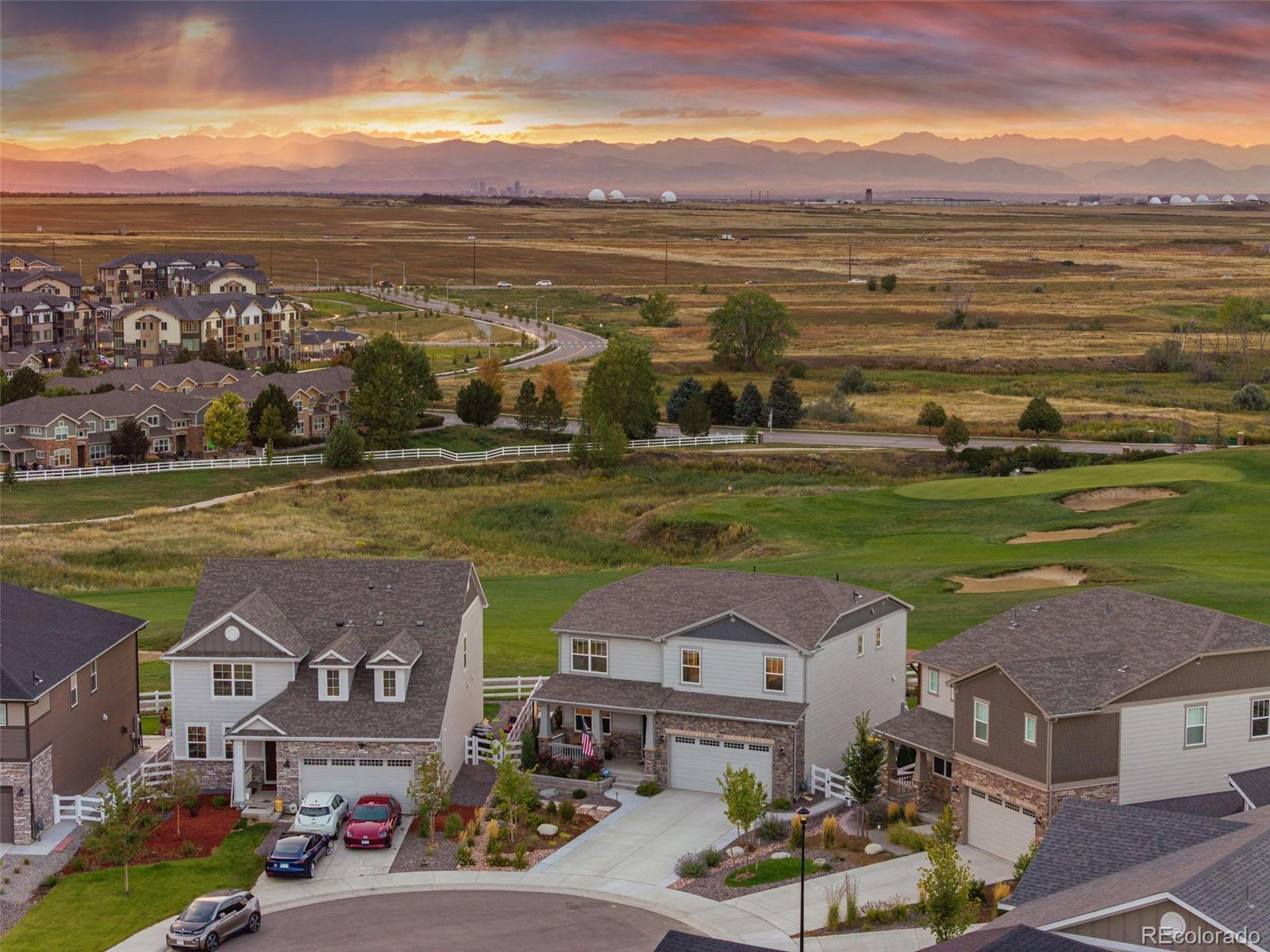 New price for one of the best home sites in all of Murphy Creek! You'll enjoy sweeping mountain views from a prime golf course lot. Over $100,000 in upgrades have been added by the sellers since purchasing! 4-bedroom, 3-bath home built in 2023. Still feels brand new! Custom upgrades include the professionally designed rear yard with water feature, extended patio and bar area. Plus, you'll find an expanded driveway, extra garage storage, new pergola, lighting and more! Far from builder grade! Inside, the chef-inspired kitchen is anchored by a ZLINE commercial-style range, while a main-level study, upstairs loft, and an unfinished basement provide flexibility for work, play, and future expansion. Whole house humidifier. Tech-savvy upgrades include security cameras, Bluetooth blinds and smart yard lights. The seller also recently added an epoxy floor to the garage. Beyond the backyard, the Murphy Creek lifestyle comes to life. The award-winning public golf course, neighborhood tennis/pickle ball courts, and refreshing community pool are all just outside your back fence. Don't forget about the Murphy Creek Tavern at the clubhouse for those days you don't feel like cooking. (Their breakfast burritos may be the community's best kept secret!) This home isn’t just rare—it’s the complete package at a terrific price!