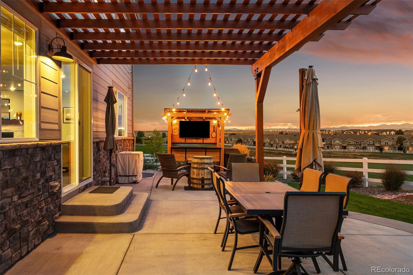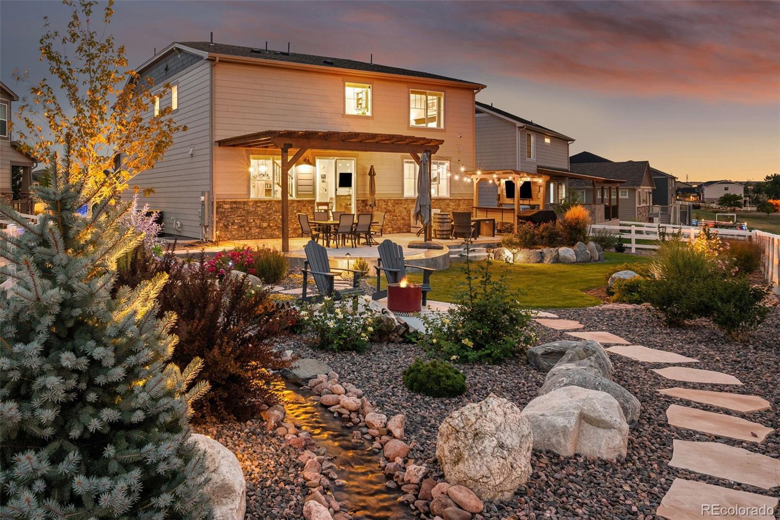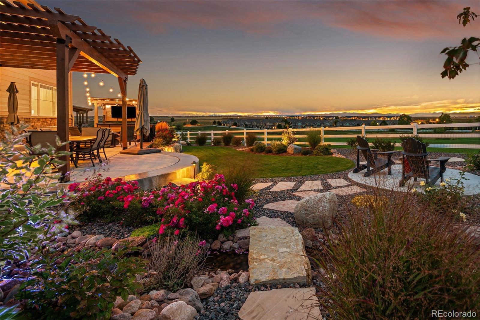 New price for one of the best home sites in all of Murphy Creek! You'll enjoy sweeping mountain views from a prime golf course lot. Over $100,000 in upgrades have been added by the sellers since purchasing! 4-bedroom, 3-bath home built in 2023. Still feels brand new! Custom upgrades include the professionally designed rear yard with water feature, extended patio and bar area. Plus, you'll find an expanded driveway, extra garage storage, new pergola, lighting and more! Far from builder grade! Inside, the chef-inspired kitchen is anchored by a ZLINE commercial-style range, while a main-level study, upstairs loft, and an unfinished basement provide flexibility for work, play, and future expansion. Whole house humidifier. Tech-savvy upgrades include security cameras, Bluetooth blinds and smart yard lights. The seller also recently added an epoxy floor to the garage. Beyond the backyard, the Murphy Creek lifestyle comes to life. The award-winning public golf course, neighborhood tennis/pickle ball courts, and refreshing community pool are all just outside your back fence. Don't forget about the Murphy Creek Tavern at the clubhouse for those days you don't feel like cooking. (Their breakfast burritos may be the community's best kept secret!) This home isn’t just rare—it’s the complete package at a terrific price!