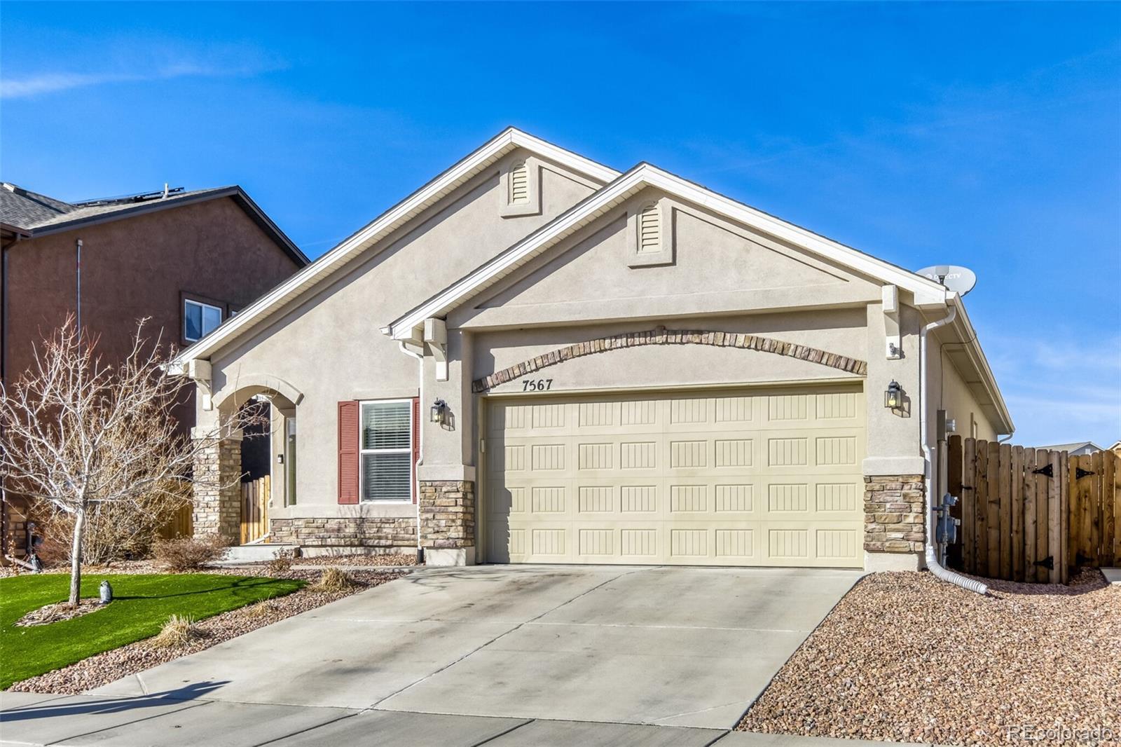 Immaculately maintained and thoughtfully designed, this highly sought-after ranch-style home offers true main-level living paired with an elegant, low-maintenance lifestyle. The stucco exterior and professionally finished zero-scape landscaping create strong curb appeal and effortless upkeep. Inside, the open-concept layout is filled with natural light and showcases pride of ownership throughout. The seamless flow between the kitchen, dining, and great room provides a refined yet comfortable setting for everyday living and entertaining. All bedrooms and baths are conveniently located on the main level. Enjoy outdoor living on the covered patio just outside the dining room, ideal for relaxing or entertaining, while the attached two-car garage and central air add everyday convenience. Ideally located near parks, shopping, schools, and medical facilities. Don't delay on this one, ranch homes of this caliber and condition are consistently in high demand - especially at this price point!