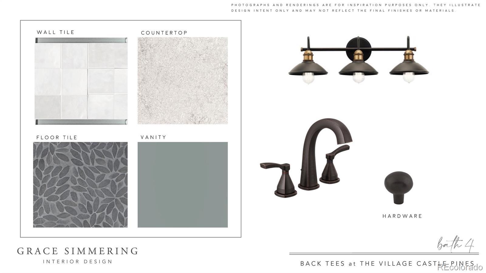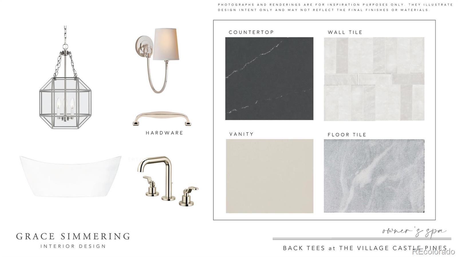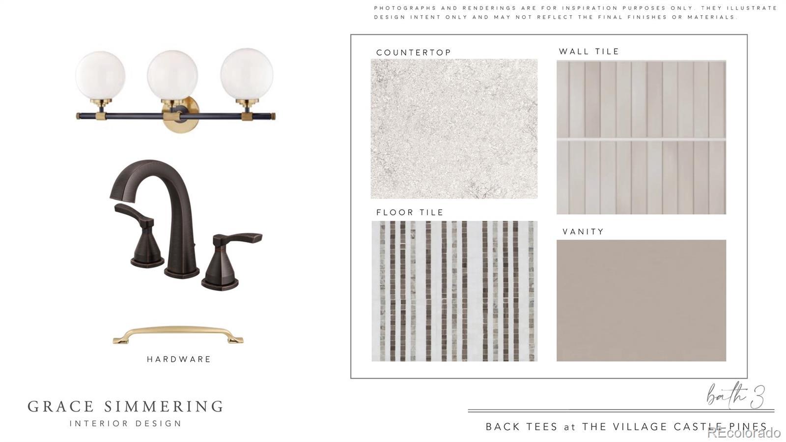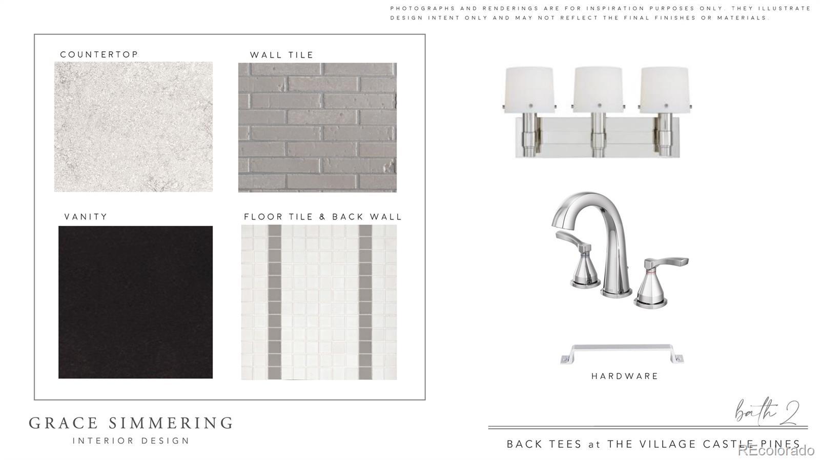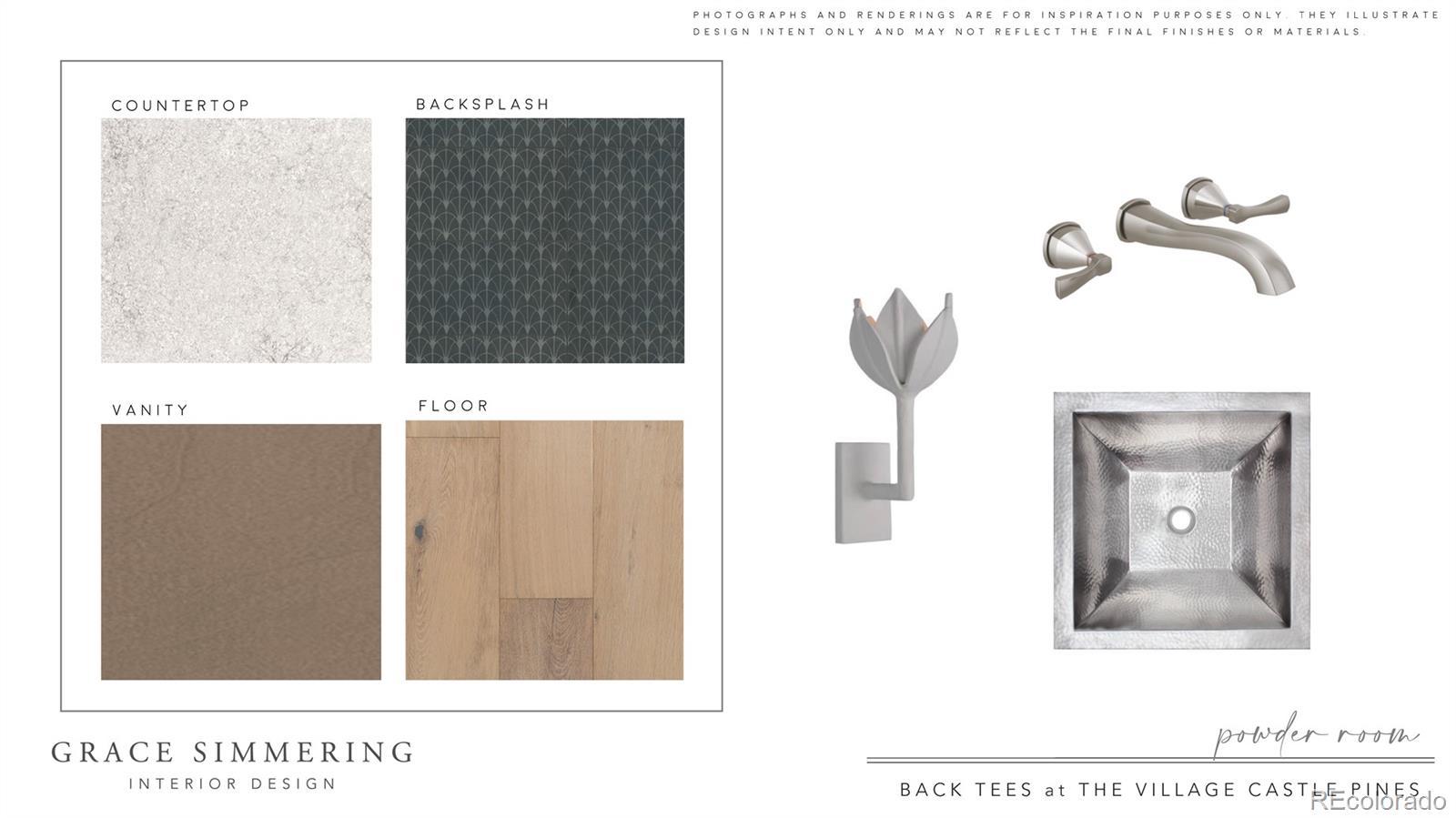 Under construction with completion in 1st quarter 2026. Designed by Godden Sudik Architects and Curated by Grace Simmering Interior Design. So many upgrades that are STANDARD!….hardwood floors throughout main level including stairs and study. 2nd bedroom with en-suite bath, smooth level 5 dry wall textured walls, 8 ft solid core doors, prewired for low voltage. Interior Design Package preselected by Grace Simmering Design to complement the exterior style: Decorative lighting package, quartz counter tops, tile backsplash, fixtures, hardware & sinks. Cabinets are from Kitchen Showcase and include undermount lighting in Kitchen and wet bar. The standard appliance package is Thermador: Double oven, gas stove top, 2 dishwashers, microwave + Zephyr Beverage Cooler. Kitchen w/nook and large island offers Flex Space (think of a Butler’s Pantry) & walk-in pantry. Main level great room w/ fireplace and built in shelves opens to covered deck with wide sliding doors, tongue & groove ceiling and “dry below” feature for the patio, optional outdoor kitchen and/or linier fireplace. Laundry access from foyer or primary bedroom. Owner’s Retreat/ Spa w/freestanding tub, oversized shower, shared walk-in closet with built-ins, optional fireplace. Lower-level walkout w/sliders includes 2 bedrooms w/en-suite baths, family room and workout space. Three car garage plus cart bay w/ 220 outlet. Landscape package (front and back) including in-ground sprinkler system. MOUNTAIN TRANSITIONAL PLAN 2, 4,181 Finished Square Feet: Soon to break ground at The BACK TEES CASTLE PINES VILLAGE