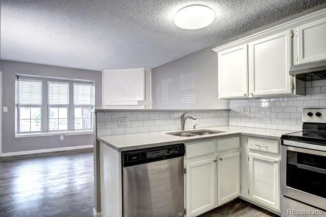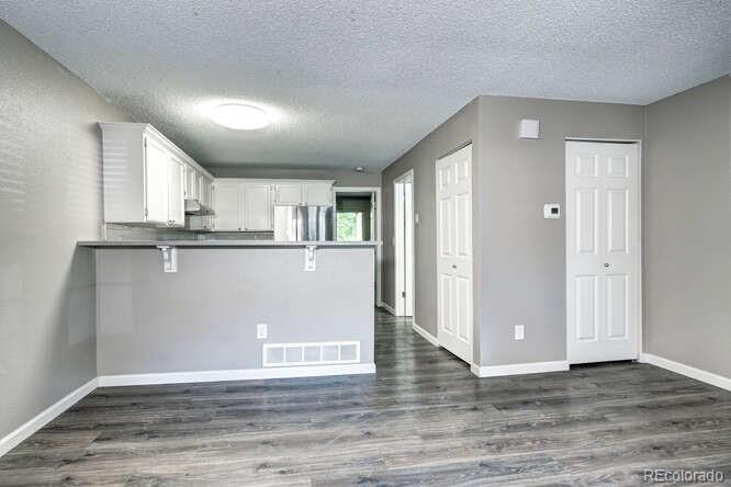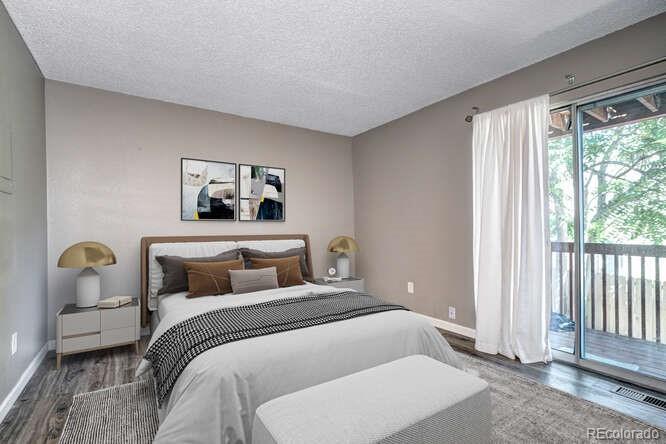 Welcome to this beautifully updated Quail Run Condo ~ Move-in ready and perfectly located on the desirable ground level! Step inside to find wide-plank laminate flooring and a cozy wood-burning fireplace, ideal for chilly Colorado evenings. The stunning kitchen features quartz countertops, stainless steel appliances, a stylish tile backsplash, and convenient bar seating. The spacious primary bedroom is situated at the rear of the home, offering privacy and access to a covered patio, the perfect spot to enjoy your morning coffee! This condo has been thoughtfully upgraded with a new HVAC system with central air, new water heater, new furnace, and an updated bathroom. Enjoy a reserved parking space right in front of your unit, plus all the fantastic HOA amenities — including a pool, clubhouse, and tennis courts. Great location near Buckley AFB, shopping, restaurants, schools, and parks. Don’t miss this opportunity ~ Welcome Home!