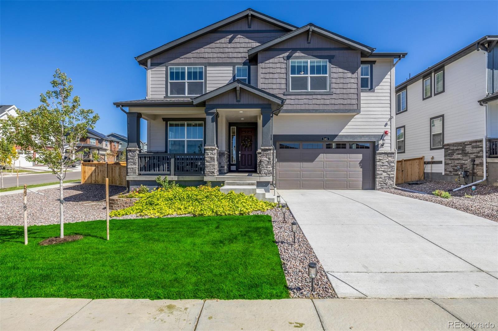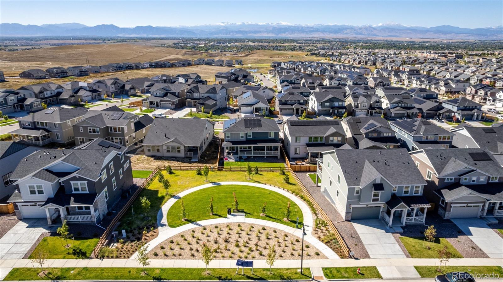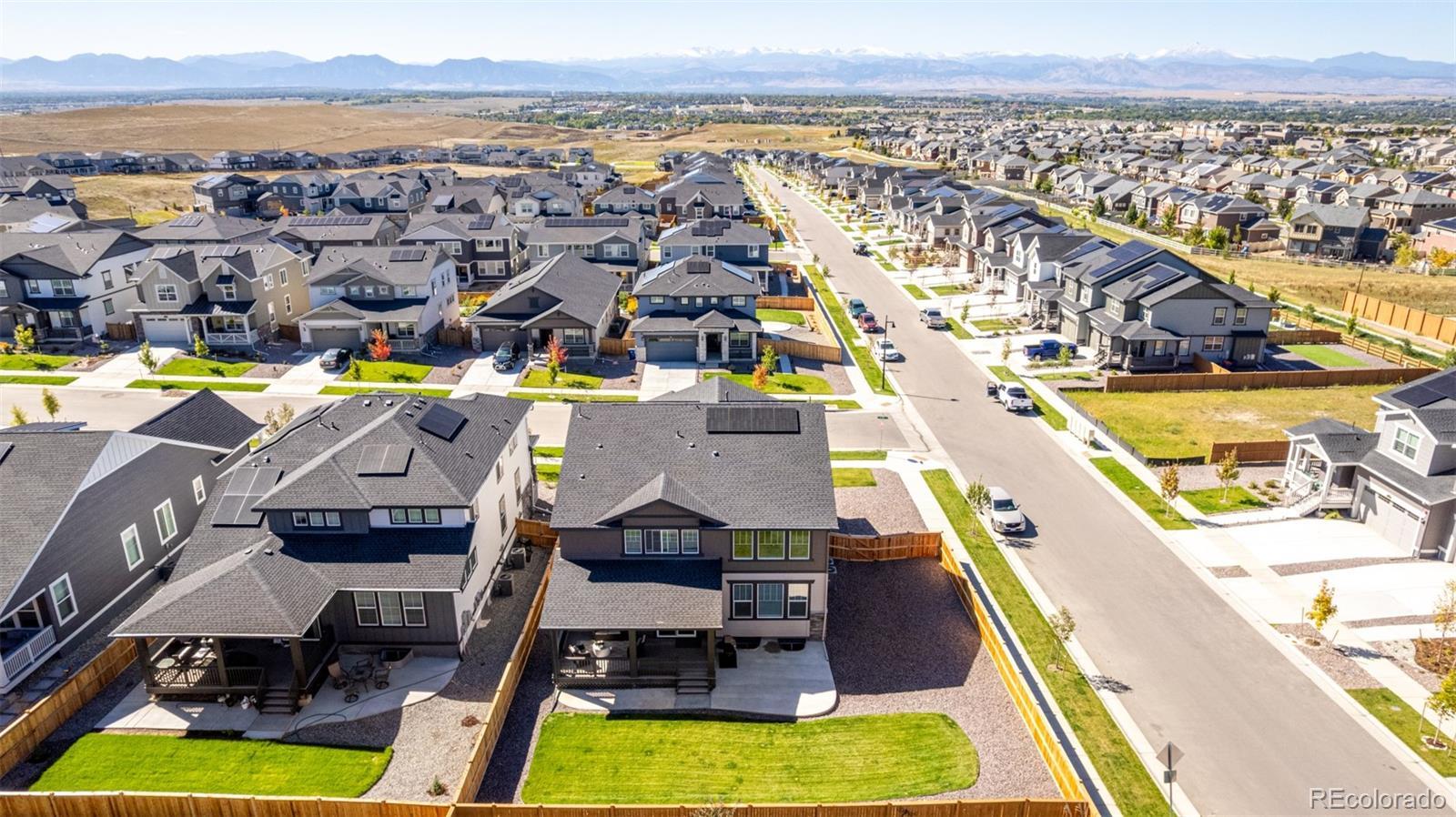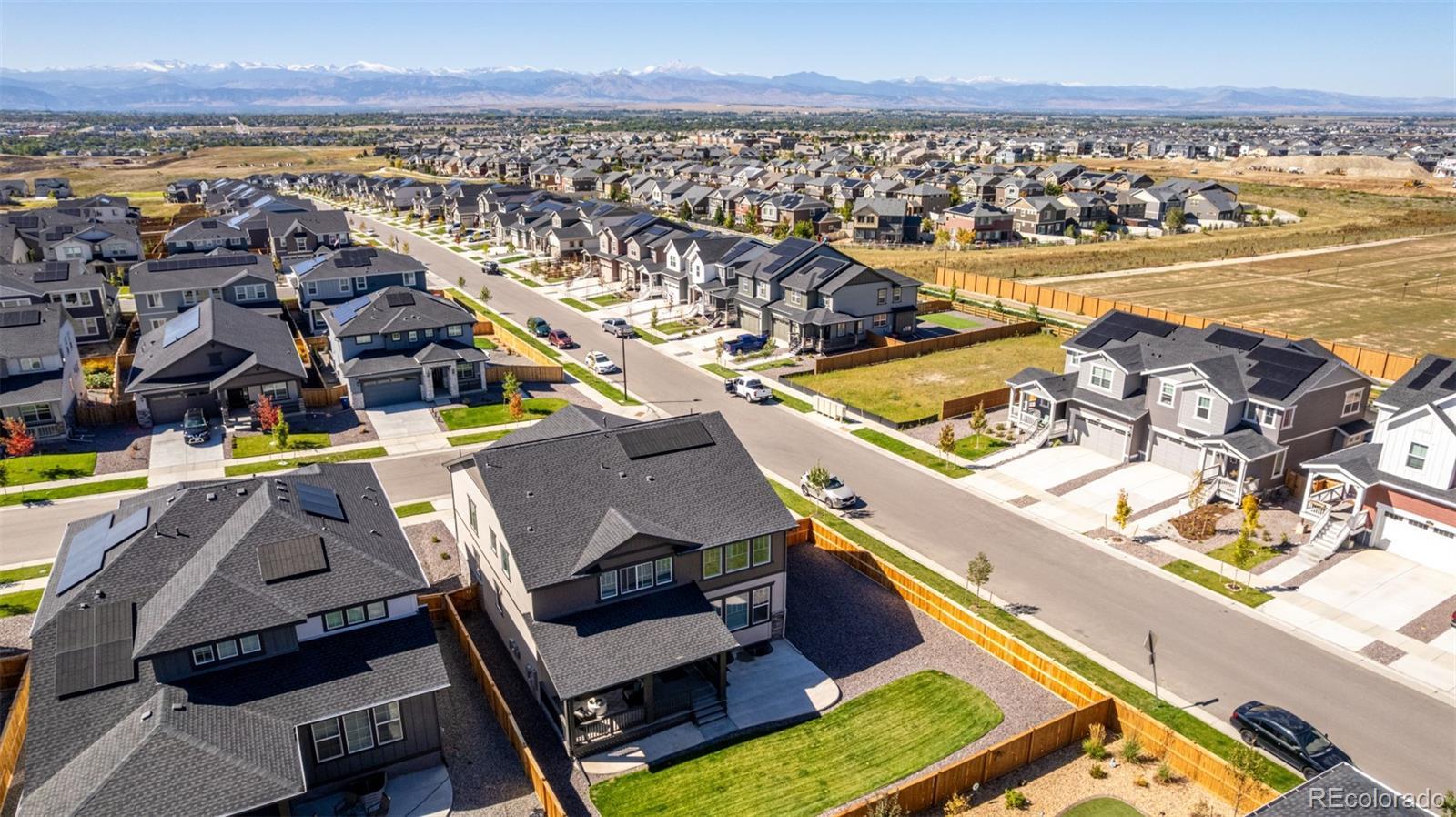 Welcome to the stunning better than new Stonehaven floorplan, perfectly situated on a desirable corner lot with views in Sunset Village! The main level is filled with natural light and offers a versatile bedroom/office, a full guest bath, EVP flooring, and a chef-inspired kitchen featuring a large eat-in island, beautiful quartz countertops and seamless flow into the soaring two-story great room. An open railing staircase leads upstairs, where you’ll find the spacious luxurious owner’s suite with a spa-style en-suite, a conveniently located laundry room, two secondary bedrooms with a Jack-and-Jill bath, plus a large loft with closet and views and full bath. The unfinished basement is ready for your personal touch, while the 3-car tandem garage, solar panels, and expanded covered patio add even more value. Builder warranty good through 5/19/26. All of this within Erie’s charming small-town atmosphere, complete with majestic mountain views, a 63,000 sq. ft. community center, and a 20,000 sq. ft. library. Enjoy nearby shopping, dining, parks, and trails—this home truly has it all!