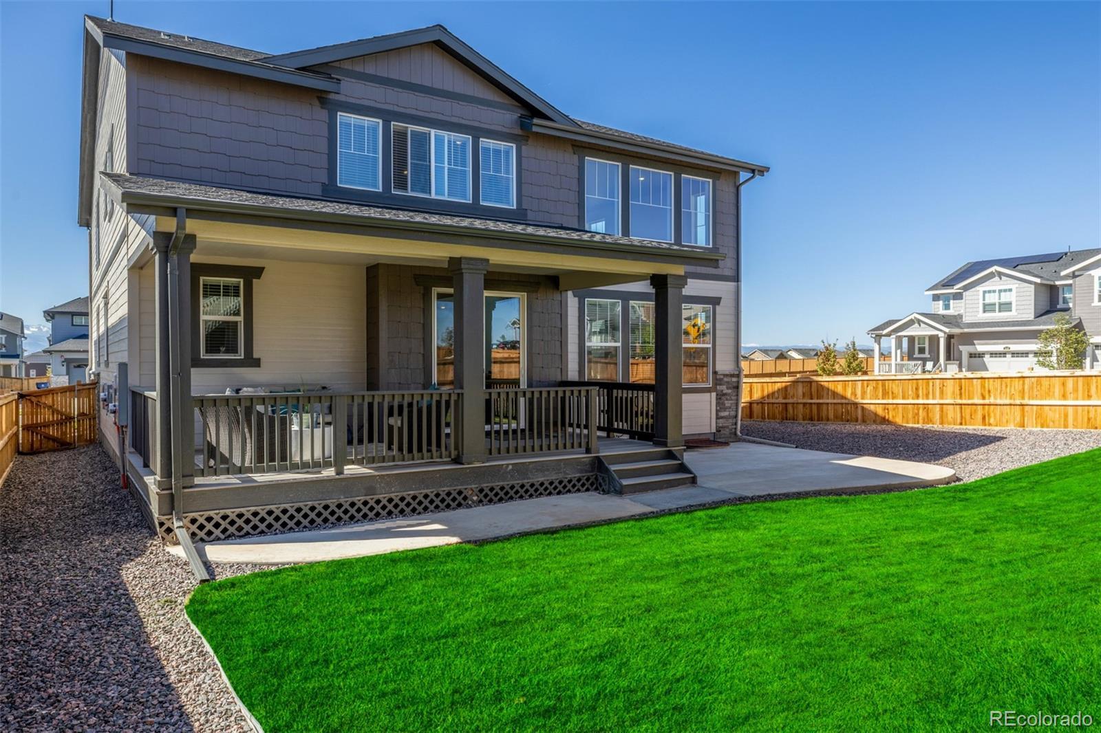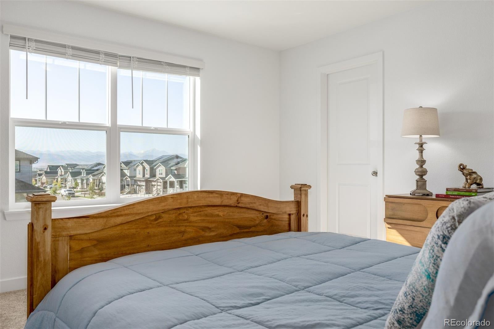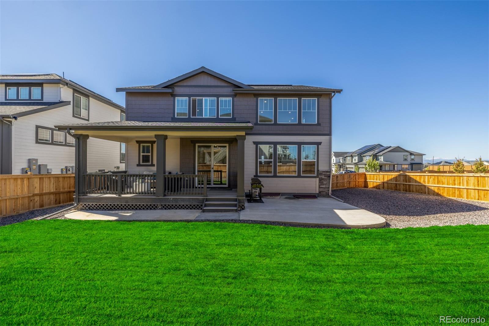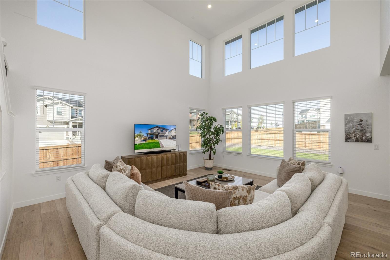 Welcome to the stunning better than new Stonehaven floorplan, perfectly situated on a desirable corner lot with views in Sunset Village! The main level is filled with natural light and offers a versatile bedroom/office, a full guest bath, EVP flooring, and a chef-inspired kitchen featuring a large eat-in island, beautiful quartz countertops and seamless flow into the soaring two-story great room. An open railing staircase leads upstairs, where you’ll find the spacious luxurious owner’s suite with a spa-style en-suite, a conveniently located laundry room, two secondary bedrooms with a Jack-and-Jill bath, plus a large loft with closet and views and full bath. The unfinished basement is ready for your personal touch, while the 3-car tandem garage, solar panels, and expanded covered patio add even more value. Builder warranty good through 5/19/26. All of this within Erie’s charming small-town atmosphere, complete with majestic mountain views, a 63,000 sq. ft. community center, and a 20,000 sq. ft. library. Enjoy nearby shopping, dining, parks, and trails—this home truly has it all!