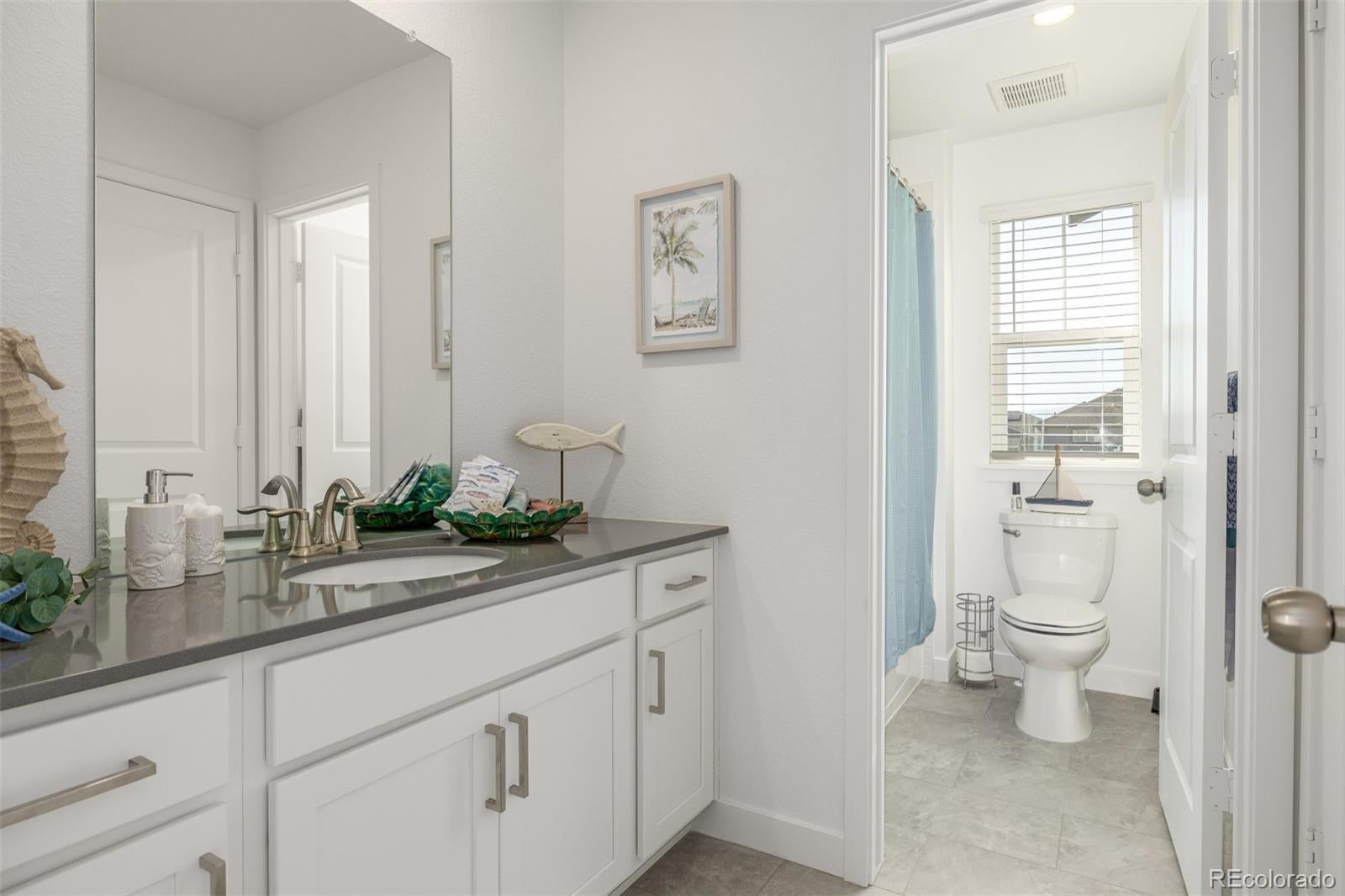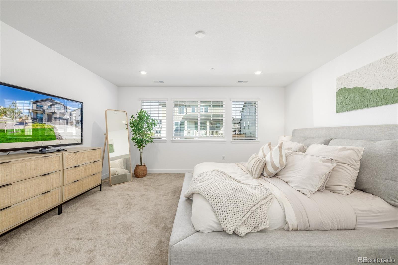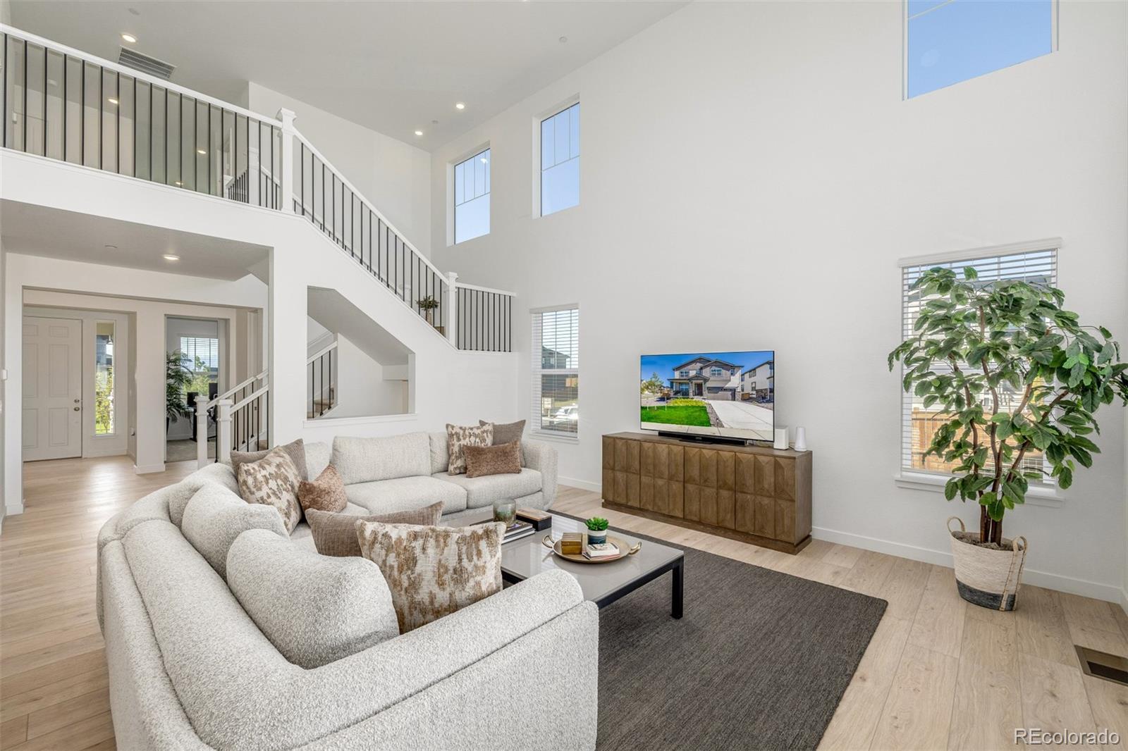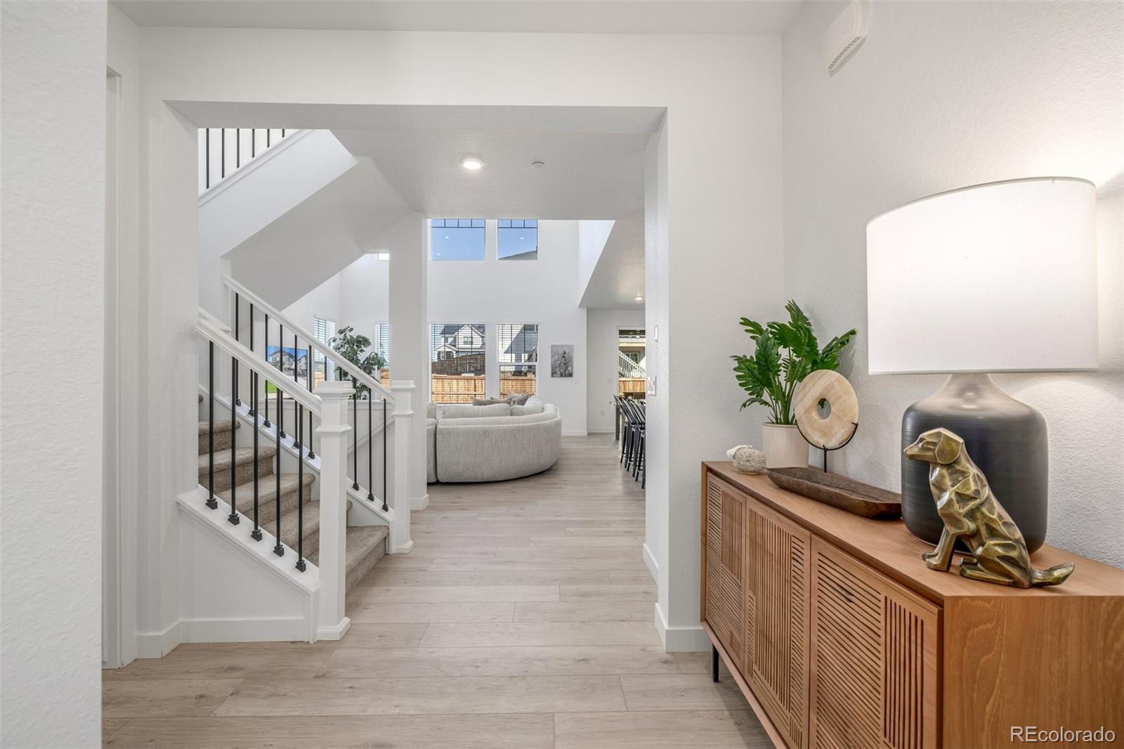 Welcome to the stunning better than new Stonehaven floorplan, perfectly situated on a desirable corner lot with views in Sunset Village! The main level is filled with natural light and offers a versatile bedroom/office, a full guest bath, EVP flooring, and a chef-inspired kitchen featuring a large eat-in island, beautiful quartz countertops and seamless flow into the soaring two-story great room. An open railing staircase leads upstairs, where you’ll find the spacious luxurious owner’s suite with a spa-style en-suite, a conveniently located laundry room, two secondary bedrooms with a Jack-and-Jill bath, plus a large loft with closet and views and full bath. The unfinished basement is ready for your personal touch, while the 3-car tandem garage, solar panels, and expanded covered patio add even more value. Builder warranty good through 5/19/26. All of this within Erie’s charming small-town atmosphere, complete with majestic mountain views, a 63,000 sq. ft. community center, and a 20,000 sq. ft. library. Enjoy nearby shopping, dining, parks, and trails—this home truly has it all!