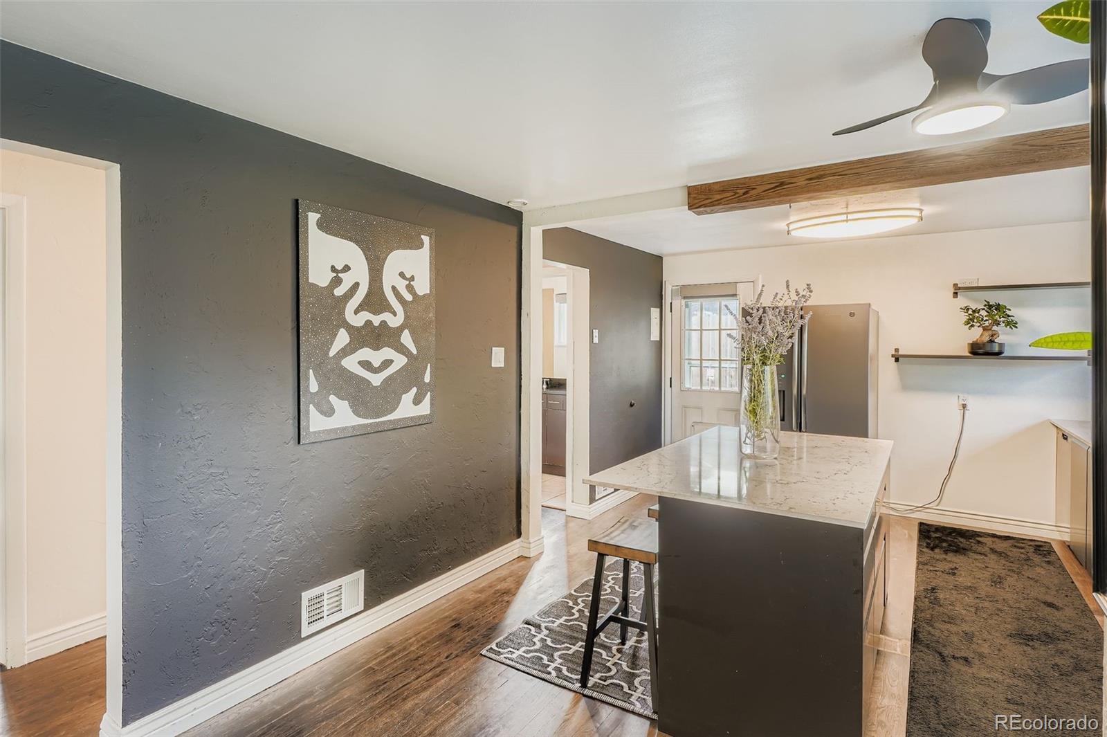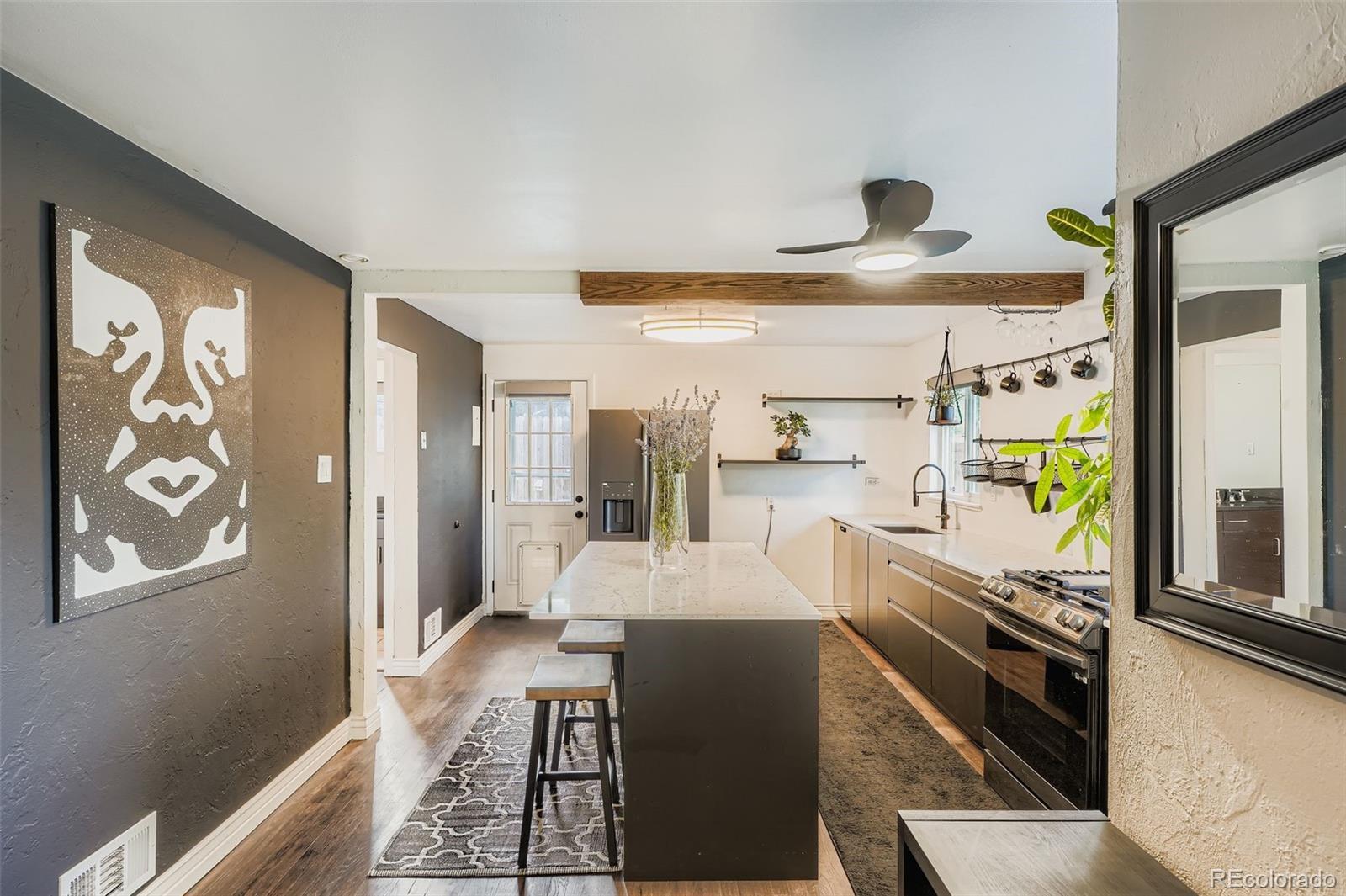 This updated Athmar Park home blends modern upgrades with exceptional outdoor living. Inside, the newly renovated kitchen steals the show with a spacious island, sleek handleless cabinets, and granite countertops — the perfect combination of form and function. Refinished hardwood floors flow throughout, creating a warm, inviting backdrop for everyday living. This home features a new roof on both the house and garage along with beautifully crafted Hunter Douglas blinds throughout. Though a two-bedroom, one-bath layout, the property lives large thanks to its expansive outdoor spaces. Enjoy summer evenings on the generous patio, or retreat to the oversized backyard that offers endless possibilities for entertaining, gardening, or simply relaxing. One of the home’s standout features is the oversized finished two-car garage — drywalled and ready to be more than just storage. Whether you dream of a personal gym, creative workshop, or hobbyist’s haven, this garage delivers rare flexibility in the heart of Denver. Set in Athmar Park, you’ll have easy access to Huston Lake Park’s trails, courts, and open green space, with quick connections to downtown Denver, South Broadway, and the Santa Fe Arts District for dining, culture, and nightlife. Commuters will love the proximity to I-25 and light rail, while outdoor enthusiasts can explore nearby Barnum Park and the South Platte River Trail. This home offers the best of both worlds: modern living, versatile space, and a vibrant community just minutes from the city.