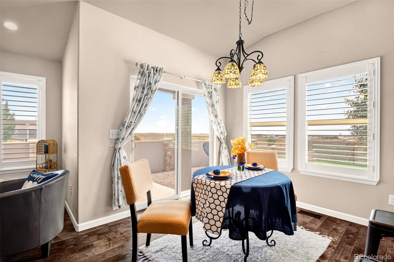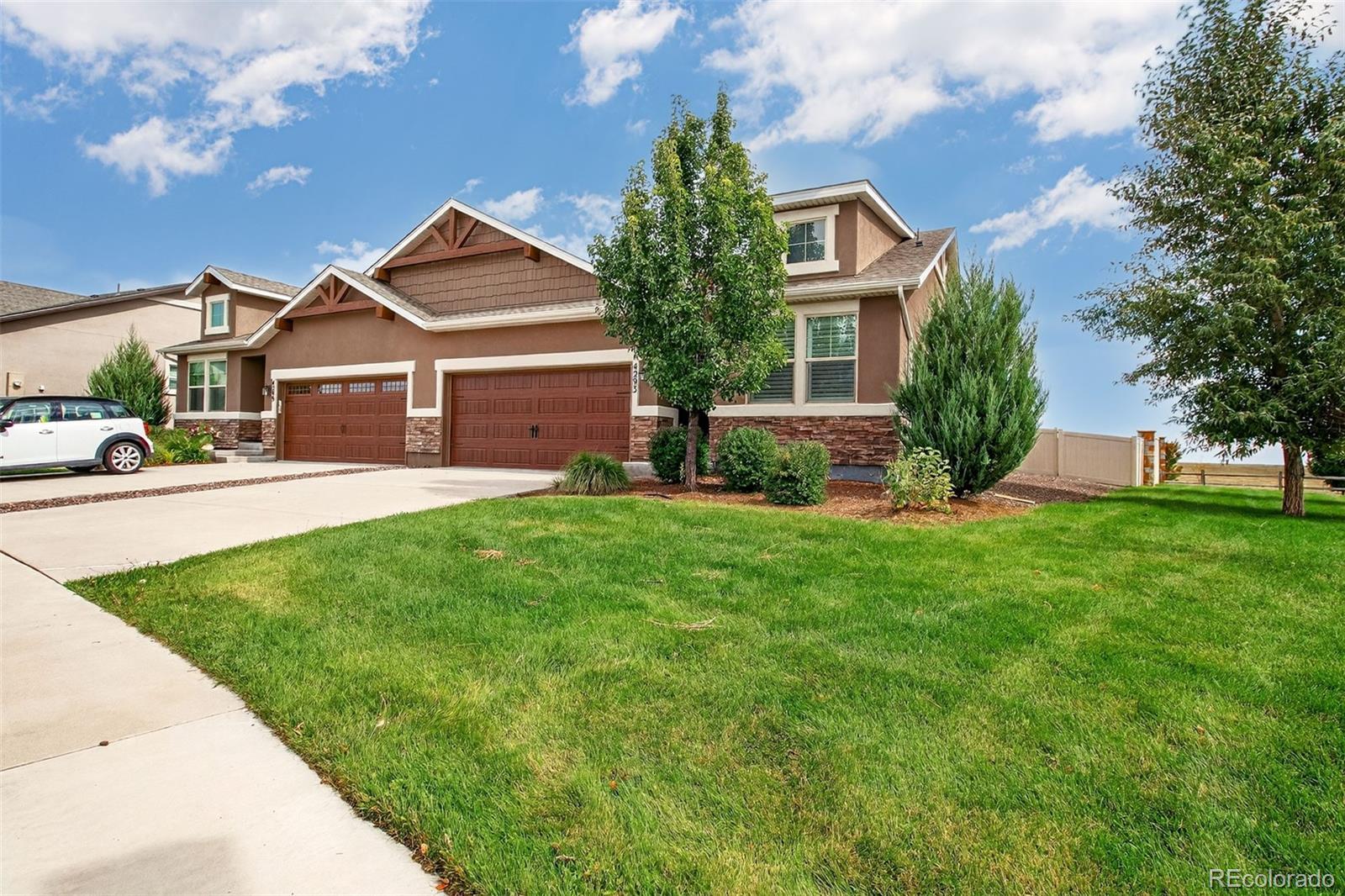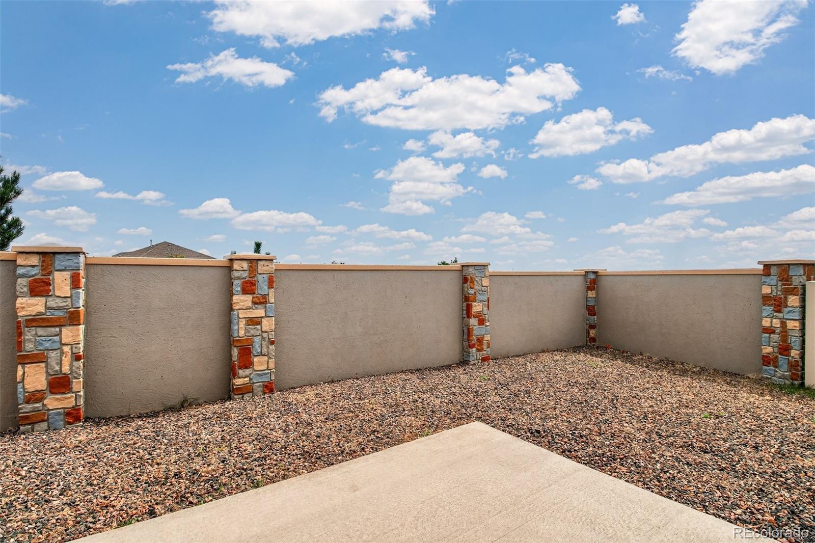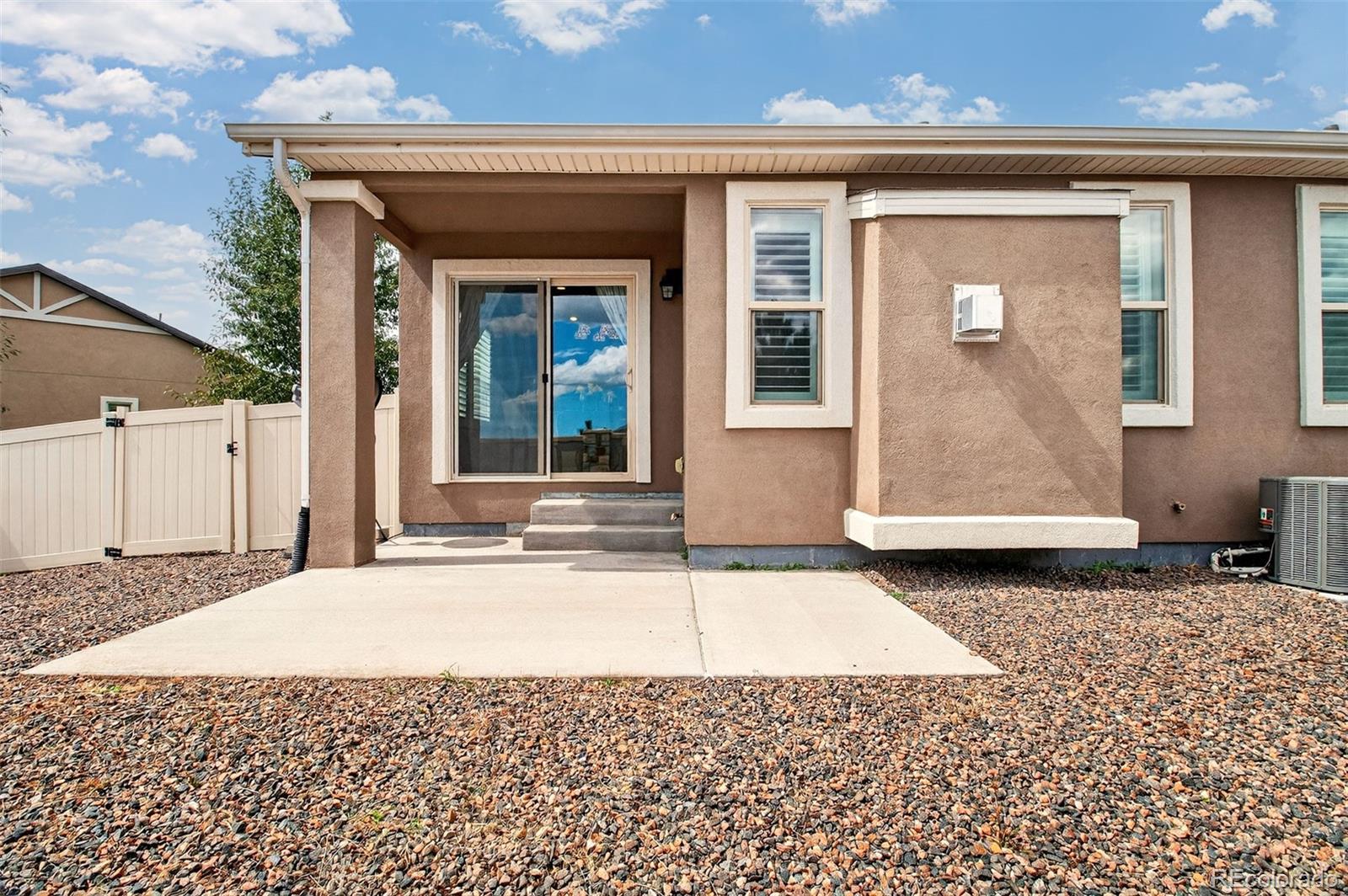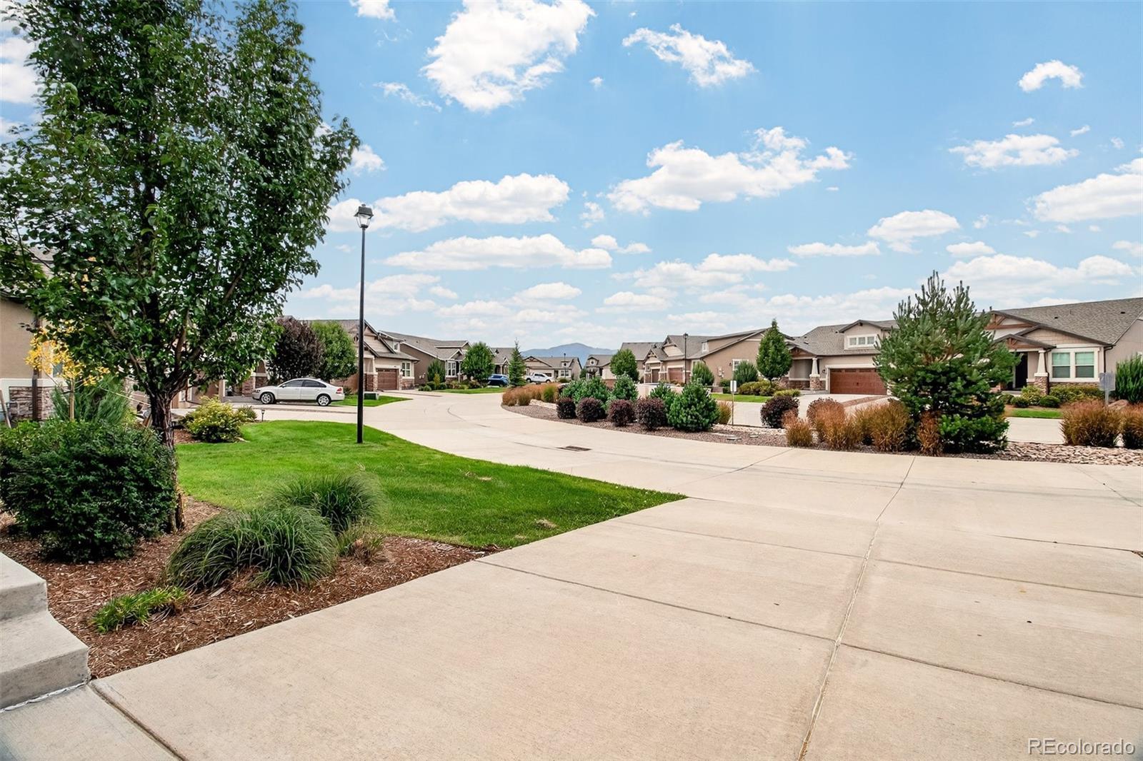 Welcome to low-maintenance living in the desirable Enclaves at Mountain Vista Ranch! This 2018 ranch-style patio home offers 3 bedrooms, 3 bathrooms, and over 2,300 sq. ft. of finished space, thoughtfully designed for both comfort and convenience. Step inside to an inviting open-concept main level featuring vaulted ceilings, abundant natural light, and a cozy gas log fireplace that anchors the living room. The kitchen blends style and functionality with a breakfast bar, granite countertops, stainless steel appliances, and plenty of cabinet space for storage. The spacious main-level primary suite offers a private retreat with a walk-in closet and an en-suite bath. An additional main-level office with French doors creates the perfect environment for remote work, a reading nook, or creative space. Downstairs, the finished basement expands your living options with a generous family room, a wet bar for entertaining, two additional bedrooms, a full bath, and an oversized utility/storage room. Outdoor living is just as enjoyable, with a private back patio ideal for relaxing mornings or evening gatherings and larger yard space. Residents also enjoy access to community walking trails, parks, and playgrounds—perfect for an active lifestyle. Located near shopping, dining, and District 49 schools, with quick access to Powers Blvd. and Marksheffel Rd., this move-in ready home combines modern finishes, a functional floor plan, and an unbeatable location.
