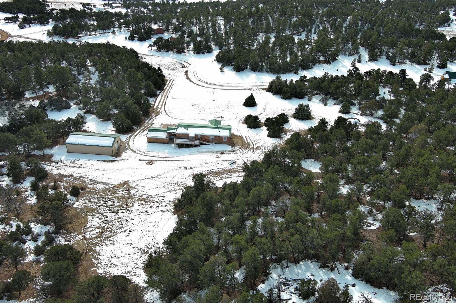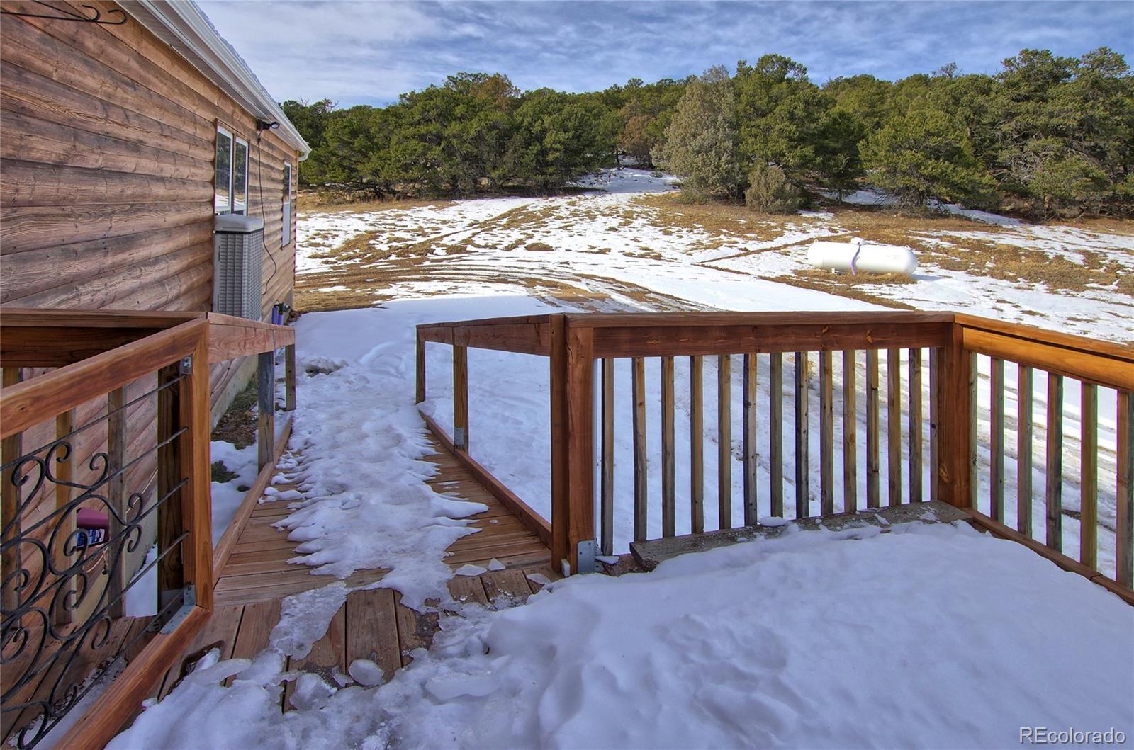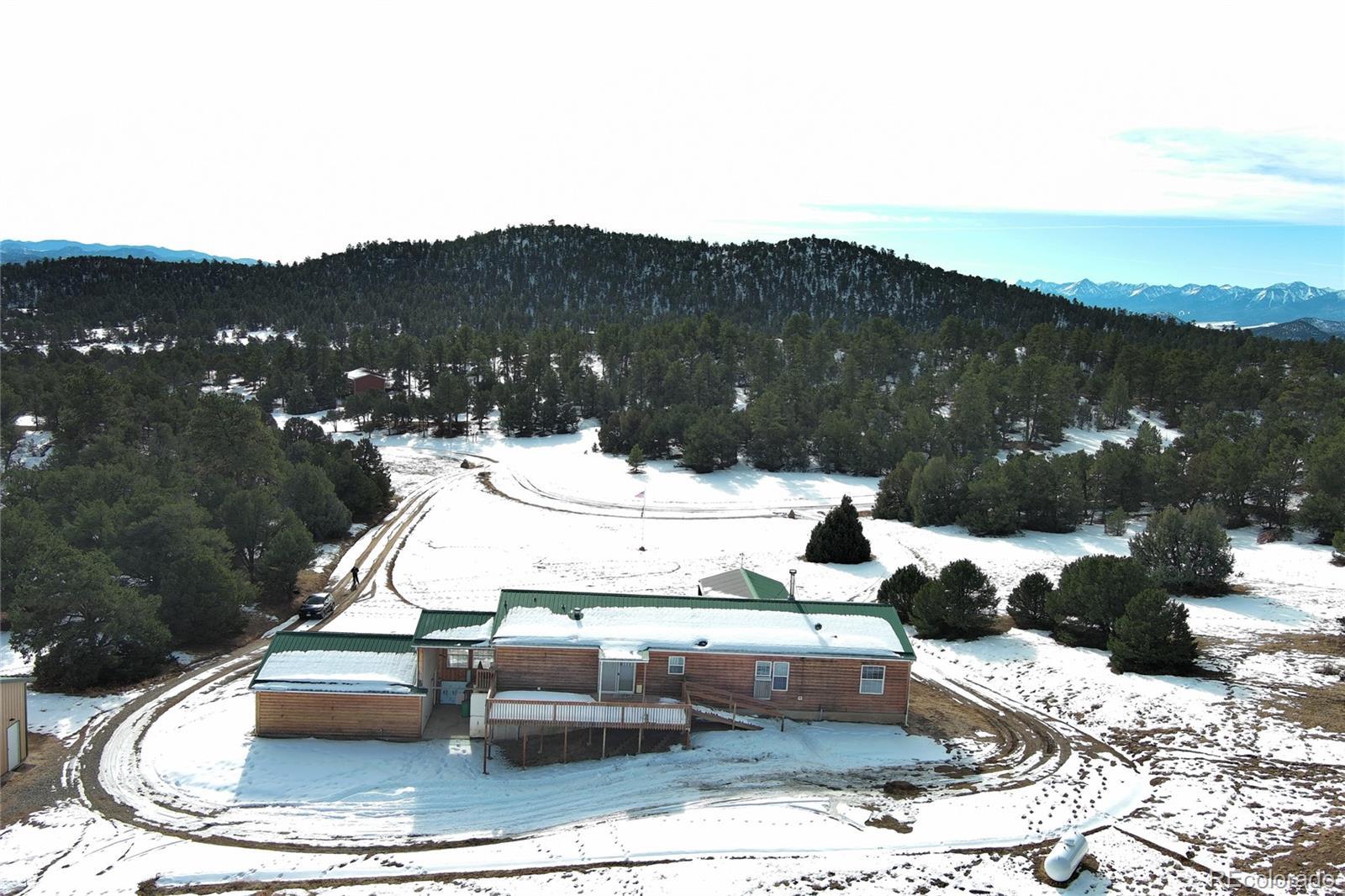 You have found your private oasis, a 5/3/2 log sided home nested in the trees on 5+ acres as a brick walkway leads you to a 13 x 9 wood deck entering into the ceramic tiled foyer. Living room wood burning custom built fireplace comes with a remote to control the temperature on cozy, winter evenings. Kitchen offers, island, gas cooking, huge pantry, counter bar, cabinets galore, desk area, and walks out to wood deck with heated ramp. Basement entry is custom barn doors and the very spacious family room has a pellet stove, dry bar, and lots of storage. This home brings in a lot of natural light. All bedrooms are equipped with ceiling fans, as are the family and living rooms. Lvt floors are in all baths, kitchen, dining room, and laundry room. The bedrooms, living and family rooms are carpeted. Scenic landscape and beautiful mountain views with secluded acreage draws you here to this property...but it is the huge shop described below plus the other improvements listed too that make you want to stay... ~30' x 56' x 12' eave metal shop (6 yrs): concrete floor, 2" blown in insulation on walls and 3" blown in insulation on ceiling, front and back 10' x 12' bay doors with electric opener on front and 3 remotes, front and back entrance doors, completely wired with receptacles and LED lights, wired for welding machine by front and back bay doors, piping and fittings for air compressor. ~Replaced OSB siding and log ends (7 yrs), Water filter & softener (6 yrs), ~RV 30 amp power box (5 yrs), widened & insulated garage doors, bladder/pressure tank, 50 gal water heater, swamp cooler, refrigerator, barn doors, stone/brick fireplace (4 yrs), front and back decks (3 yrs), kitchen updated, propane stove, main flooring (2 yrs), basement bedroom closets (1 yr), exterior stain (10/24) all interior wall & ceiling paint (12/24).