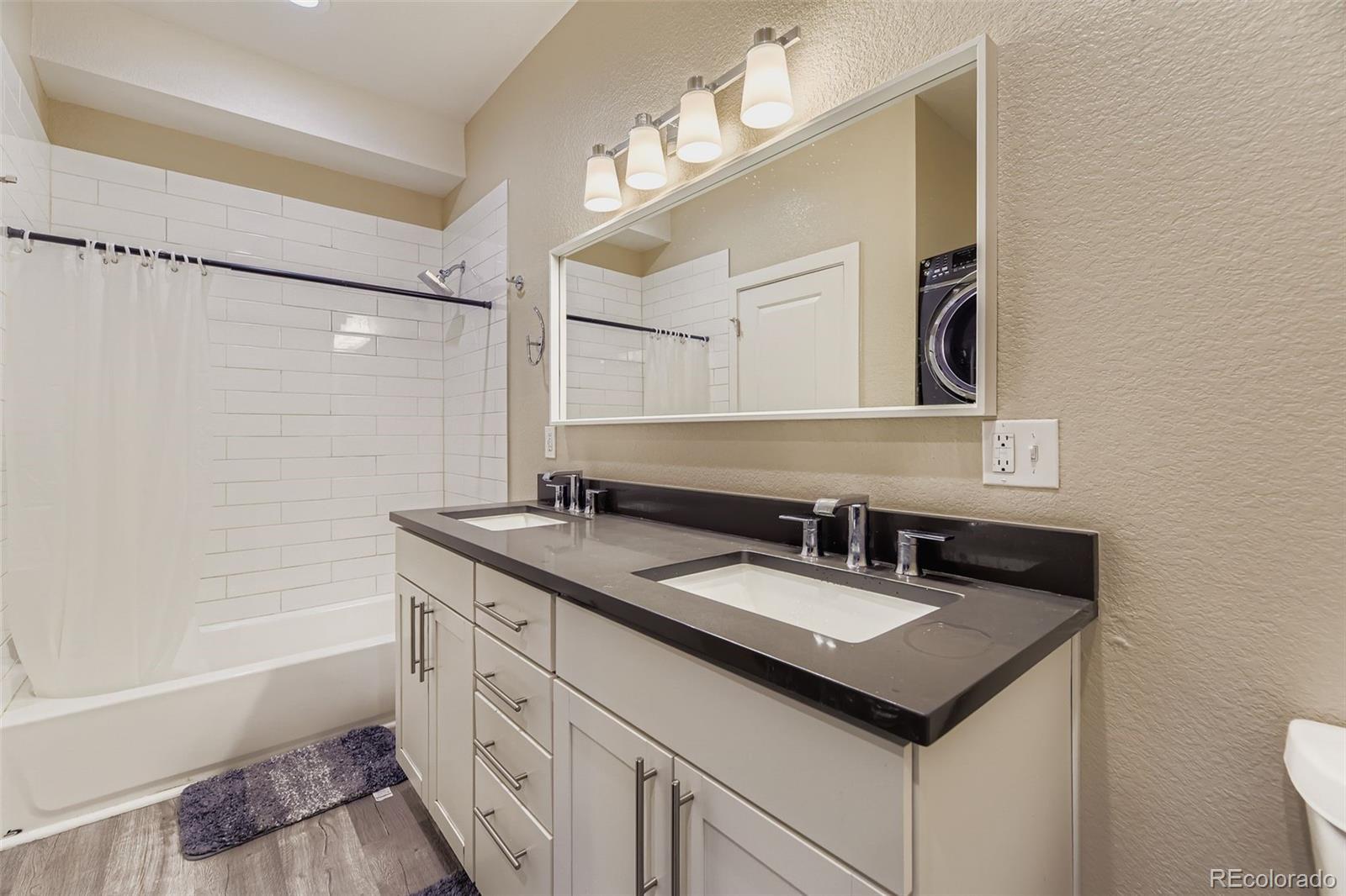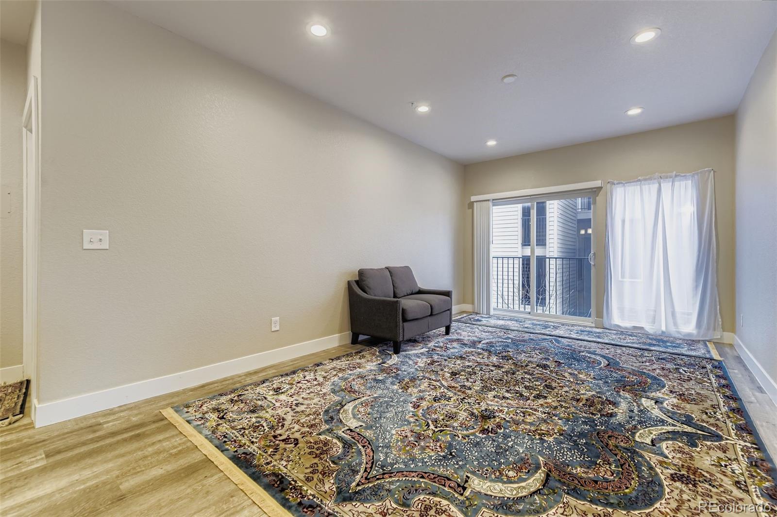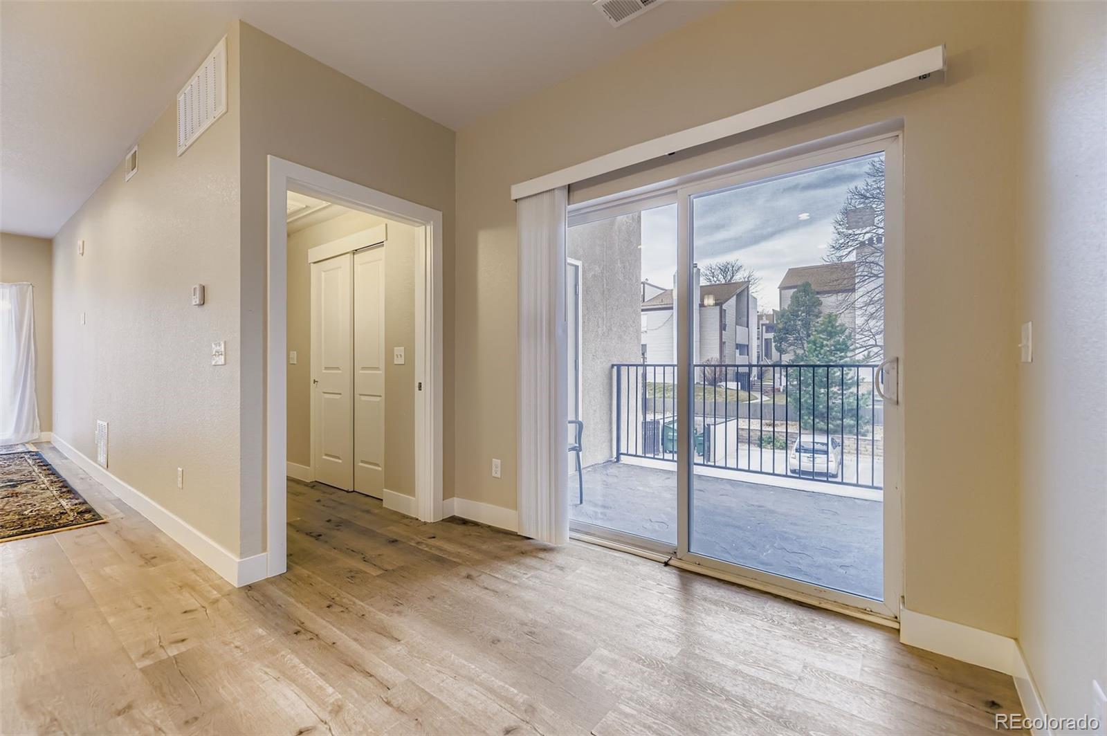 Beautiful contemporary 2-bedroom, 2-bath condominium ideally located in a prime setting. Recently refreshed with new interior paint, this light-filled residence offers an open-concept layout. The expansive living area seamlessly connects to the dining space and kitchen, creating an ideal environment for both entertaining and everyday living. The modern kitchen features a generous island, white cabinetry with soft-close doors, dark gray quartz countertops, and sleek finishes throughout. Both bedrooms are well-proportioned, with the primary suite offering a spacious walk-in closet for added convenience. Located on the second floor, the unit includes a private balcony—perfect for relaxing outdoors. Additional highlights include a private garage space (D2), along with an assigned surface parking space (#44). Perfectly positioned between Cherry Creek State Park and Meadow Hills Golf Course, the property also offers easy access to Nine Mile Station, the Denver Tech Center, and DIA via I-225—combining comfort, style, and exceptional convenience.