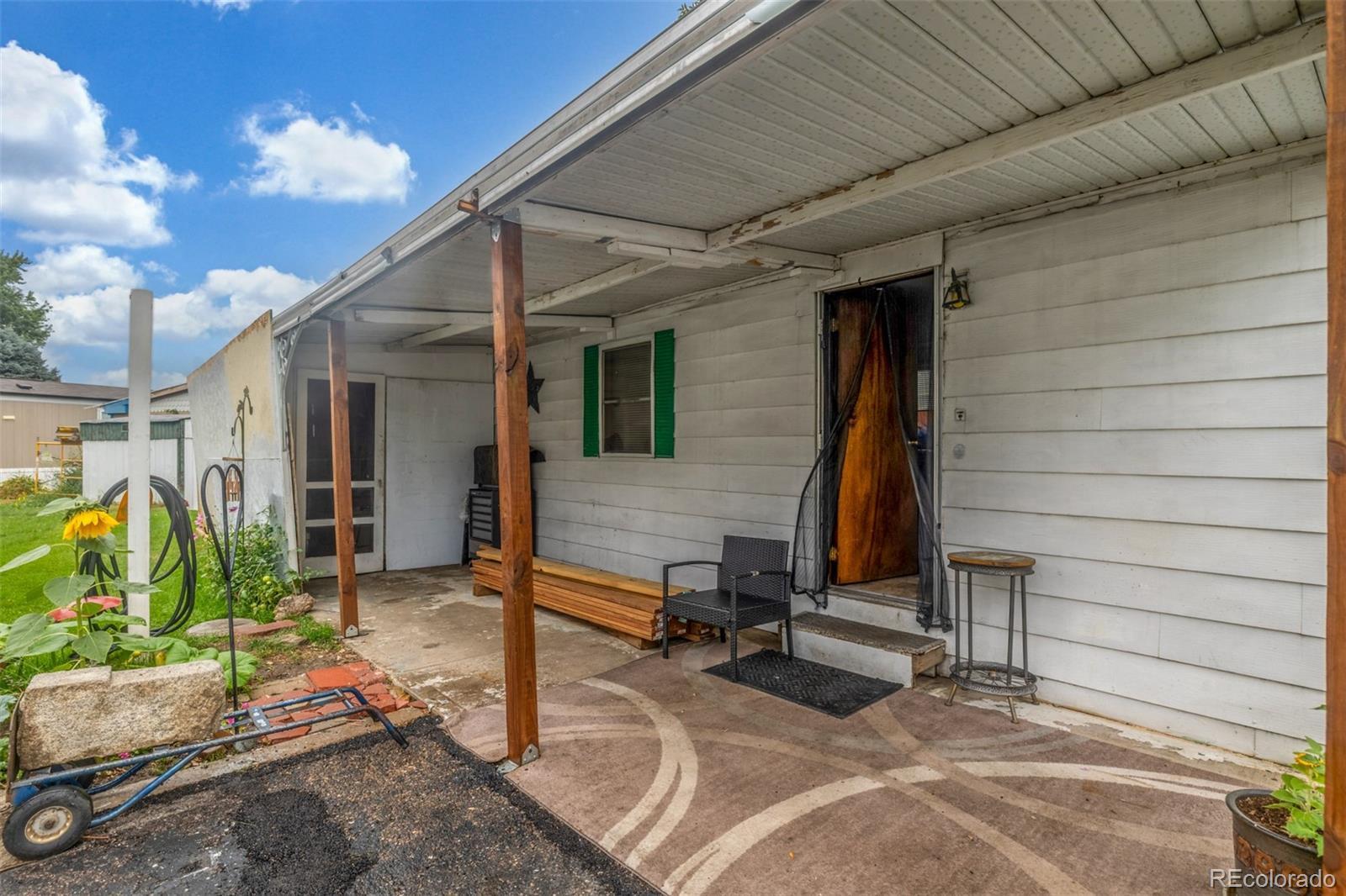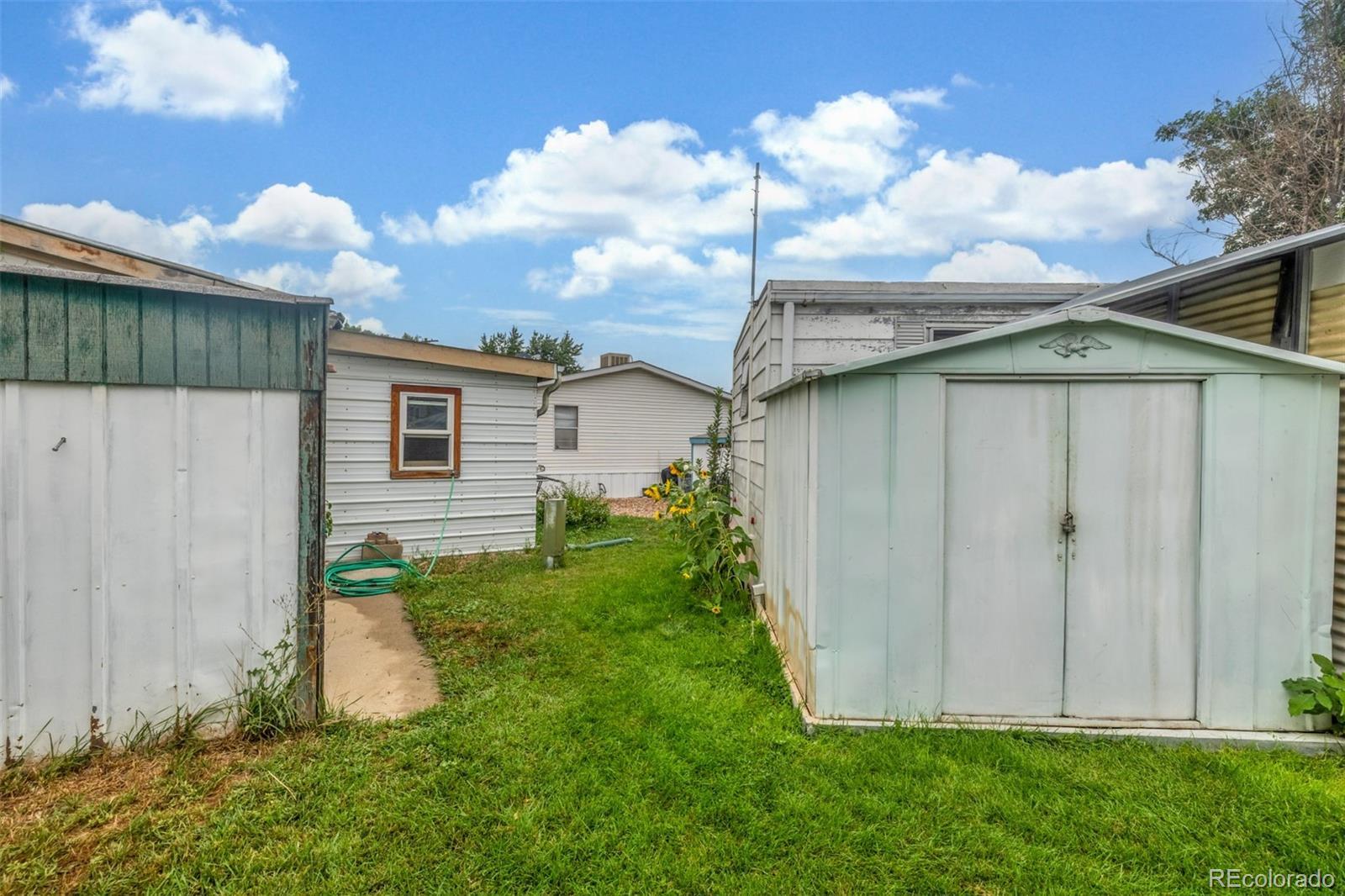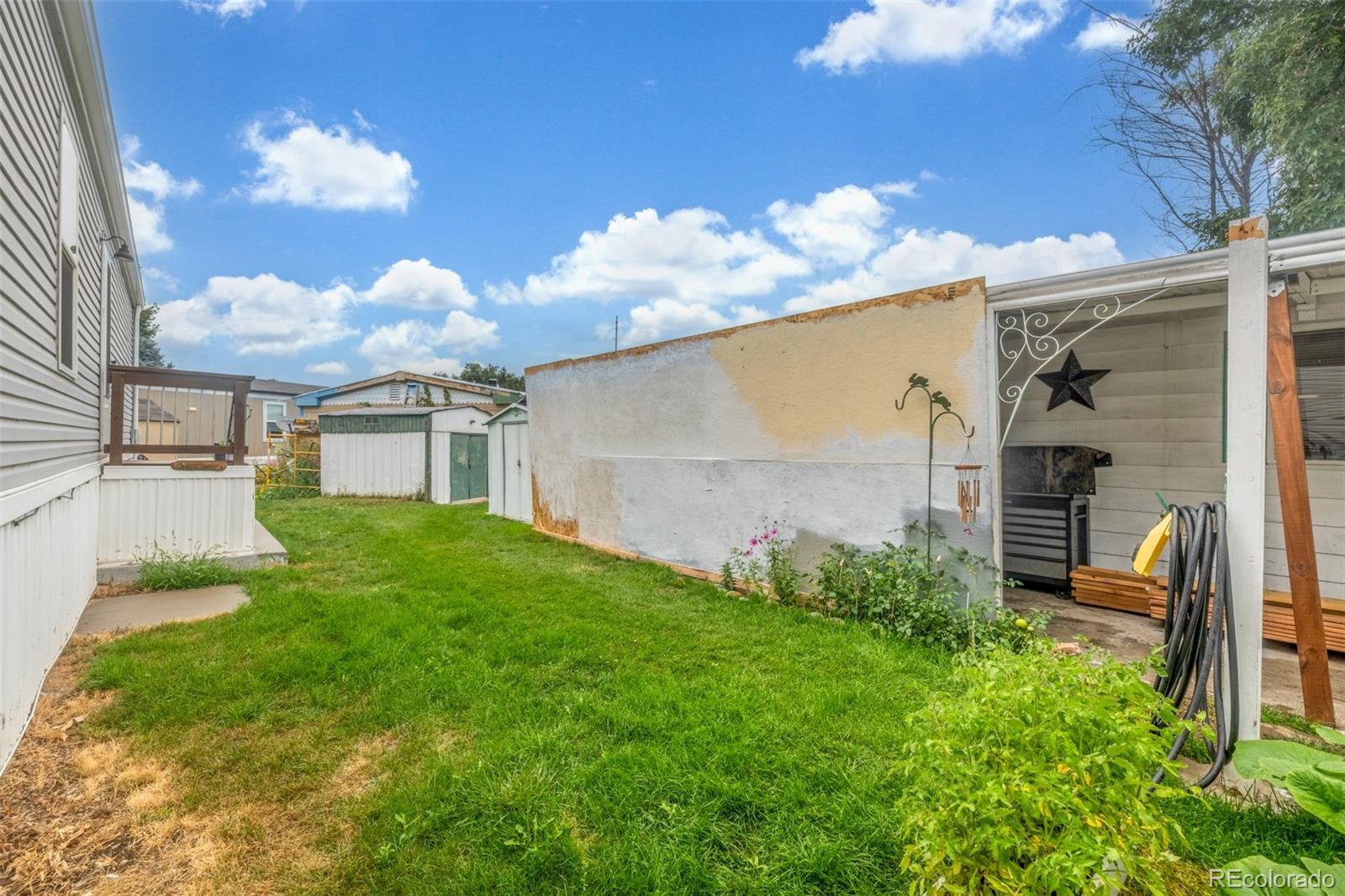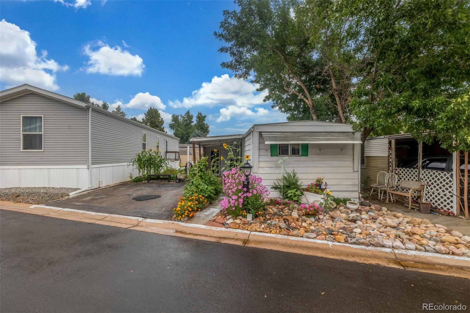 Welcome to this cozy 2-bedroom, 1-bath home tucked away in Bear Creek Village! This home offers a functional layout and great potential for those looking to add their own personal touches. The living room is light and open, leading into an updated kitchen with updated appliances including a gas range and new refrigerator, plus plenty of cabinet storage. The two bedrooms are comfortable and versatile, while the full bath provides everything you need with additional room for updates to make it your own. A convenient laundry area adds extra storage and practicality. Outside, enjoy a large covered front patio perfect for relaxing, plus a storage addition, 2 off-street parking, and a spacious backyard with garden beds, mature trees, and storage sheds—ideal for gardening, hobbies, or simply soaking up the Colorado sunshine. This park is divinely located near parks, shopping, dining, and with easy access to major roads, this home offers an affordable opportunity to own in Denver.