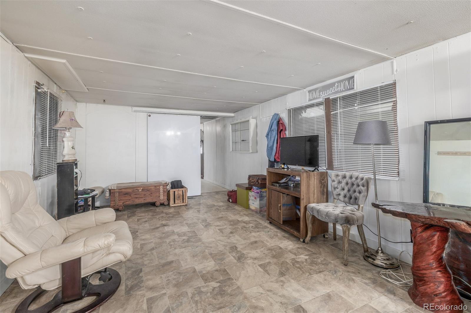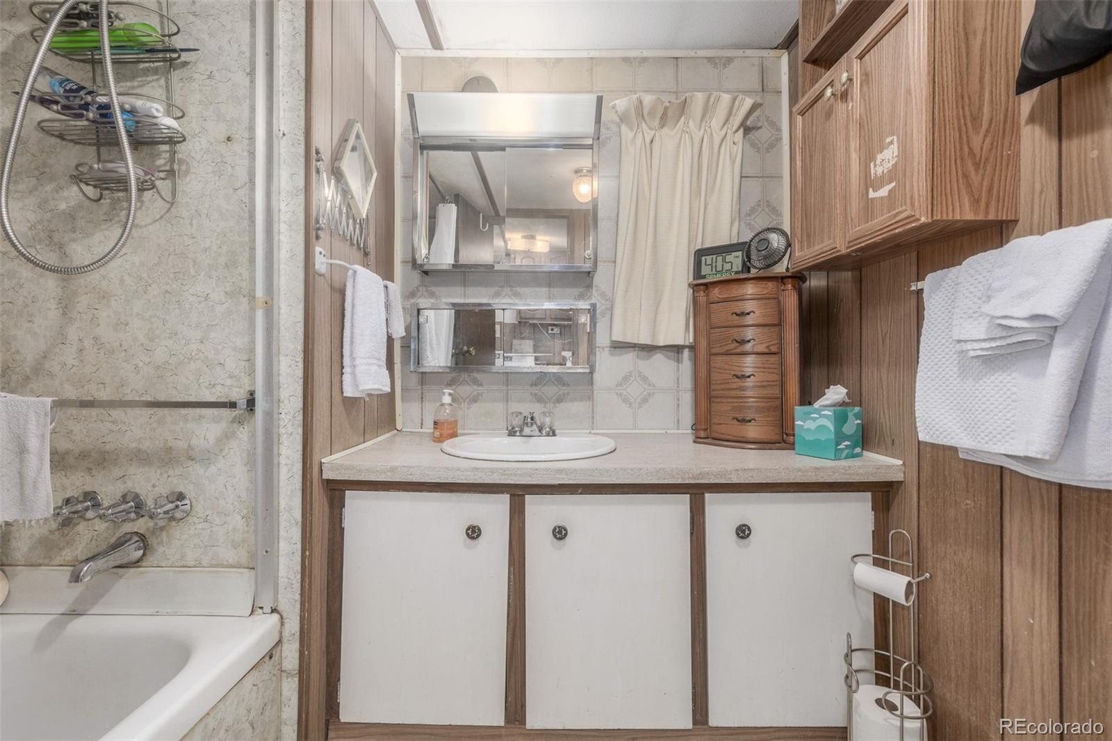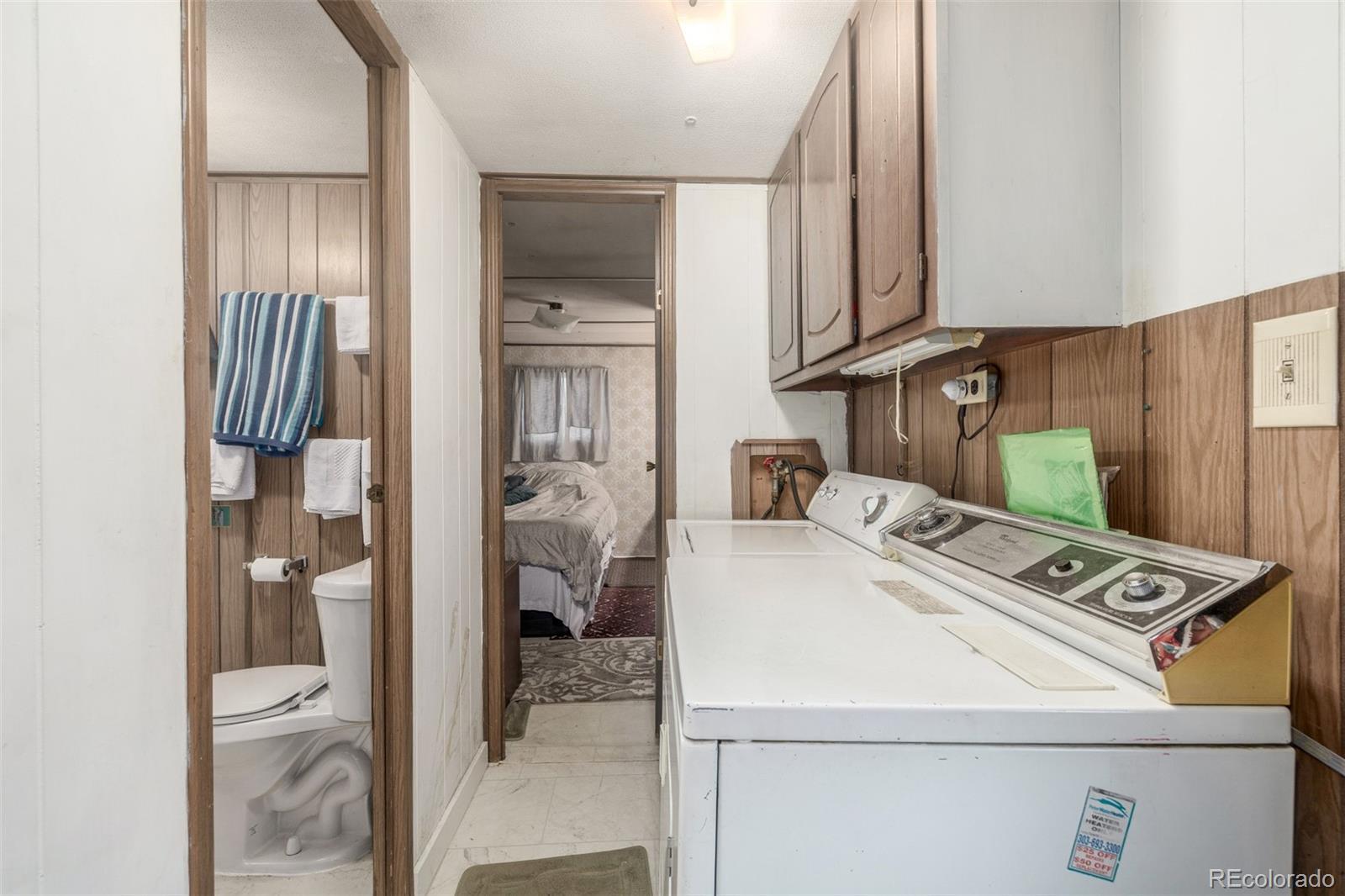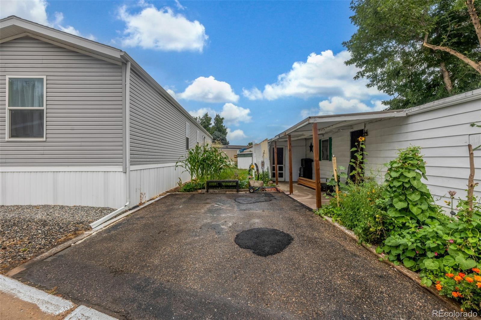 Welcome to this cozy 2-bedroom, 1-bath home tucked away in Bear Creek Village! This home offers a functional layout and great potential for those looking to add their own personal touches. The living room is light and open, leading into an updated kitchen with updated appliances including a gas range and new refrigerator, plus plenty of cabinet storage. The two bedrooms are comfortable and versatile, while the full bath provides everything you need with additional room for updates to make it your own. A convenient laundry area adds extra storage and practicality. Outside, enjoy a large covered front patio perfect for relaxing, plus a storage addition, 2 off-street parking, and a spacious backyard with garden beds, mature trees, and storage sheds—ideal for gardening, hobbies, or simply soaking up the Colorado sunshine. This park is divinely located near parks, shopping, dining, and with easy access to major roads, this home offers an affordable opportunity to own in Denver.