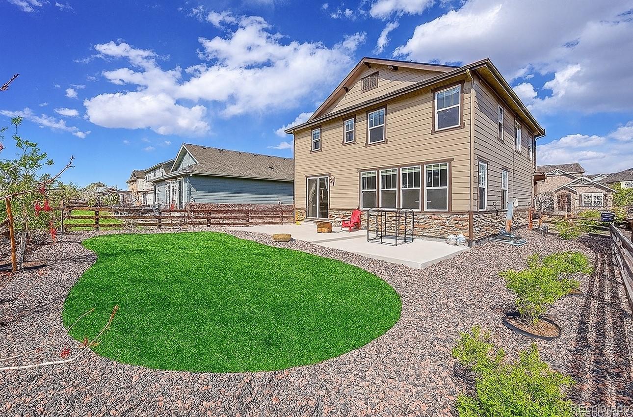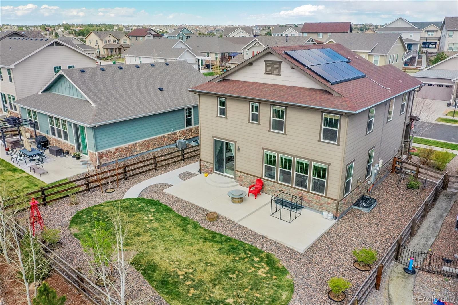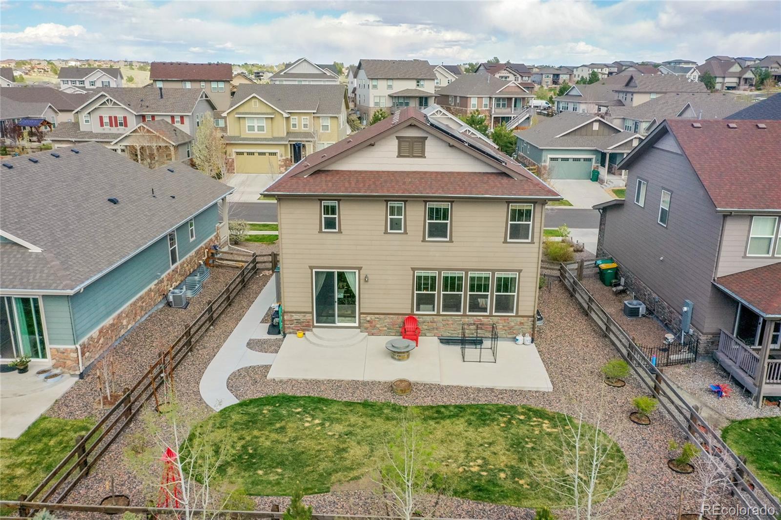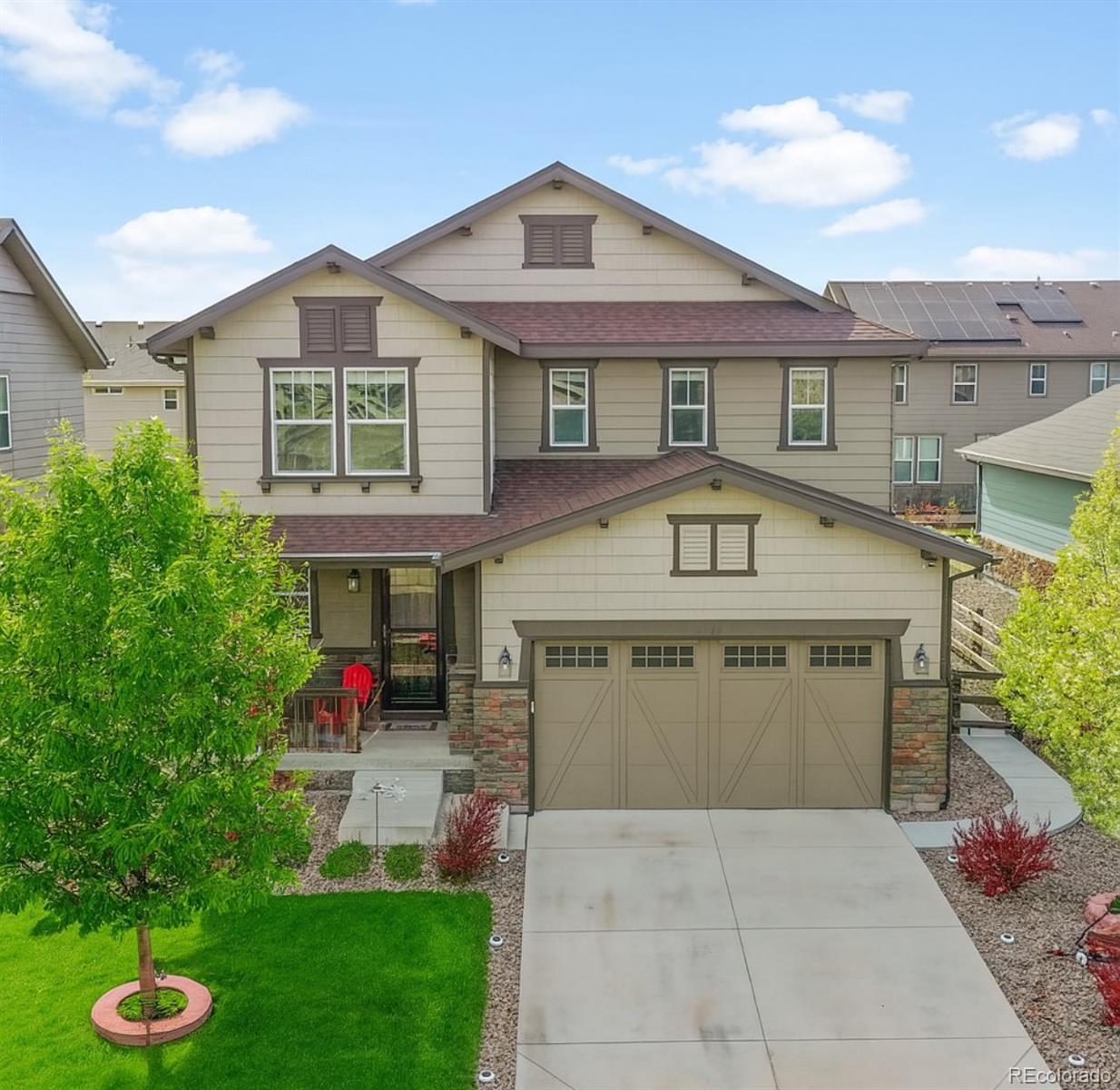 This stunning 3-bed, 3-bath residence features a spacious open floor plan that’s ideal for both modern living and entertaining. The bright, inviting living room—accentuated by a cozy fireplace. Prepare to be impressed by the kitchen, complete with granite countertops, a large eat-in island, upgraded cabinetry with soft-close drawers, and stainless steel appliances. The gas range is perfect for the home chef. Whether you envision a home theater, game room, bar, gym, or additional living spaces, the possibilities for finishing this full basement are endless — and the rare feature of two egress windows makes adding extra bedrooms an effortless option. Step through the sliding glass door to discover a charming backyard—beautifully landscaped. The expansive patio is ideal for entertaining, while the thoughtfully designed walkways add a special touch. Upstairs, you’ll find 3 well-appointed bedrooms, a loft, and primary suite with dual closets and a a double vanity bath with ample counter space. Additional highlights include owned solar panels (paid in full) for energy efficiency, and thoughtful upgrades like luxury vinyl flooring, a whole-home humidifier, and an upgraded electrical panel. The roof was replaced in 2019. With an added AC unit, upgraded furnace,and radon mitigation system. Enjoy the convenience of a nearby pocket park and miles of walking trails. This home is located within the award-winning Cherry Creek School District—serving top-rated elementary, middle, and high schools. Southlands Mall, with its restaurants and entertainment options, is just a six-minute drive away, while grocery stores are within five minutes. DIA is less than 25 minutes away, with quick access to E470 and I25. Own your energy! With no solar bill and a minimal Xcel bill, this home can save you thousands of dollars each year. Ask about the 2/1 Down Lender Credit available through our preferred lender Don’t miss your chance to make this property your new home!