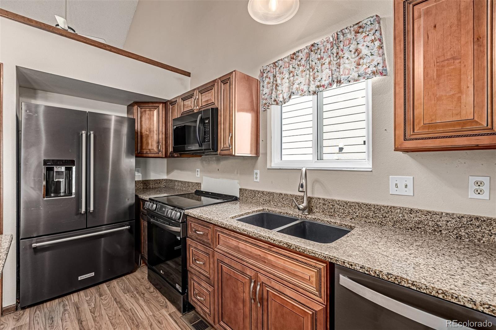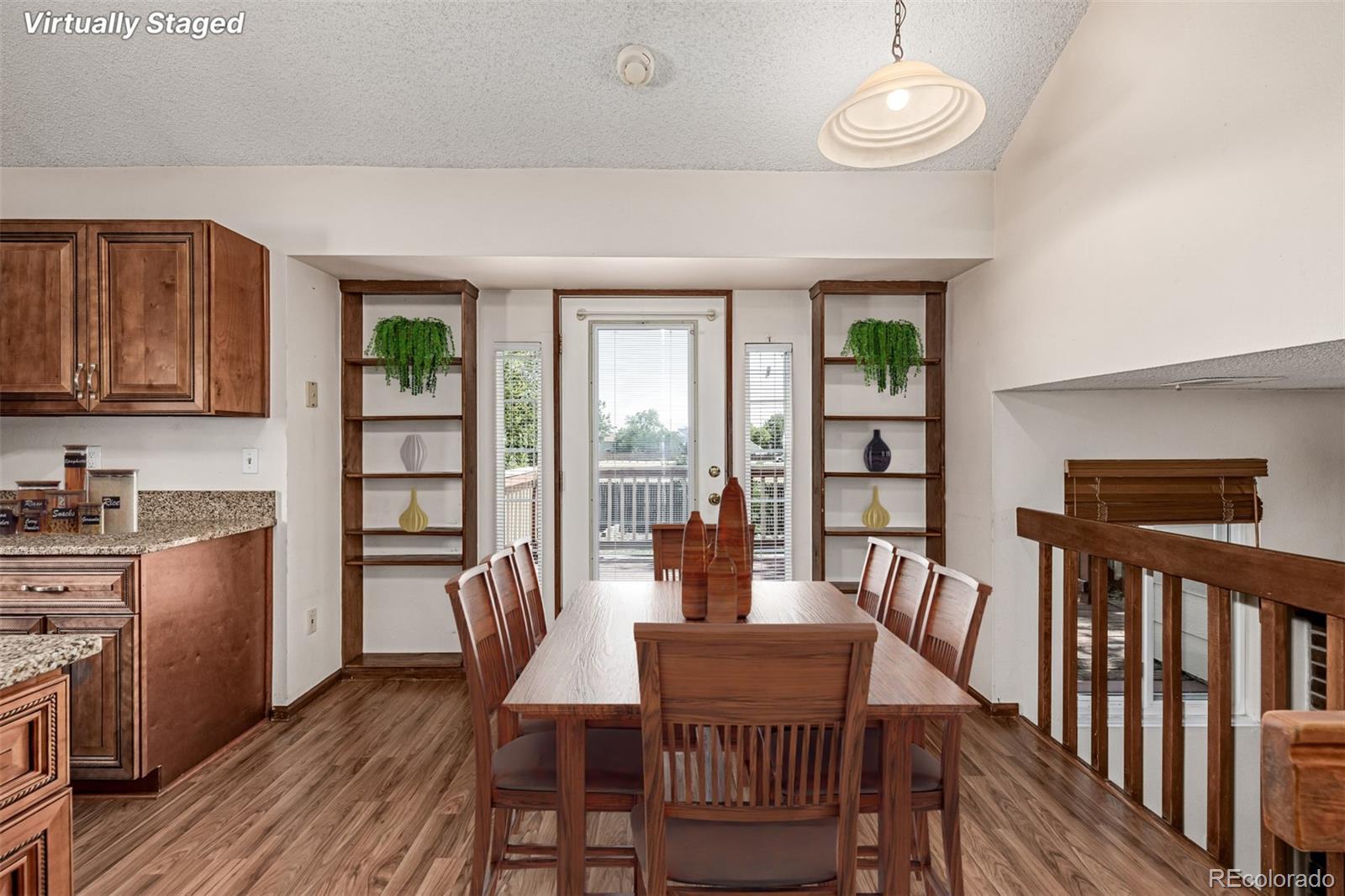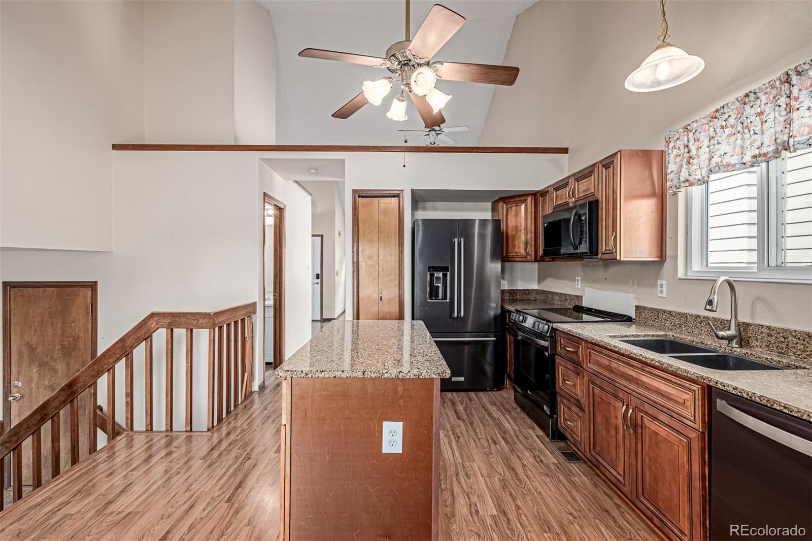 Welcome to 10752 Madison Street, a 4-bedroom, 4-bath home in one of Thornton’s most desirable neighborhoods. This inviting multi-level layout offers both charm and functionality, with plenty of space to spread out and make it your own. Inside, a bright living area with vaulted ceilings and large windows sets the tone, while the lower level features a cozy wood-burning brick fireplace. The kitchen is a true centerpiece with granite countertops, a spacious island, updated appliances, and generous cabinetry. Multiple living and dining areas flow seamlessly, creating the perfect setting for entertaining or everyday comfort. Upstairs, the private primary suite boasts vaulted ceilings, a bay window with seating, a walk-in closet, and an en suite bath. Additional bedrooms and bathrooms throughout the home offer flexibility for family, guests, or a home office. The finished basement adds even more space, complete with a laundry area, bedroom, bath, and room for hobbies or storage. Out back, the deck and mature trees provide a relaxing retreat, and the property backs directly to open space and a park—offering privacy and scenic views from your own yard. A two-car garage with built-in shelving adds extra convenience. The neighborhood is rich with amenities, including trails, sports courts, playgrounds, and nearby Carpenter Park with its lake, water play areas, skate park, and tennis courts. Shopping, dining, and the recreation center are just minutes away—and all with no HOA. With spacious interiors, a versatile floor plan, and direct access to parks and recreation, this home is a rare find in Thornton.
