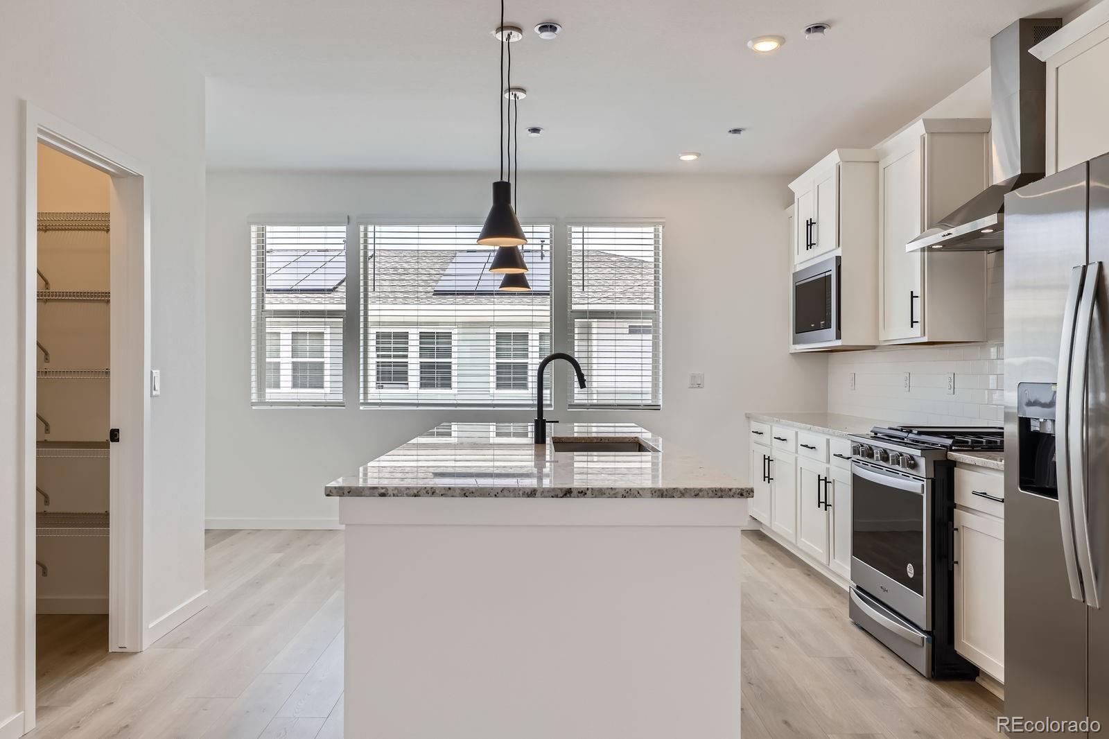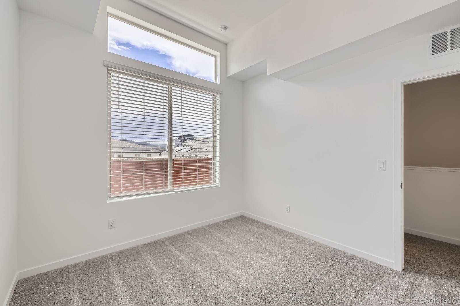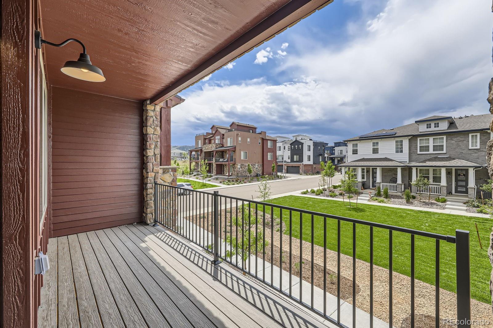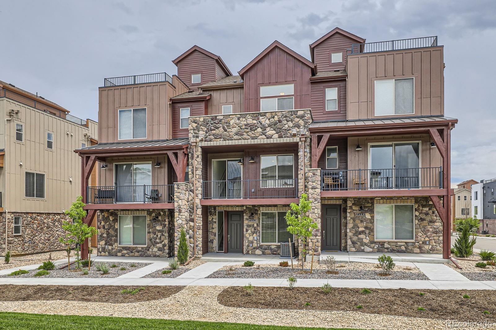 QUICK MOVE IN! STUNNING VIEWS WITH INCLUDED TV ALREADY MOUNTED ON YOUR OUTDOOR DECK! MAINTENANCE-FREE LIFESTYLE! Welcome to this gorgeous 3-bedroom, 1,908 sq ft townhome located in the heart of the highly desirable Sterling Ranch community! This modern and low-maintenance home combines thoughtful design with luxury finishes — all framed by unmatched mountain views. Step inside to an open-concept living space featuring a spacious kitchen with a large kitchen island, perfect for entertaining or casual meals. The kitchen features upgraded maple white cabinets with soft close drawers, and upgraded gas range with stainless hood, microwave, and dishwasher. Large windows flood the home with natural light and showcase the scenic surroundings. 2nd floor deck includes a mounted TV to watch your favorite movies outdoors! First level features a bedroom with full bathroom, perfect for a guest room or office. Upstairs, you’ll find another generously sized bedroom, and the primary suite offers a peaceful retreat with incredible views, large walk-in closet, and convenient entrance into the laundry room. Enjoy access to top-tier community amenities including a resort-style pool, pickleball courts, fitness center, multiple parks and trails, community events, food trucks, and quick access to the mountains and nearby reservoir for hiking, biking, and water recreation. Don’t miss your opportunity to live in one of the Front Range’s most vibrant and active communities!