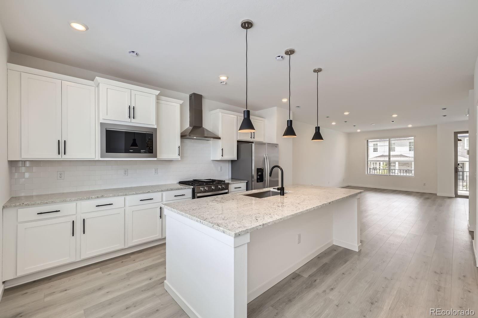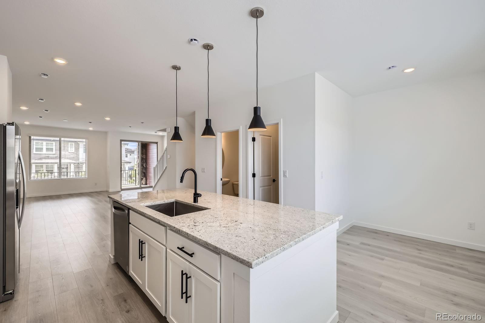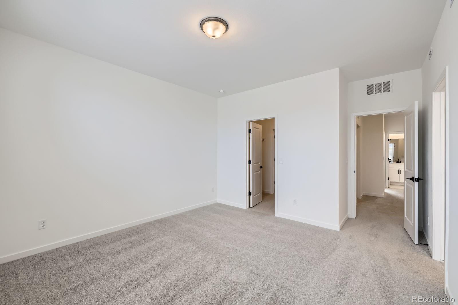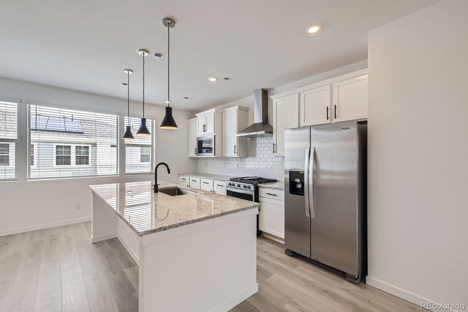 QUICK MOVE IN! STUNNING VIEWS WITH INCLUDED TV ALREADY MOUNTED ON YOUR OUTDOOR DECK! MAINTENANCE-FREE LIFESTYLE! Welcome to this gorgeous 3-bedroom, 1,908 sq ft townhome located in the heart of the highly desirable Sterling Ranch community! This modern and low-maintenance home combines thoughtful design with luxury finishes — all framed by unmatched mountain views. Step inside to an open-concept living space featuring a spacious kitchen with a large kitchen island, perfect for entertaining or casual meals. The kitchen features upgraded maple white cabinets with soft close drawers, and upgraded gas range with stainless hood, microwave, and dishwasher. Large windows flood the home with natural light and showcase the scenic surroundings. 2nd floor deck includes a mounted TV to watch your favorite movies outdoors! First level features a bedroom with full bathroom, perfect for a guest room or office. Upstairs, you’ll find another generously sized bedroom, and the primary suite offers a peaceful retreat with incredible views, large walk-in closet, and convenient entrance into the laundry room. Enjoy access to top-tier community amenities including a resort-style pool, pickleball courts, fitness center, multiple parks and trails, community events, food trucks, and quick access to the mountains and nearby reservoir for hiking, biking, and water recreation. Don’t miss your opportunity to live in one of the Front Range’s most vibrant and active communities!